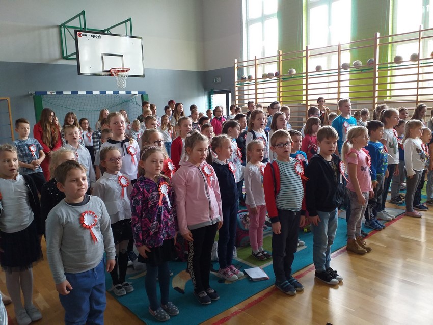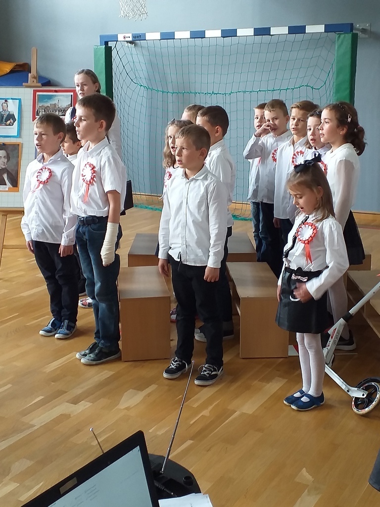 W związku z przystąpieniem szkoły do akcji "Szkoła do hymnu", w piątek o godzinie 11.11 został przerwany apel z okazji Święta Niepodległości i w postawie "na baczność", w obecności Pocztu Sztandarowego uroczyście odśpiewaliśmy cztery zwrotki hymnu państwowego.