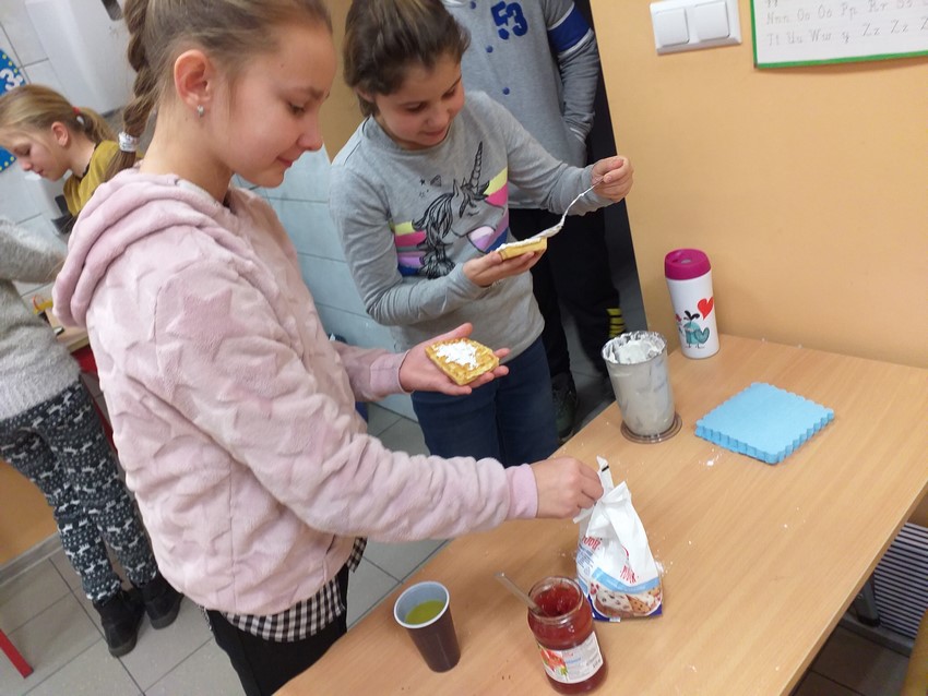 Tegoroczne Mikolajki, uczniowie klas IV, V i VI spędzali razem. Najpierw oglądali film i częstowali sie goframi z dużą ilością dżemu, nutelli i bitej śmietany, potem pojechali na lodowisko do Pszowa. NIektórzy, weteramni jazdy na łyżwach, radzili sobie wyśmienicie. Byli też tacy, którzy łyżwy załozyli na nogi po raz pierwszy i zaliczyli mnóstwo upadków, ale wesołe miny zdradzały, że wszyscy się dobrze bawią.