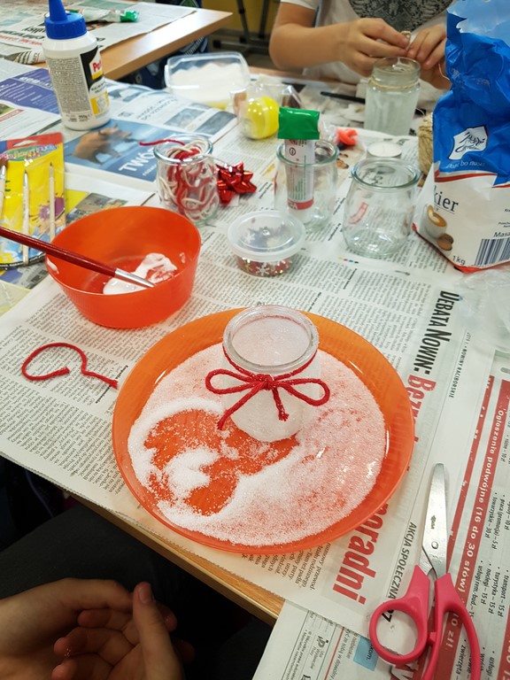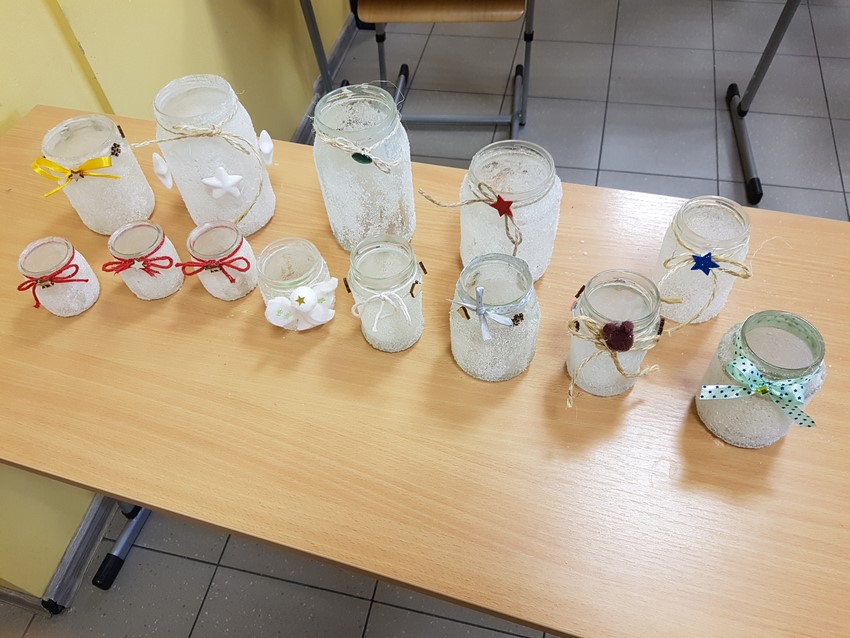 Lekcja plastyki w klasie IV zamieniła się w bożonarodzeniowe warsztaty plastyczne, podczas których uczniowie przygotowali nietuzinkowe świeczniki z cukru. Było słodko, świątecznie i wesoło! Efekty można zobaczyć na poniższych zdjęciach.