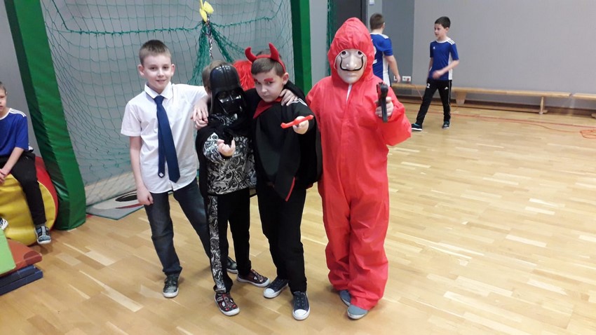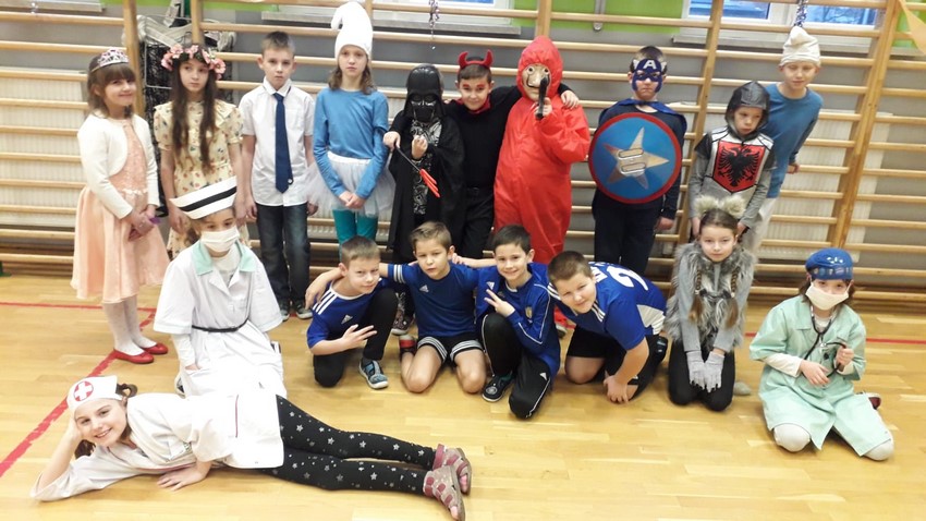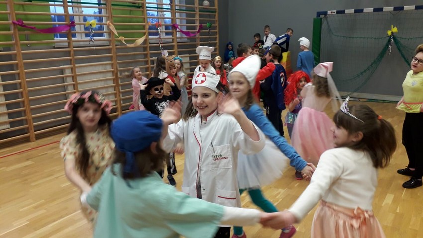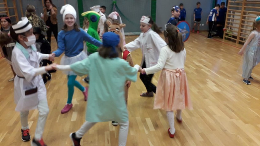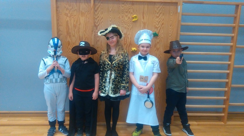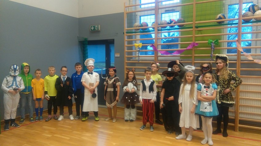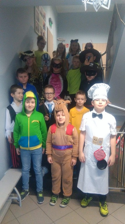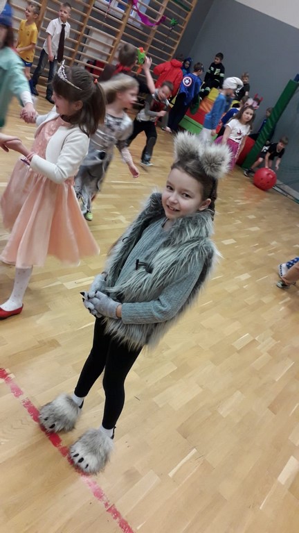W piątek- 7 lutego, z samego rana, do naszej szkoły zawitało wiele przeróżnych postaci. Nie zabrakło księżniczek, sławnych piłkarzy, niezwyciężonych bohaterów filmowych, diabełków, ale i stróżów prawa, pracowników służby zdrowia, sympatycznych zwierzątek i przybyszów z obcych planet. Uczniowie z klasy I, II i III oraz ich rodzice wykazali się niezwykłą kreatywnością. Przy rytmach skocznej muzyki odbyły się zabawy w pociąg i kółeczka oraz wiele innych wesołych pląsów. Zabawa dostarczyła dzieciom wielu przeżyć i miłych wrażeń.