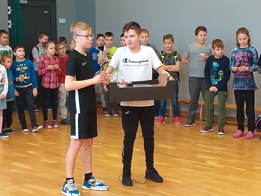 Z okazji Dnia Kobiet, chłopcy z Samorządu Uczniowskiego przygotowali dla pań i dziewczynek z naszej szkoły słodkie upominki. Na apelu, chłopcy złożyli wszystkim kobietom, tym małym i tym dużym serdeczne życzenia. Dodatkowo, została zorganizowana loteryjka fantowa, w której rozlosowano wśród dziewczynek kolorowe notesy, bidony i szkicowniki.