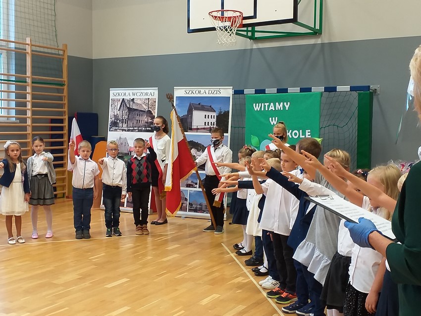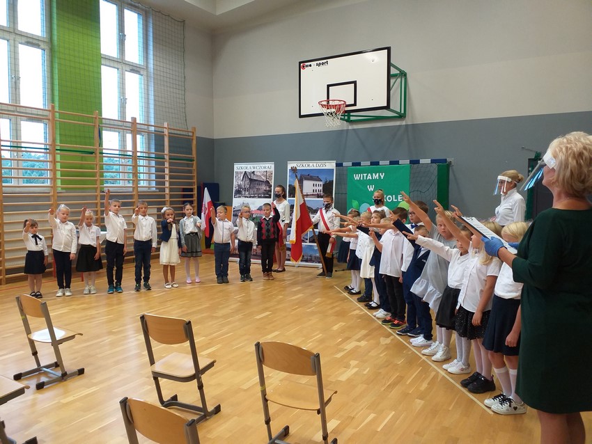 1 września rozpoczęliśmy kolejny rok szkolny. Przyjęliśmy do grona 22 uczniów klasy I, którzy w tym dniu, w obecności pani dyrektor, wychowawcy oraz rodziców złożyli uroczyste ślubowanie.