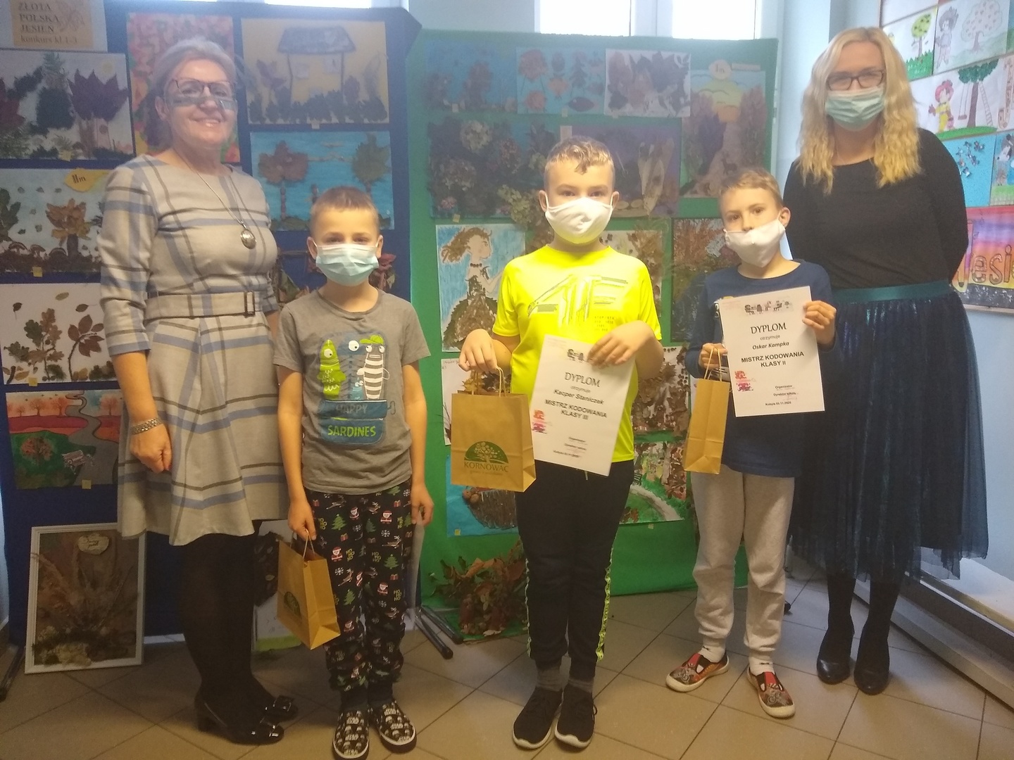 W październiku obchodziliśmy święto kodowania powszechnie nazywane Tygodniem Kodowania. Akcja rozgrywa się zawsze na polu międzynarodowym i polega na podejmowaniu przez szkoły, stowarzyszenia czy inne instytucje różnych działań związanych z kodowaniem i programowaniem. W naszej szkole wybieraliśmy Mistrzów Kodowania poszczególnych klas. Klasy 1 i 2 kodowały na kartkach tworząc zakodowane obrazki lub odgadując ukryte hasła. Klasy 3 i 4 tworzyły własne projekty w aplikacji Scratch Junior, natomiast klasy 5 i 6 tworzyły własne projekty w aplikacji Scratch oraz programowały roboty mBlock w ramach programu #SuperKoderów. Zwycięzcy klas 1-3 otrzymali pamiątkowe dyplomy i symboliczne nagrody, uczniowie klas 4-6 otrzymają nagrody, gdy powrócą do szkoły. Serdecznie im gratulujemy.
