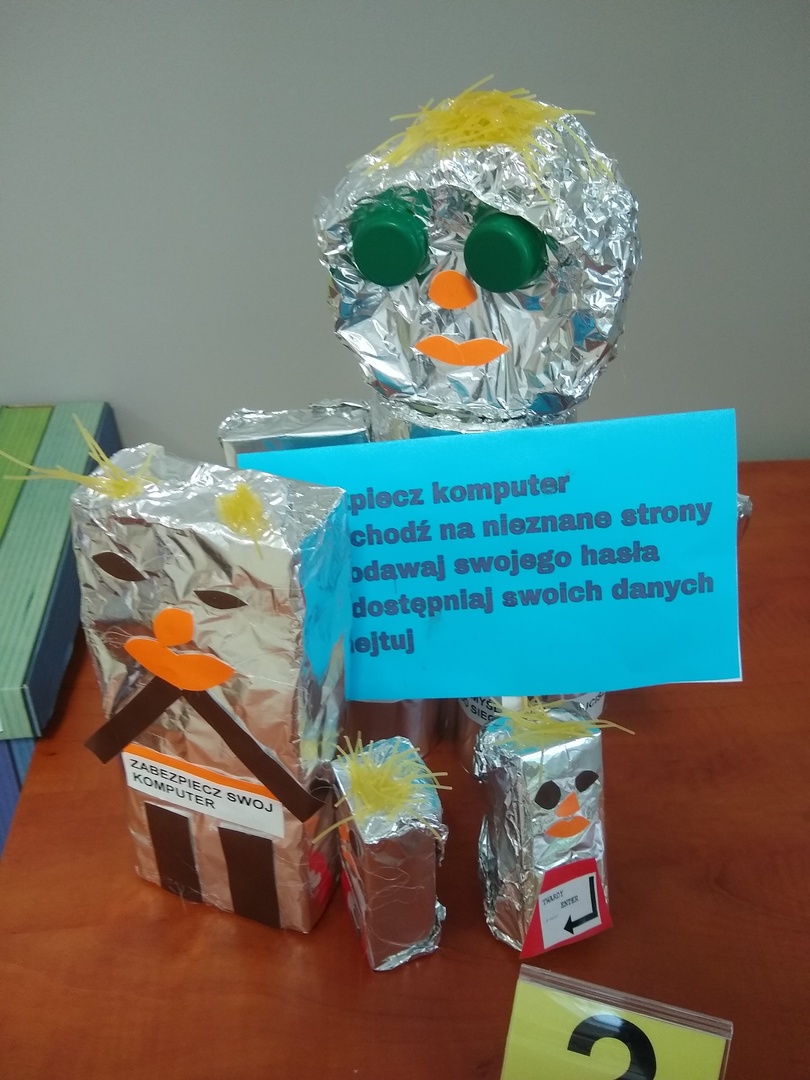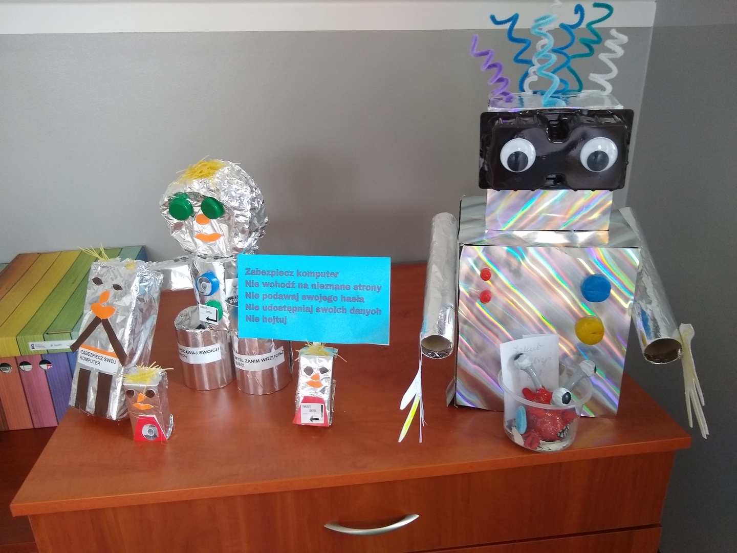Chętne osoby z klas I - III mogły również wziąć udział w konkursie plastycznym tworząc "Strażnika Internetu". Oto zwycięzcy: