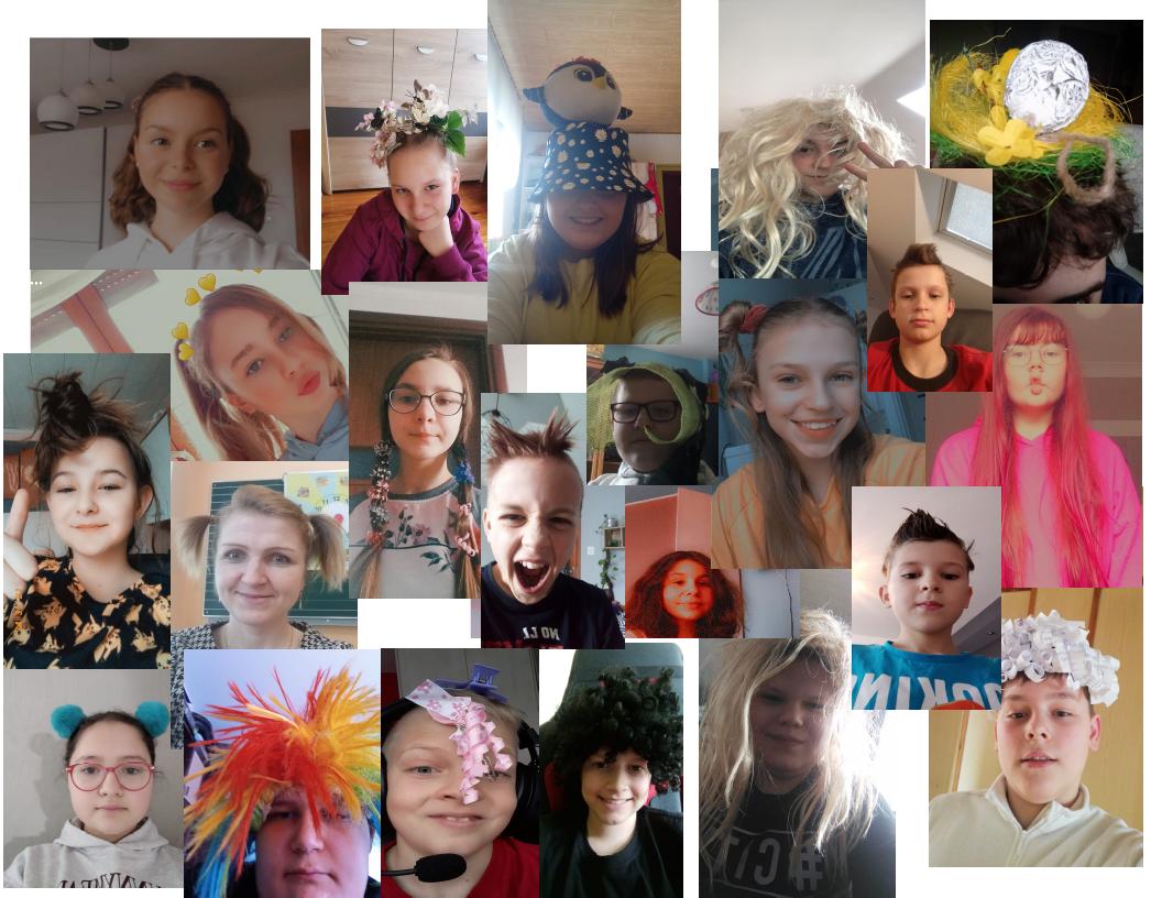 21 marca, w pierwszy dzień wiosny, klasy IV, V i VI postanowiły spedzić na wesoło. Z tej okazji na lekcjach wychowawczych online zorganizowali Dzień Szalonego Fryzjera. Były też quizy i zagadki o wiośnie oraz wiele uśmiechu i zabawy.