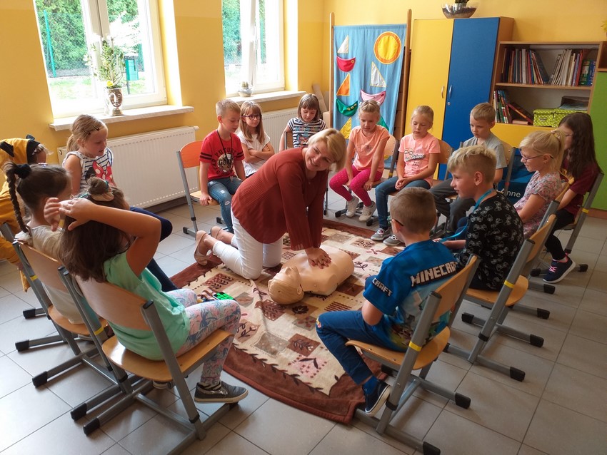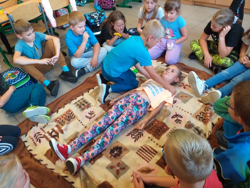 11 września obchodziliśmy Światowy Dzień Pierwszej Pomocy, ustanowiony przez Międzynarodowy Ruch Czerwonego Krzyża i Czerwonego Półksiężyca w 2000 r. Celem tego święta jest promowanie znaczenia pierwszej pomocy w ratowaniu zdrowia i życia. W tym roku uczniowie klas I-III uczyli się wzywac pogotowie oraz udzielać pierwszej pomocy swoim kolegom i koleżankom. dodatkowo przygotowali prace zachęcające do udzielania pierwszej pomocy, które ozdobiły korytarze naszej szkoły.