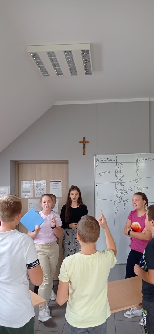 W czwartek świętowaliśmy w klasie 6 Dzień Chłopca. Choć chłopaków mamy mało bo aż 5 dziewczyny stanęły na wysokości zadania i przygotowały się wspaniale. Rywalizacja i dobra zabawa były podczas "Familiady", gdzie pytania były ciekawe, a odpowiedzi zaskakujące. Chłopcy próbowali również swojej zręczności w zabawie z kubkami i piłeczką ping-pongową. Następnie wspólnie zawiedliśmy do stołu by zjeść przygotowane przez dziewczyny ciasta i gofry.