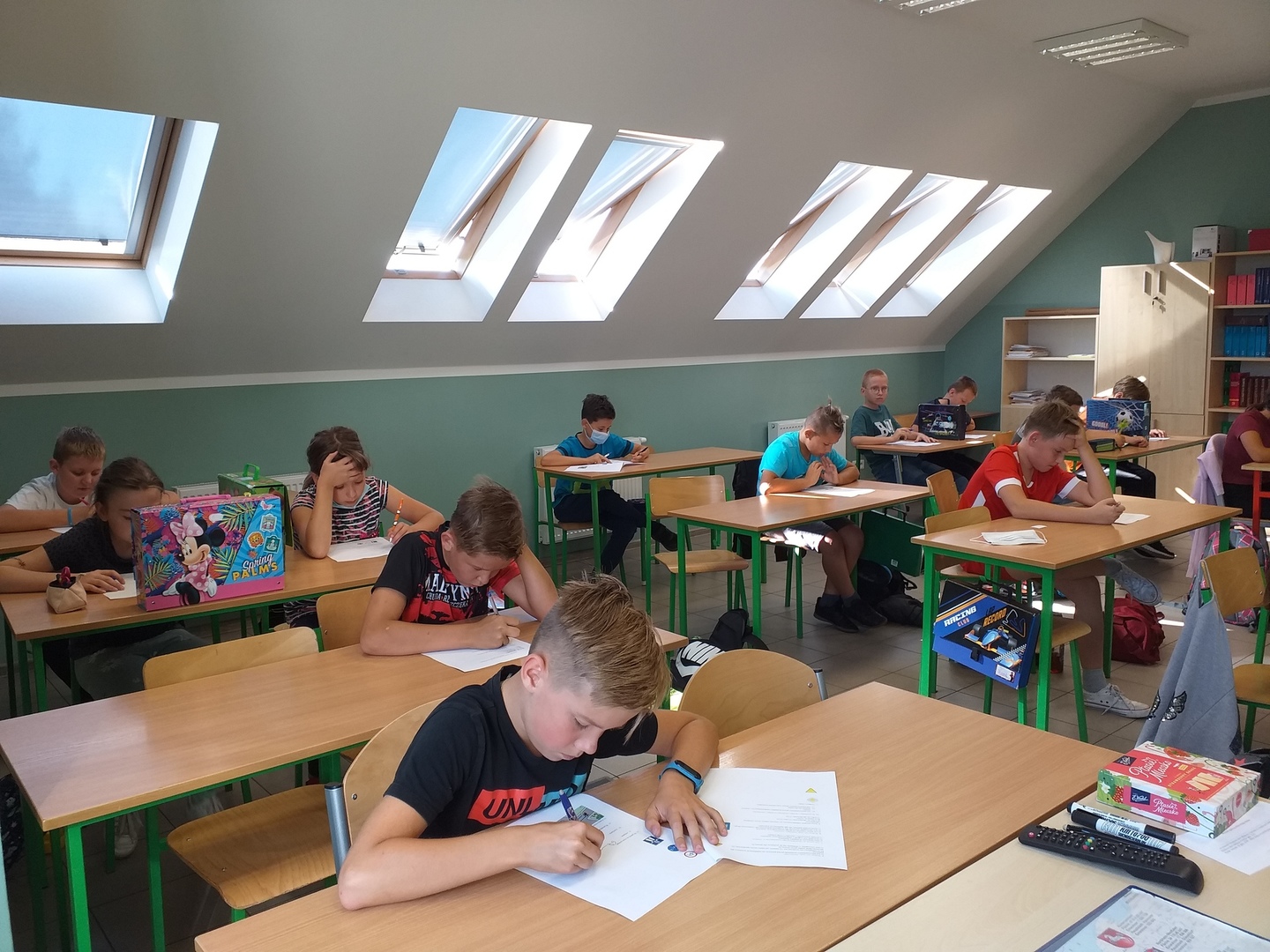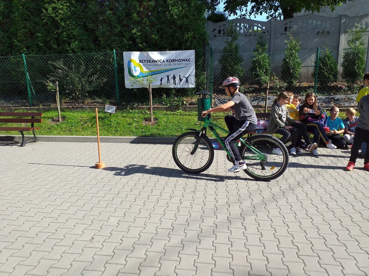 Nasi uczniowie systematycznie utrwalali sobie przepisy ruchu drogowego. Zwieńczeniem tych lekcji był egzamin na kartę rowerową. Do egzaminu przystąpili uczniowie klasy 5, którzy z powodu czasowego ograniczenia funkcjonowania szkół, nie mogli tego zrobić na zakończenie klasy 4. Uczniowie uzyskali pozytywny wynik egzaminu teoretycznego, a następnie przystąpili do sprawdzianu praktycznego – rowerowego toru przeszkód.