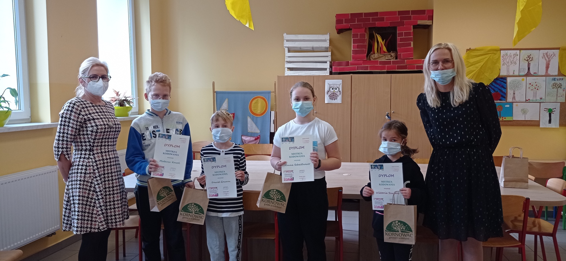 Uczniowie całej szkoły wzięli udział w konkursie na Mistrza Kodowania każdej z klas. Uczniowie klas 1-3 mierzyli się z kodowankami na papierze, zaś uczniowie starsi klas 4-6 rywalizowali podczas rozwiązywania zadań na platformie