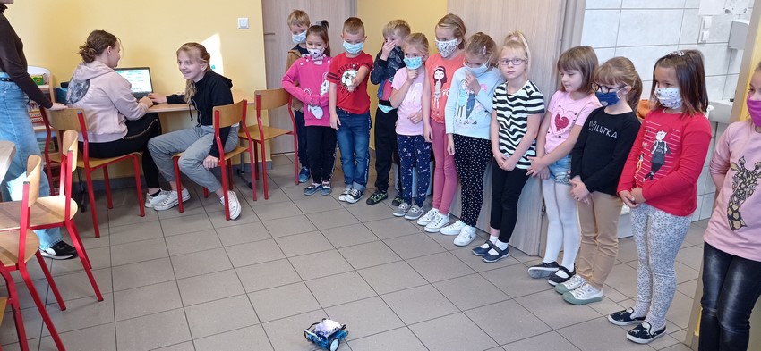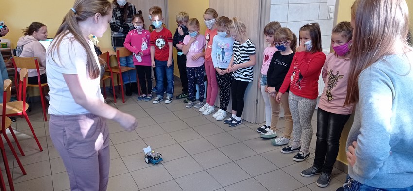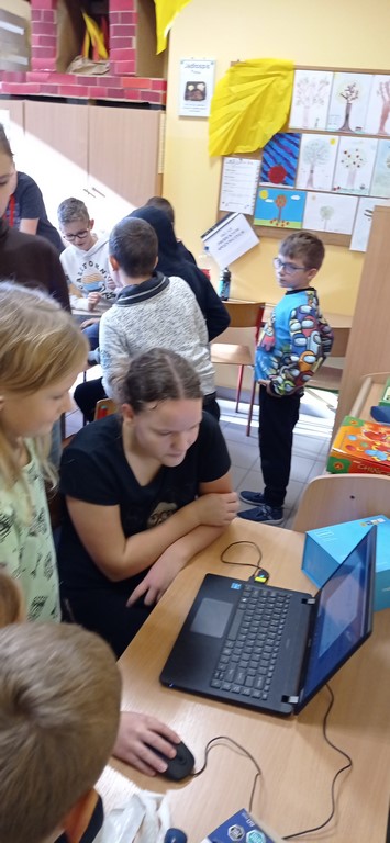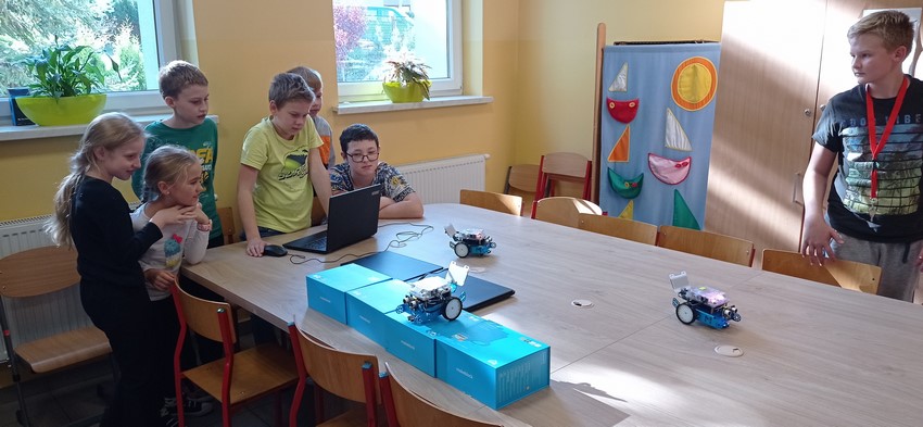 Trwa kontynuacja programu #SuperKoderów fundacji Orange "Poszukiwacze skarbów". Biorą w nim udział uczniowie klasy 6 realizując powyższy program kodują w Scratchu i tworzą historyczną grę edukacyjną. Ważną częścią pracy #SuperKoderów jest nauka programowania robotów mBot, które otrzymaliśmy w ramach realizowanego programu. Podczas trwającego w październiku Code Week'u #SuperKoderzy pochwalili się swoimi umiejętnościami programowania robotów przed uczniami klas młodszych. Odbyła się także część warsztatowa, podczas której młodsi uczniowie mogli sami spróbować zaprogramować robota pod okiem starszych kolegów i koleżanek. #SuperKoderzy chętnie dzielili się swoją wiedzą czym na pewno wzbudzili ciekawość i chęć programowania wśród uczniów klas 1-5.