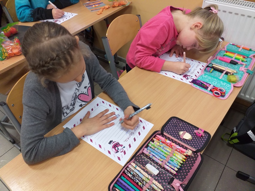 Do świąt jeszcze daleko, a uczniowi klas II i III już pisali listy do św. Mikołaja. Nic dziwnego, listy muszą dotrzeć na czas do Laponii, tak by Mikołaj zdążył je odczytać przed Bożym Narodzeniem. Warto dodać, że uczniowie pisali listy w języku angielskim no i liczą na szybką odpowiedź :)