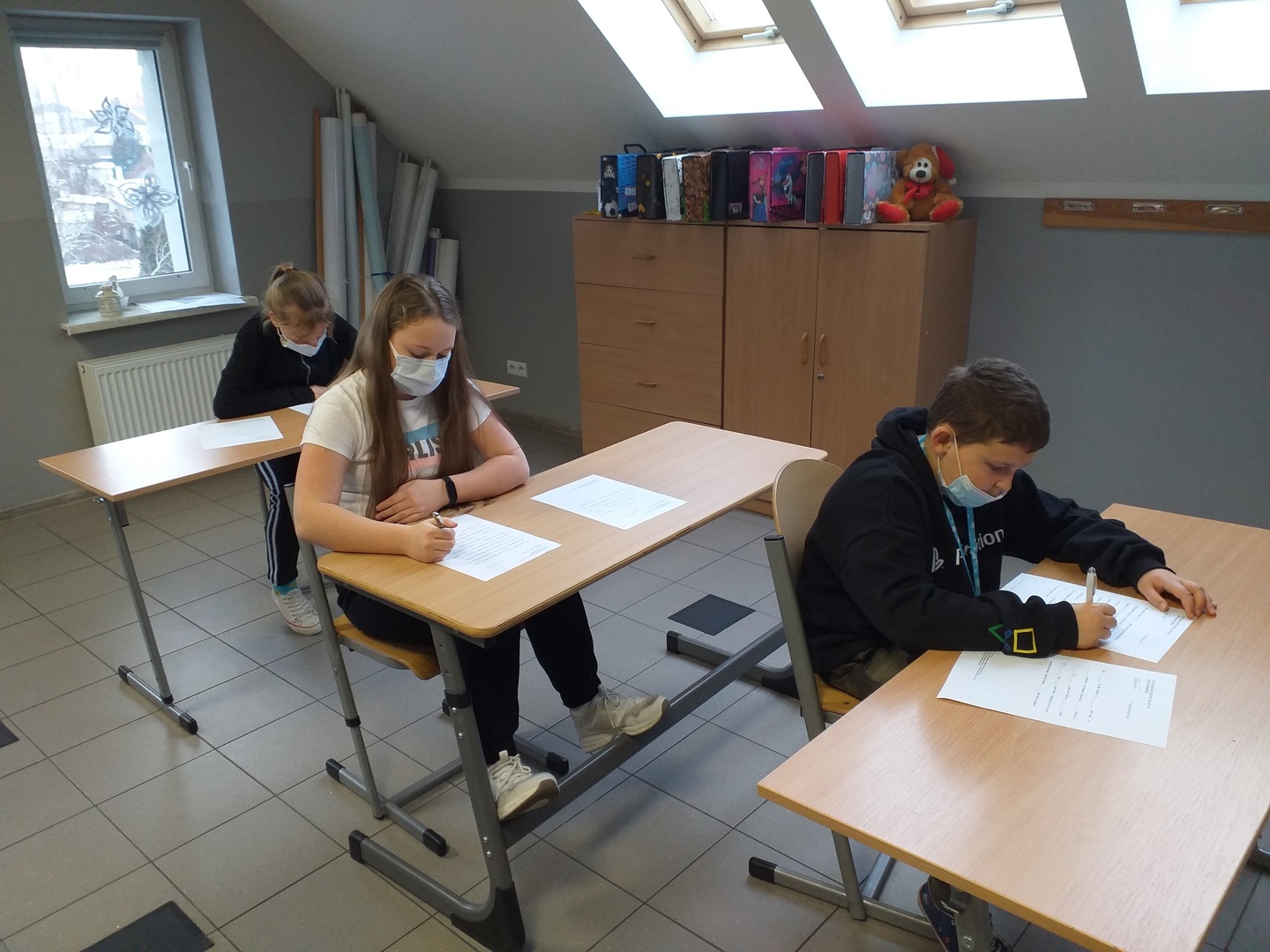 9 grudnia uczniowie naszej szkoły: Emilia Cieślik, Hanna Scheithauer i Szymon Szwan wzięli udział w szkolnych eliminacjach Międzyszkolnego Konkursu "Dyktando językowe" organizowanego przez Zespół Szkół Prywatnych w Katowicach. Uczniowie mieli za zadanie wysłuchać nagrań z języka angielskiego i niemieckiego, a następnie uzupełnić luki w tekstach usłyszanymi w nagraniach słowami. Uczniowie bardzo dobrze sobie poradzili. Wyniki zostały przesłane do organizatora. Teraz pozostaje nam tylko czekać na informację, jak nasi uczniowie poradzili sobie w ogólnym zestawieniu. Zdobywcy najlepszych wyników zostaną zaproszeni do udziału w finale konkursu, który odbędzie się w Katowicach.