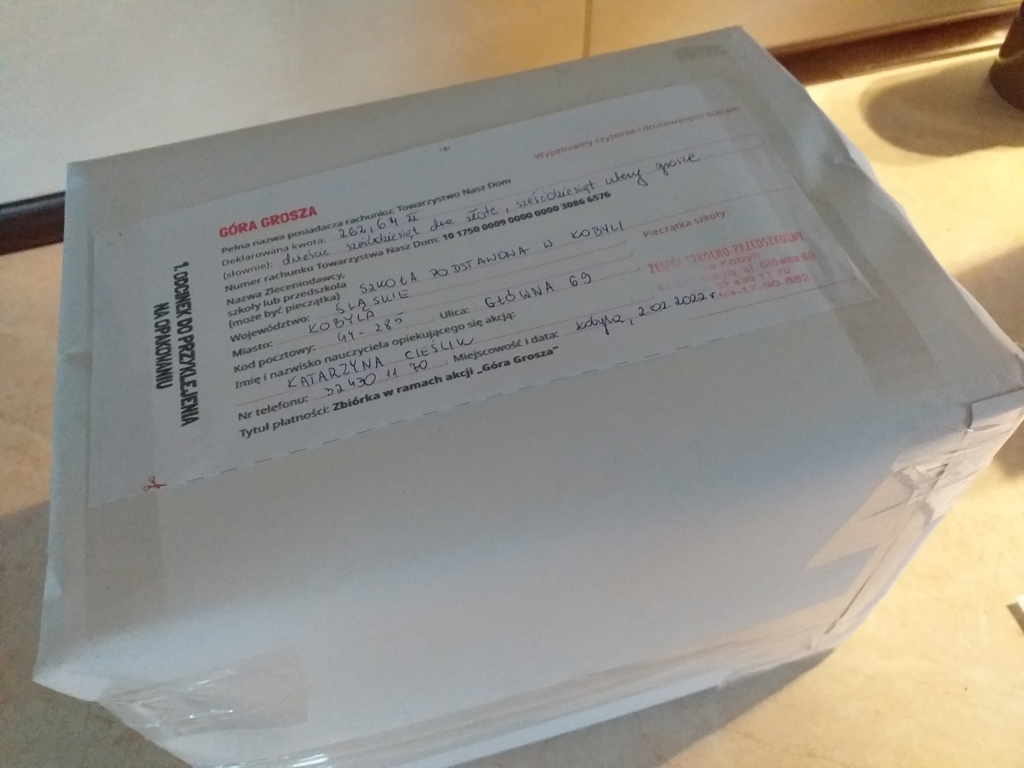 Na przełomie grudnia i stycznia uczestniczyliśmy w akcji Góra Grosza. Akcja jest organizowana przez Towarzystwo Nasz Dom i ma za zadanie wsparcie rodzinnych domów dziecka. W tym roku zebraliśmy i przekazaliśmy potrzebującym za pośrednictwem poczty 264 zł.