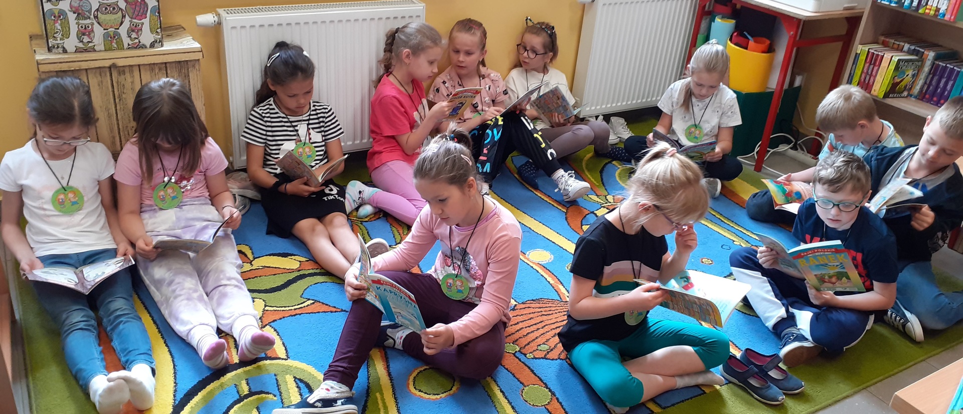 Czy warto czytać książki? Uczniowie klasy I uczestniczyli w piątek w zajęciach, na których zostali oficjalnie pasowani na czytelników biblioteki szkolnej. Wszyscy zgodnie przyznali, że potrafią już czytać, dlatego otrzymali medale pasowania na czytelnika, ale również przypieczętowali swoim opuszkiem przyrzeczenie, że będą codziennie czytać chociaż jedną stronę i szanować książki. Oczywiście wszyscy uczniowie już od początku roku szkolnego korzystają ze zbiorów biblioteki szkolnej. Zawsze może poczytać książkę mama, tata, czy starsze rodzeństwo. Każde dziecko dodatkowo otrzymało książeczkę, pracę do wykonania na konkurs oraz coś słodkiego. Nie obyło się oczywiście bez podziękowania za naukę czytania pani wychowawczyni. Życzymy naszym pierwszakom, aby każdy dzień sięgali po książkę, by stawać się co dzień lepszym, wrażliwym na drugiego człowieka i mądrzejszym.