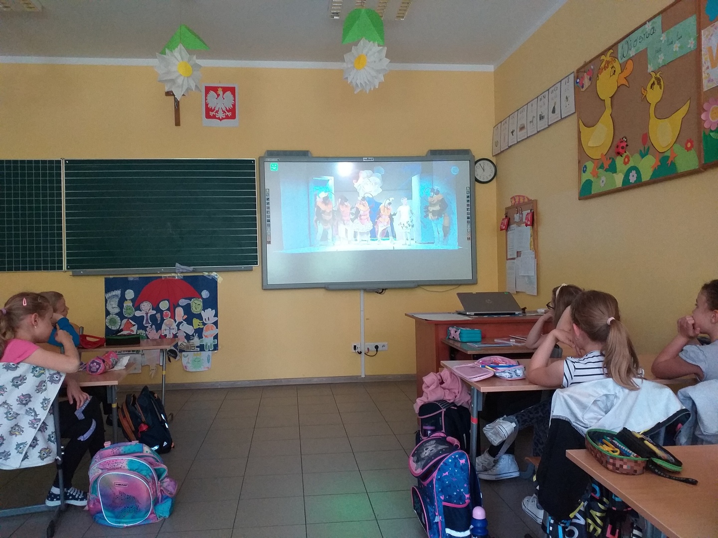 31 maja uczniowie klasy I wirtualnie uczestniczyli w spektaklu pt. "Calineczka", przygotowanym przez aktorów Teatru Lalki i Aktora Anteum w Katowicach. Spektakl był przygotowany z okazji Dnia Dziecka i trafił do młodej publiczności. Dzieciakom podobały się stroje, ciekawa scenografia i piosenki. Po raz pierwszy też uczestniczyli w spektaklu online.