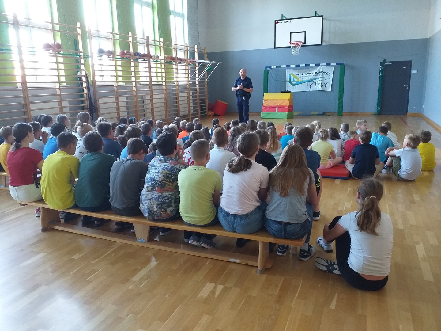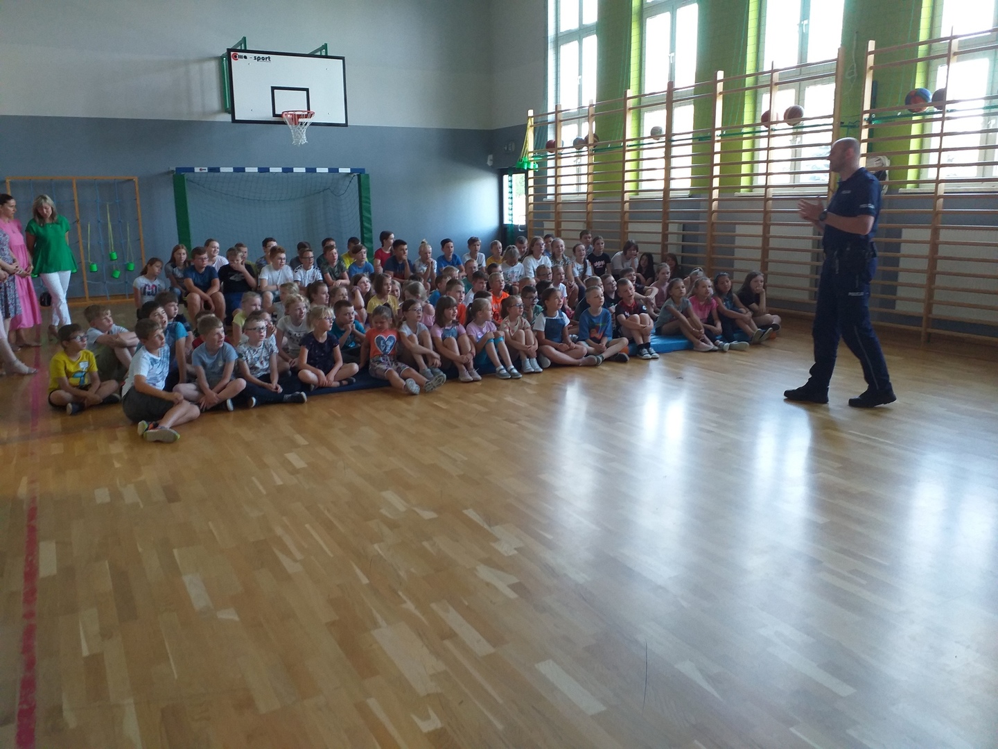 Co roku, przed końcem roku szkolengo uczniowie naszej szkoły uczestniczą w Ogólnopolskiej Akcji Bezpieczne Wakacje. Uczniowie klas młodszych biorą udział w prelekcjach dotyczących bezpiecznego zachowania podczas letniego wypoczynku, uczniowie klas starszych przygotowują plakaty reklamujące bezpieczne zachowania w górach, nad wodą, w mieście i na wsi. Podsumowaniem akcji była wizyta dzielnicowego naszej gminy, który omówił przepisy ruchu drogowego dotyczące pieszych, rowerzystów, zwrócił szczególną uwagę na bezpieczne zachowanie podczas wakacji i przestrzegł przed kontaktami z nieznajomymi.