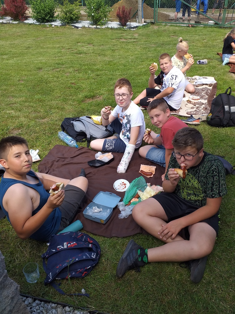 Ostatni dzień przed wakacjami, uczniowie klas IV-VI poszli na wycieczkę do Arboretum Bramy Morawskiej. Tam mieli okazję zmierzyc się z wyzwaniami z dziedziny przyrody, zobaczyć żabki z Zabim Stawie, zwiedzić mini zoo i pobawić się w labiryncie. Na koniec, dla zregenerowania sił , częstowali się kiełbaskami z grilla.