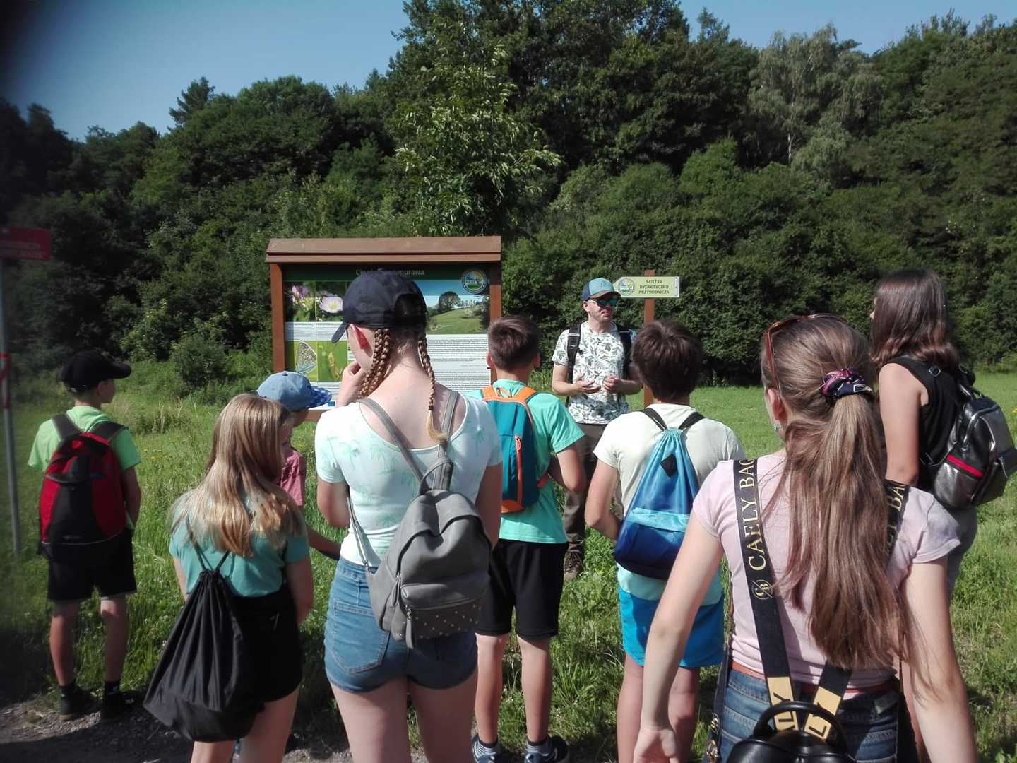 Uczestnicy rajdu przeszli ścieżką dydaktyczno - ekologiczną , o której bardzo interesująco i w przystępny sposób opowiedział Pan prelegent Tomasz Szczansny.
