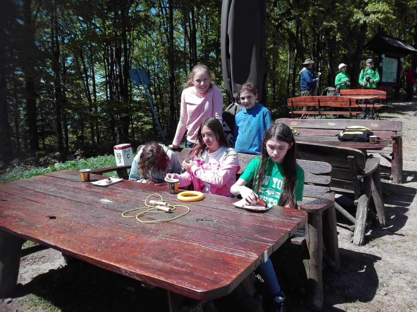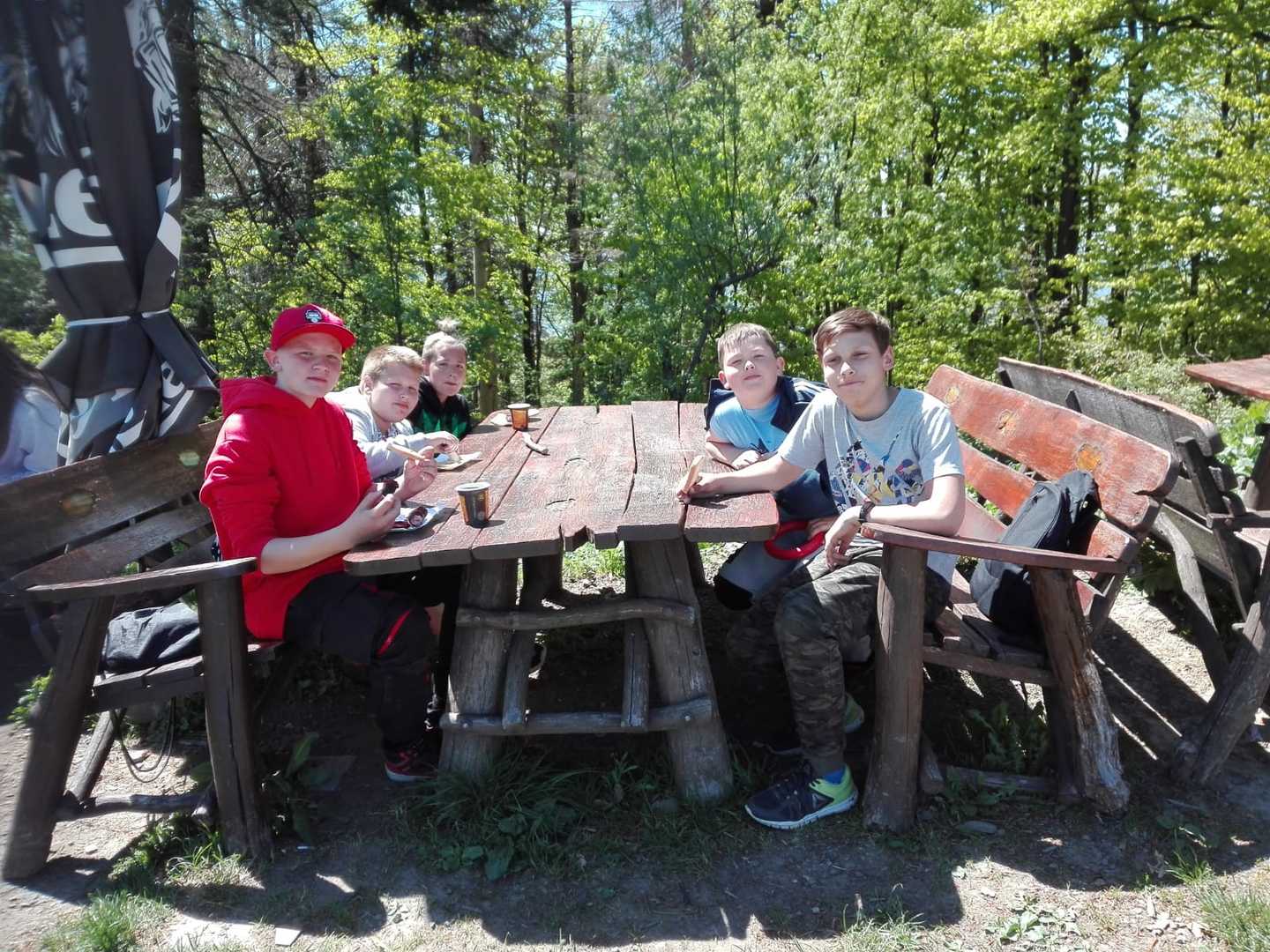 Mogli też sprawdzić swoją kondycję fizyczną wchodząc na górę Stożek ( 957 m n.p.m.) Trasę tę pokonali z łatwością. Na szczycie odpoczęli i posilili się