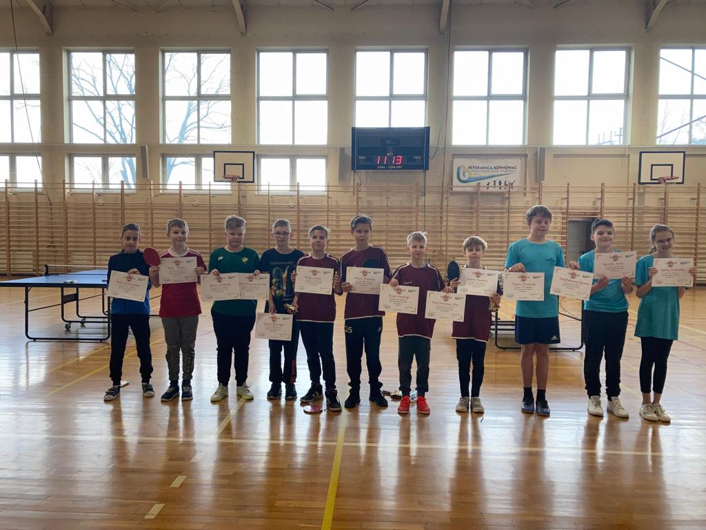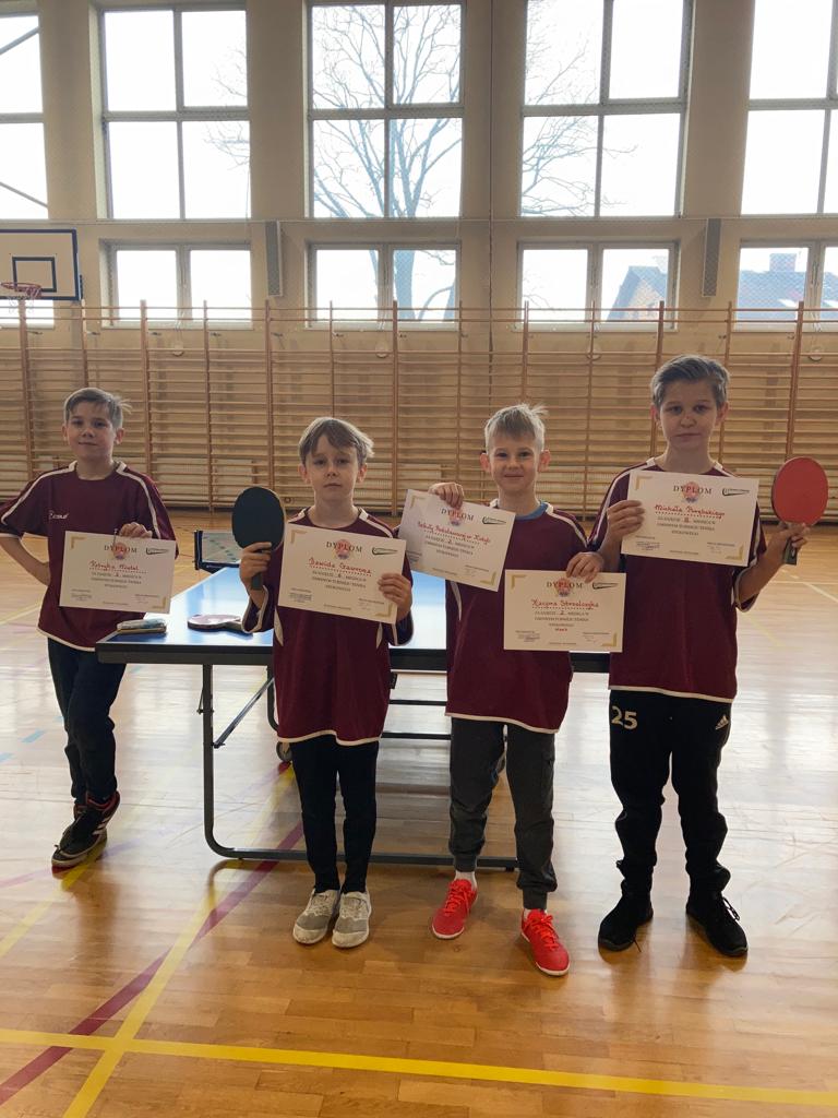 W Gminnym Turniej Tenisa Stołowego naszą szkołę reprezentowało 4 chłopców .