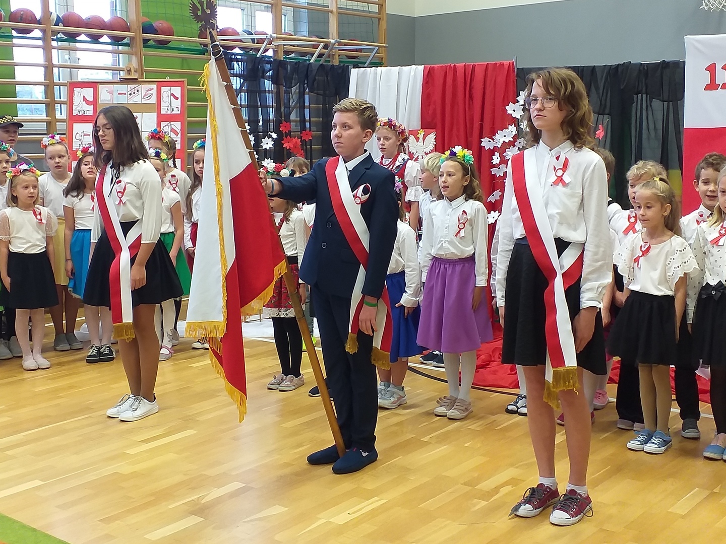 W nastrój upamiętniający dawne, trudne czasy walki o niepodległość Polski wprowadzili uczniowie klasy I-VI