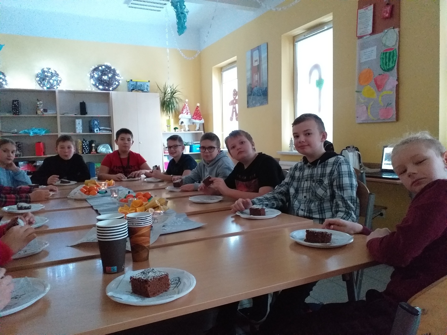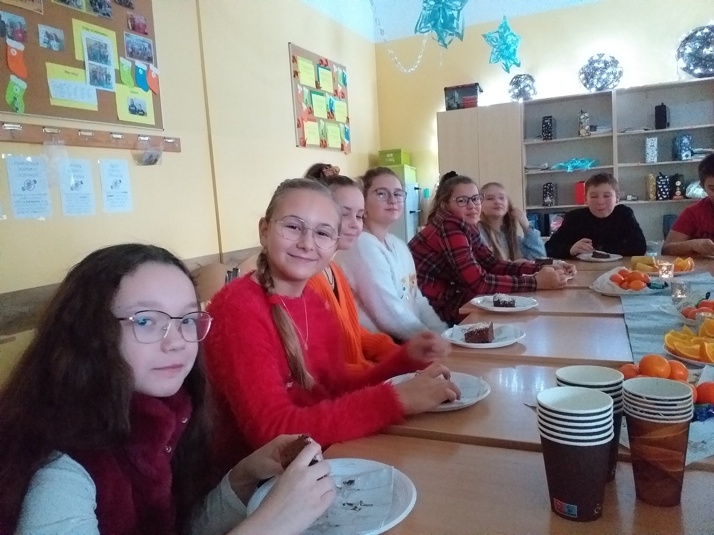 22 grudnia, w ostatni dzien nauki przed świętami odbywały się w klasach spotkania wigilijne. Uczniowie wraz z wychowawcami składali sobie życzenia, częstowali świątecznymi łakociami i rozmawiali o tradycjach bożonarodzeniowych. Podsumowaniem było współne kolędowanie na sali gimnastycznej, podczas którego pani dyrektor złożyła wszystkim uczniom oraz ich rodzinom świąteczne życzenia.