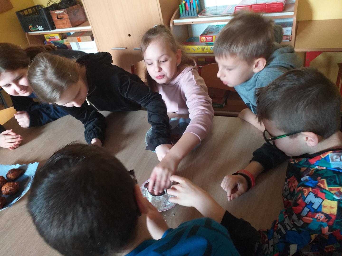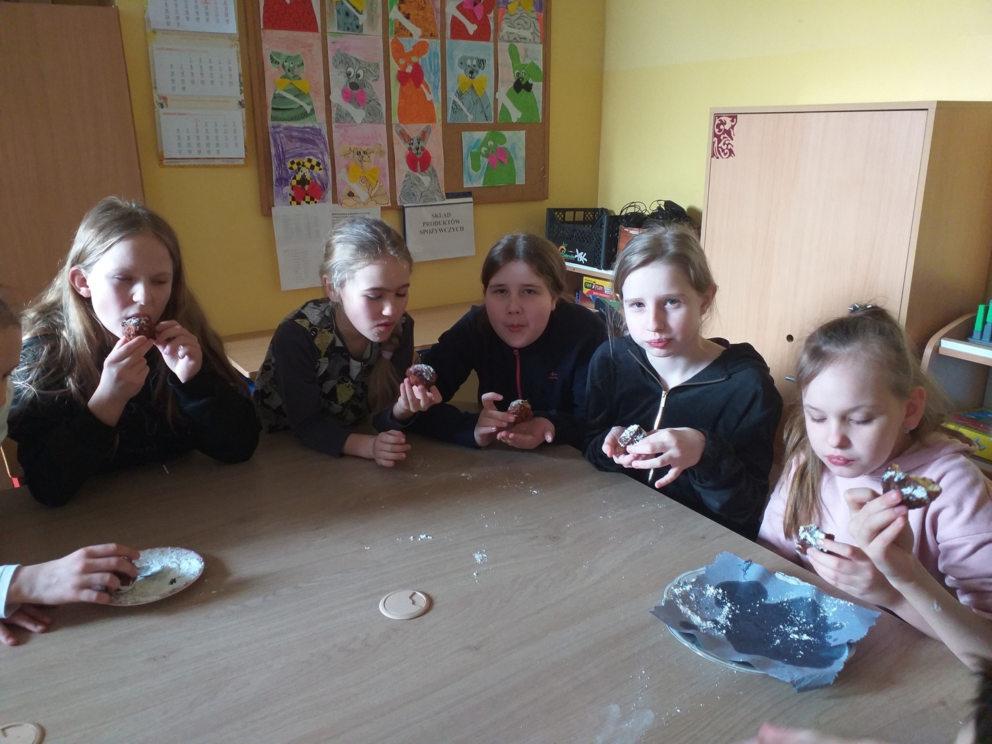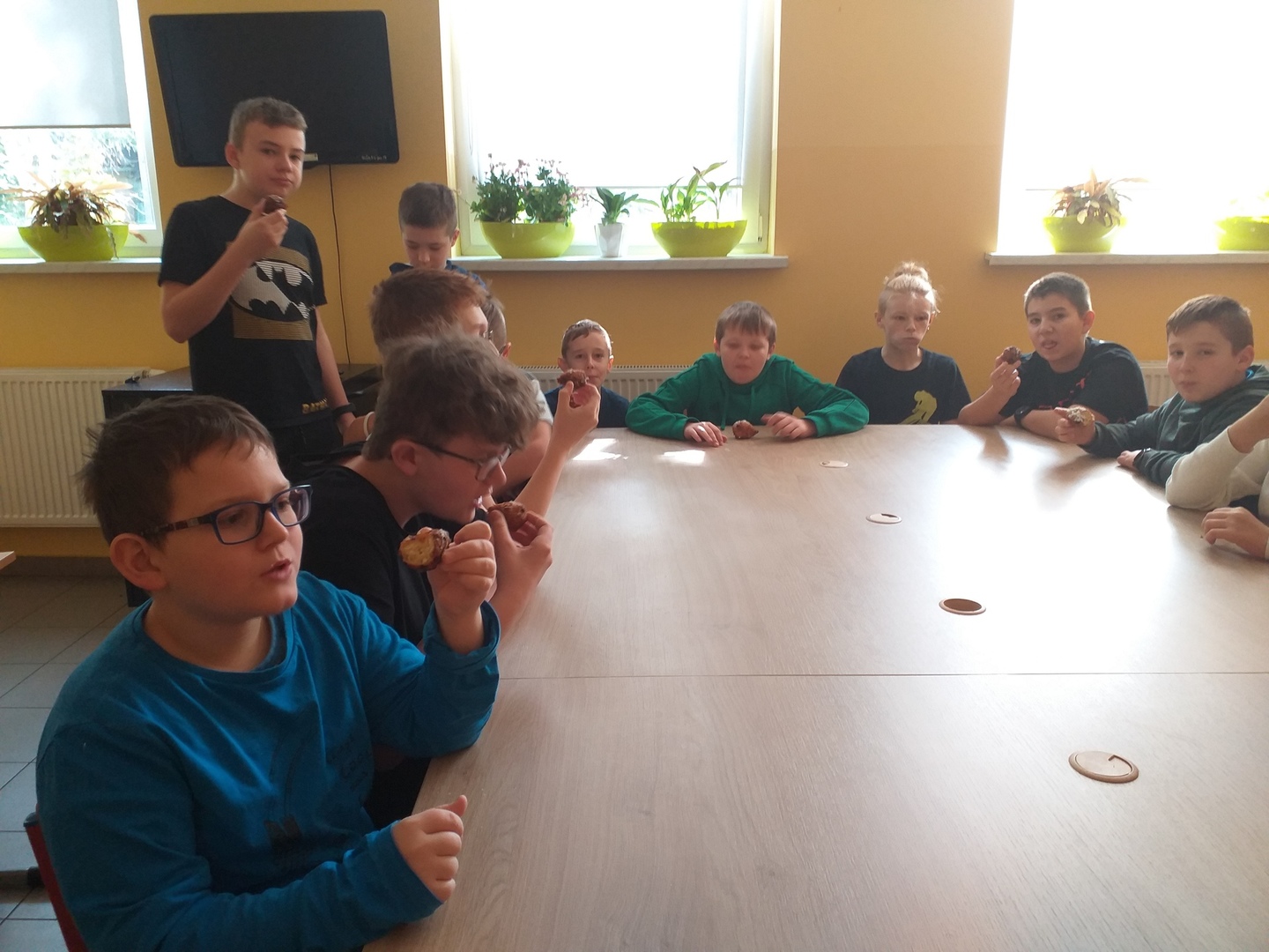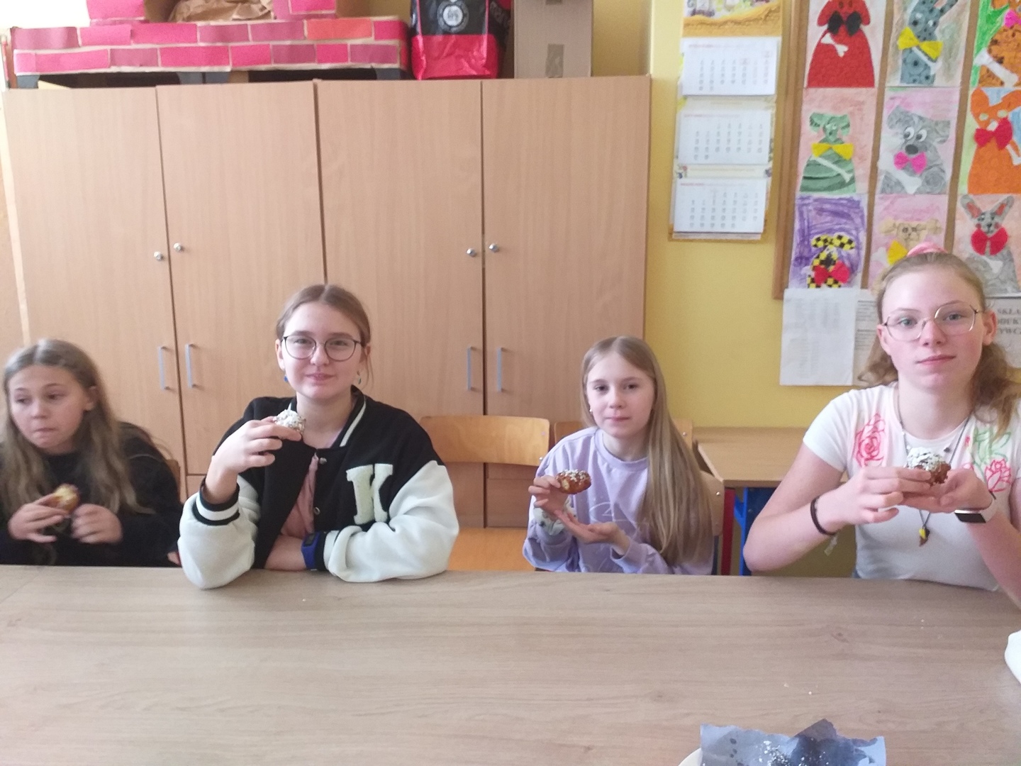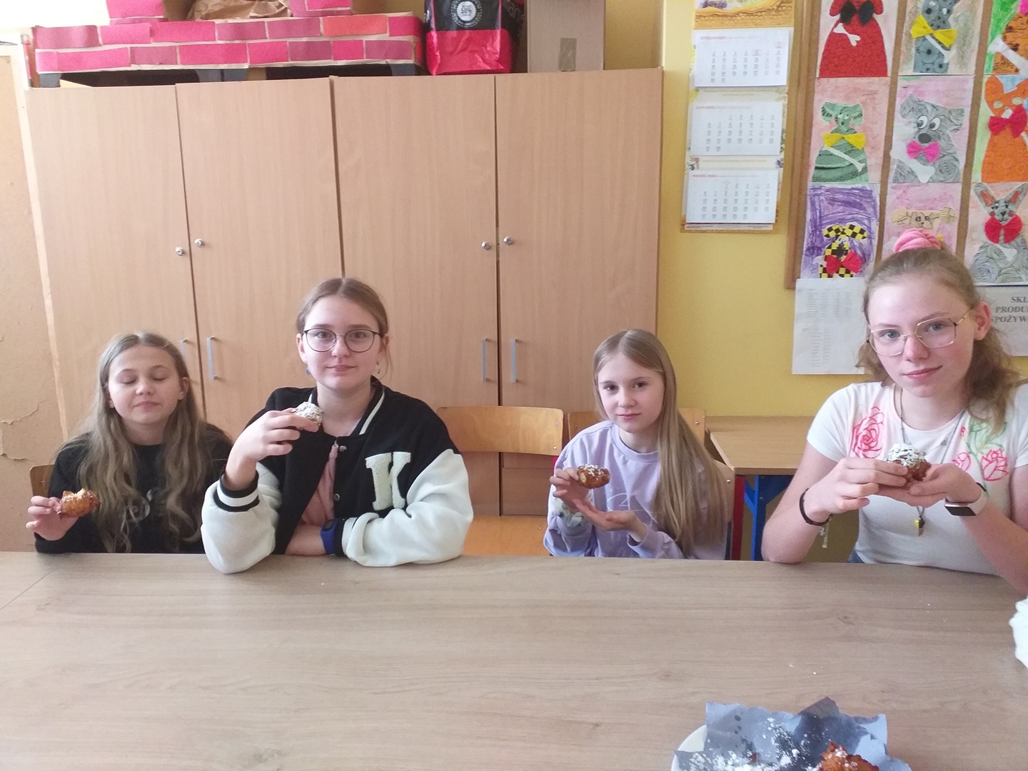 W naszej szkole jak zwykle tłusty czwartek minął na słodko z lukrowanymi pączkami z konfiturą ufundowanymi przez Radę Rodziców. Dodatkowo uczniowie klas IV, V i VI, na zajęciach technicznych przygotowali pyszne pączki z sera, które również spałaszowali ze smakiem.