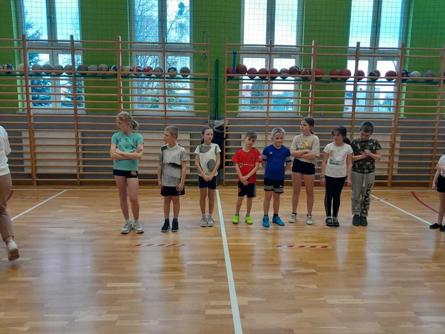 W ramach działań Uczniowskiego Klubu Sportowego 24 wybranych losowo uczniów klas I - III wzięło udział w Szkolnym turnieju Gier i Zabaw .