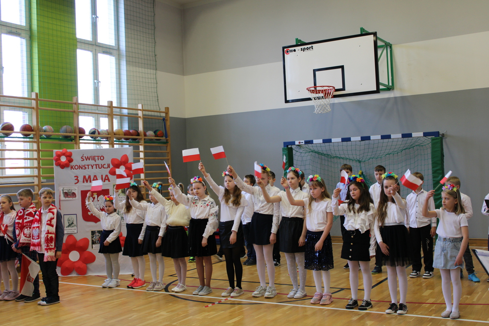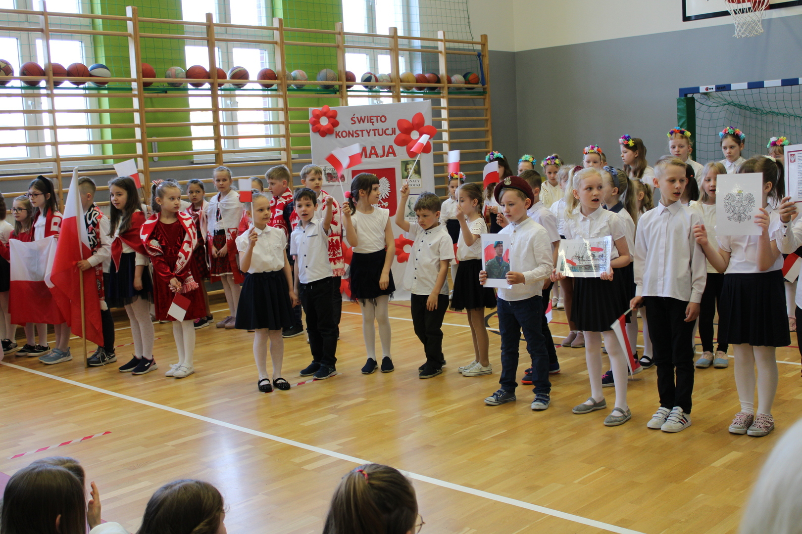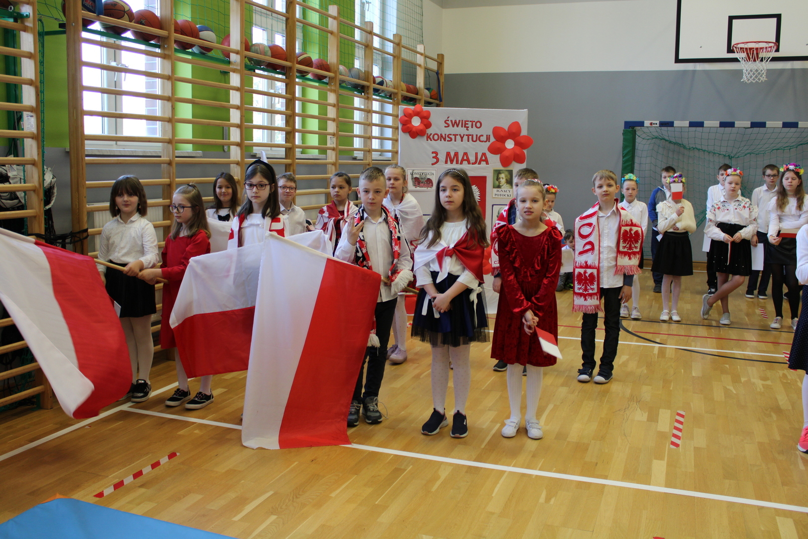 Dnia 28 maja w naszej szkole odbył się uroczysty Poranek z okazji Rocznicy Konstytucji 3 Maja. Konstytucja Rzeczpospolitej 3 Maja w 1791r była pierwszym dokumentem prawnym w Europie,a drugim na świecie, zawierającym wszystkie prawa i obowiązki obywateli. Dlatego też uczniowie klas I-III przygotowali program artystyczny upamiętniający ten dzień: