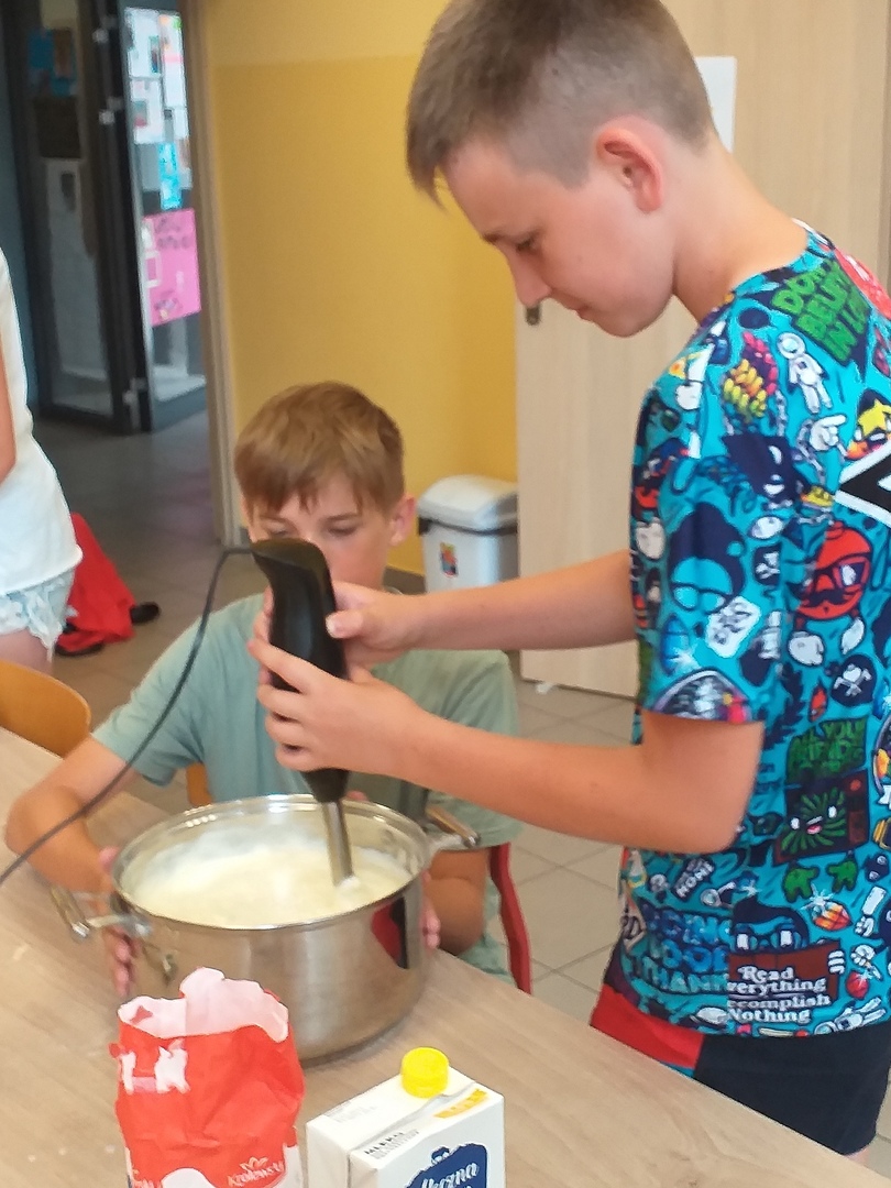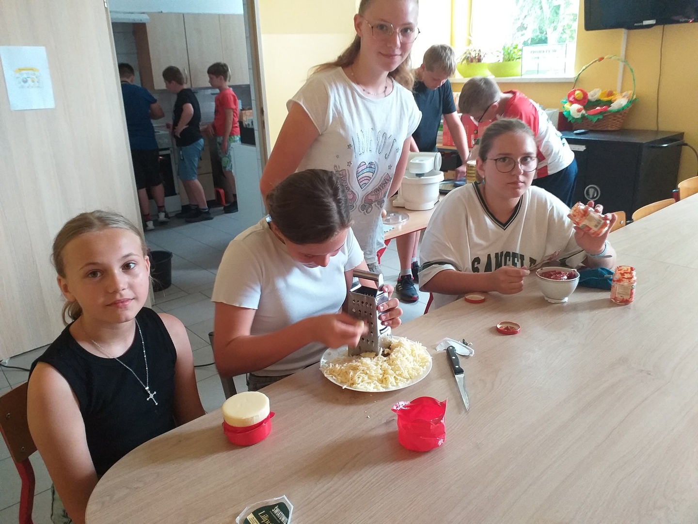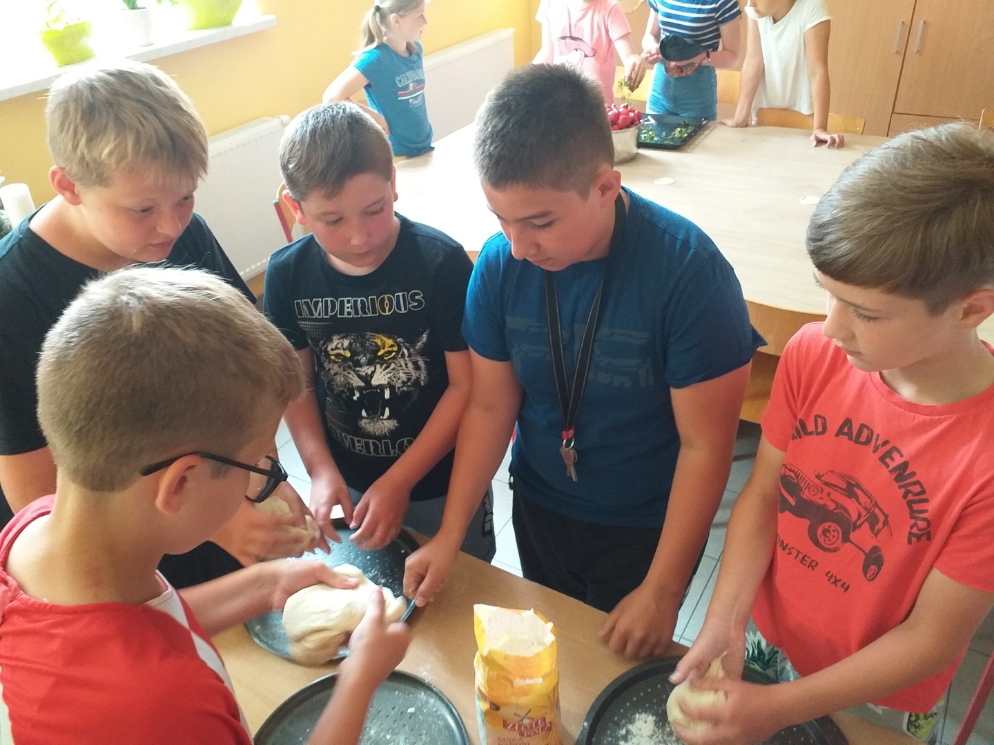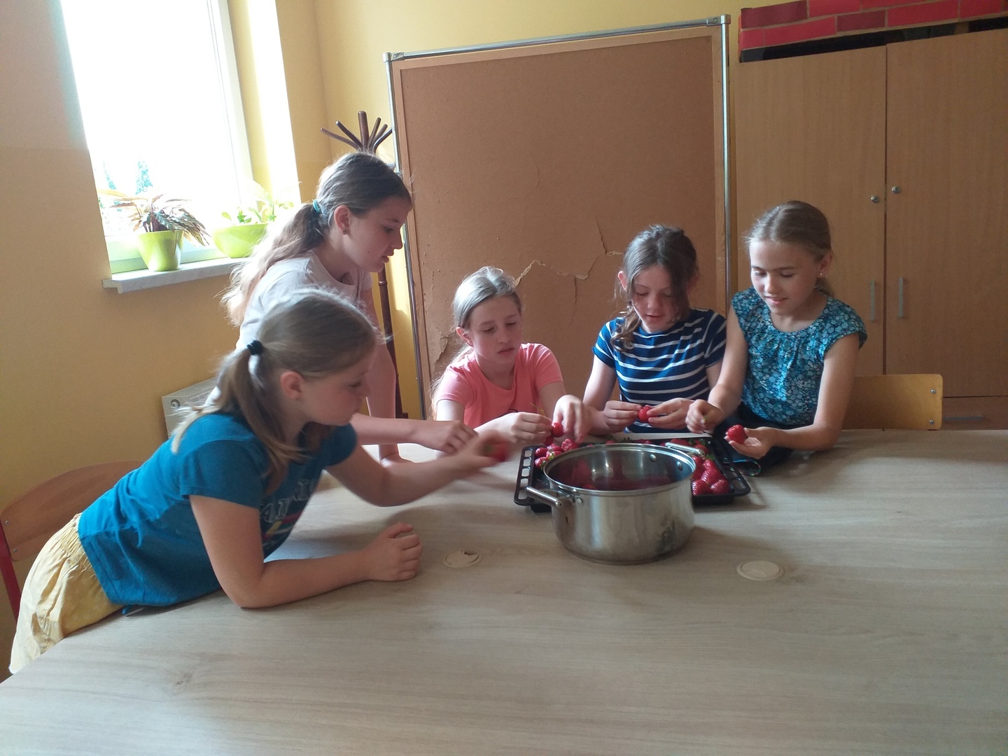 Dobrze wiemy jak ważne w życiu są umiejętności radzenia sobie w różnych sytuacjach. Dzisiaj uczniowie zmierzyli się z gotowaniem, a to za sprawą zajęć pt. "Kuchcikowo", które zorganizowaliśmy w świetlicy szkolnej.Klasa IV przygotowała koktajl truskawkowy, klasa V pizzę, a klasa VI gofry z dżemem. Szkoła wypełniła się wspaniałymi zapachami Dzieci samodzielnie odmierzały składniki , mieszły i piekły a potem częstowały kolegów i koleżanki. Wszyscy stwierdzili jednogłośnie, że samodzielnie przygotowane potrawy smakują o wiele lepiej.