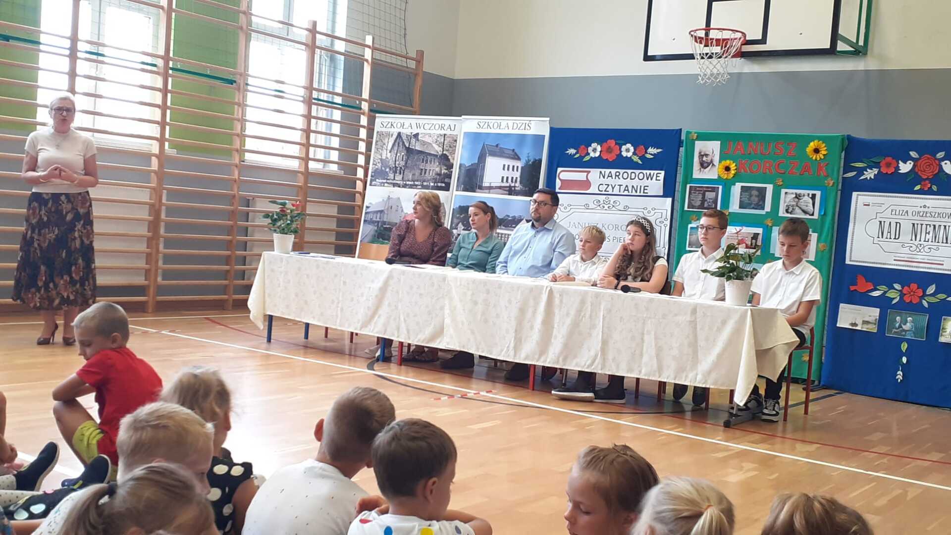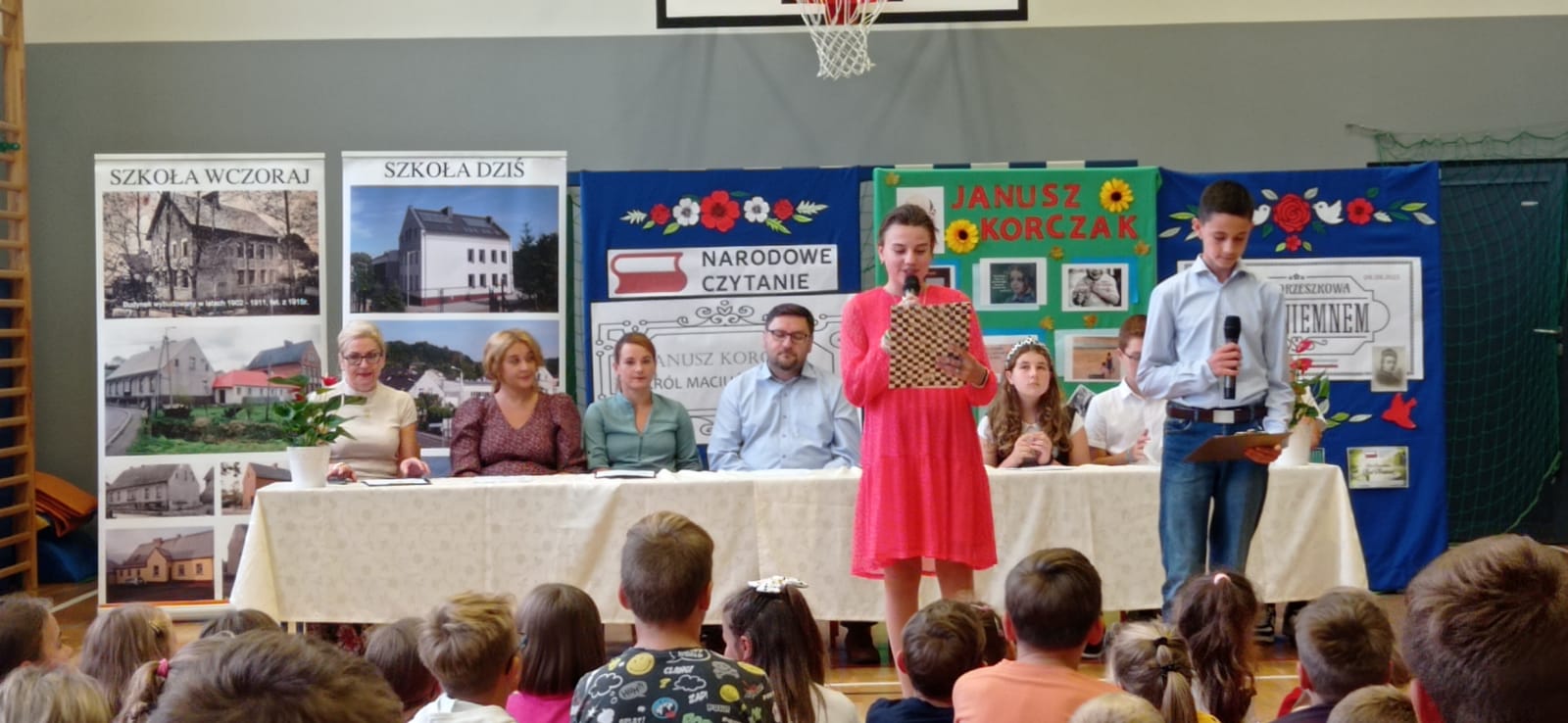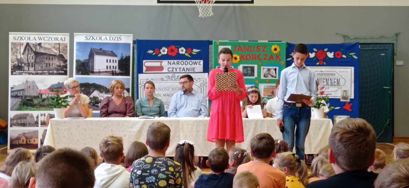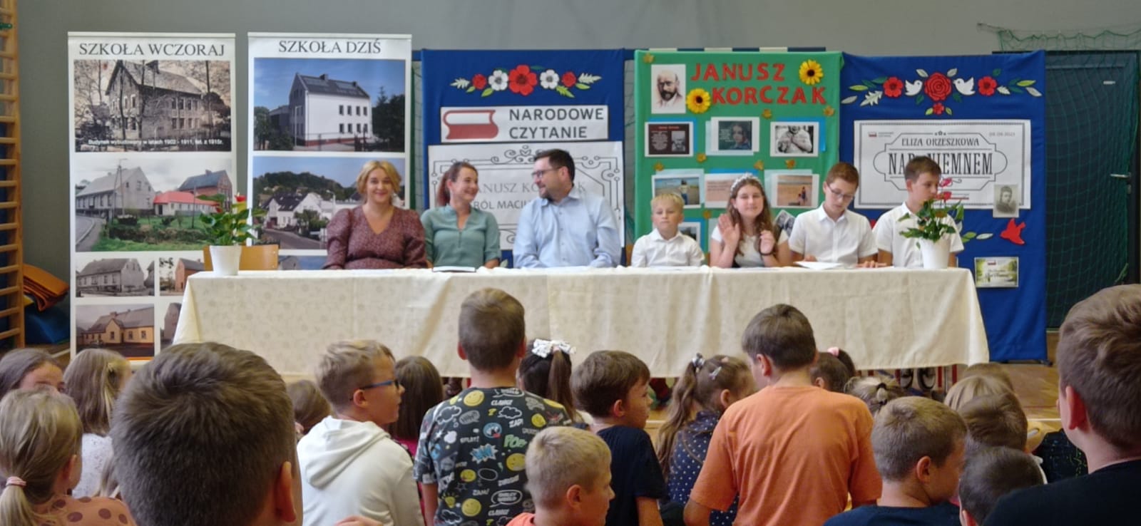 O odczytanie fragmentu poprosiliśmy Panią Dyrektor - Joannę Kolarczyk, rodziców uczniów klas starszych: Panią Małgorzatę Wojak, Panią Agnieszkę Wyszkoń, Pana Rafała Stencla oraz ucznów: Pawła Masarczyka z klasy IV, Magdalenę Wojak z klasy V, Andresa Burka z klasy VI oraz Michała Stencla z klasy VII.