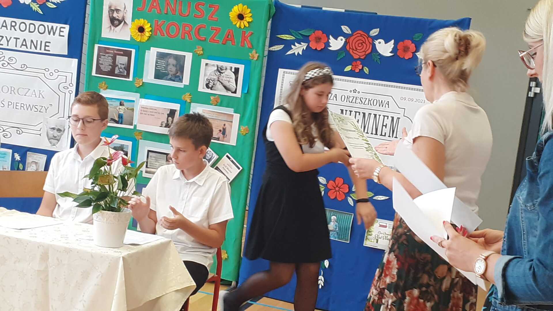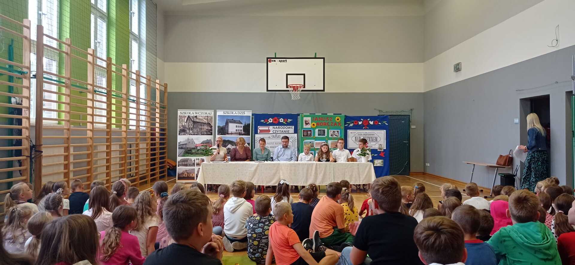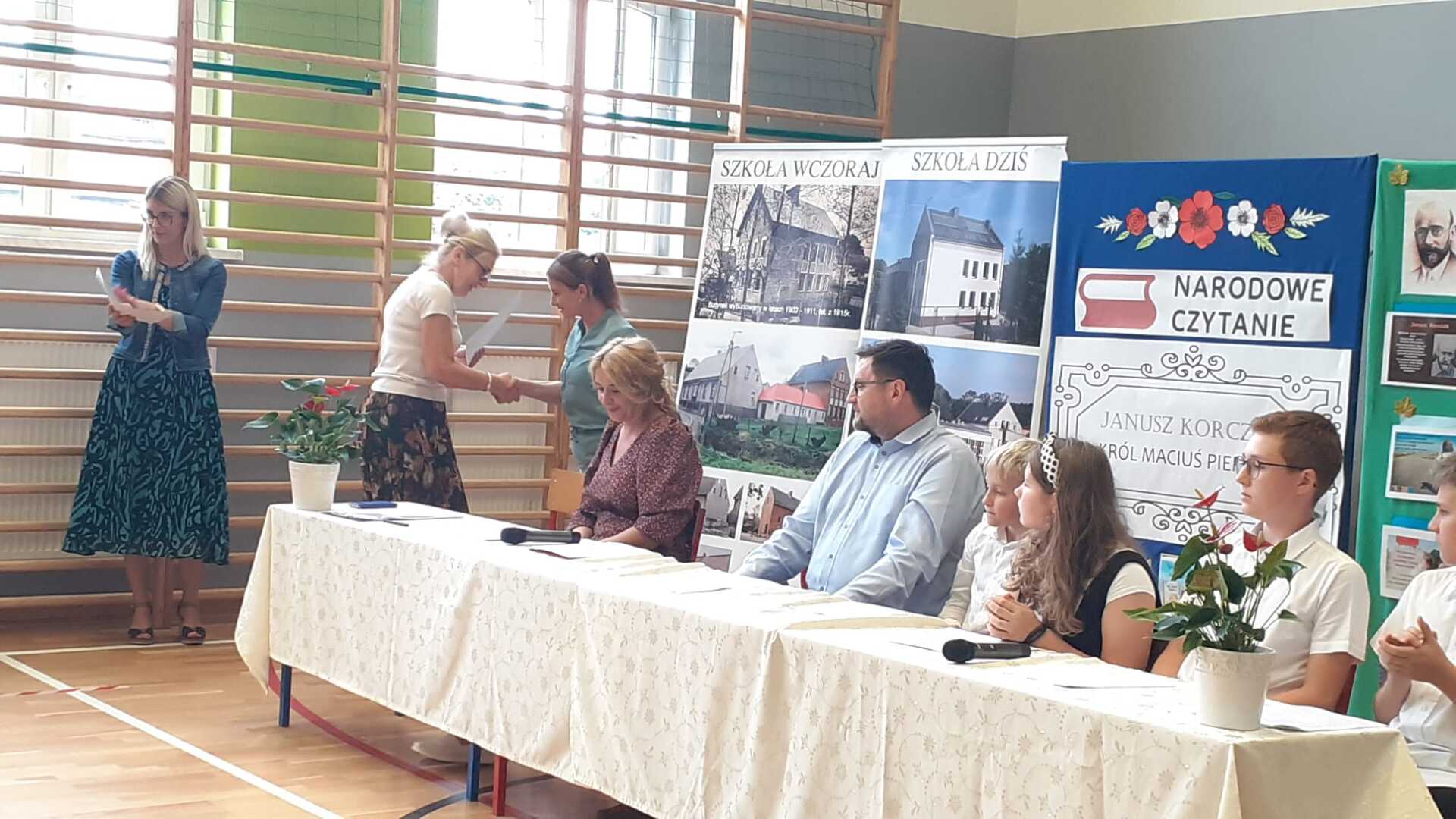 O odczytanie fragmentu poprosiliśmy Panią Dyrektor - Joannę Kolarczyk, rodziców uczniów klas starszych: Panią Małgorzatę Wojak, Panią Agnieszkę Wyszkoń, Pana Rafała Stencla oraz ucznów: Pawła Masarczyka z klasy IV, Magdalenę Wojak z klasy V, Andresa Burka z klasy VI oraz Michała Stencla z klasy VII.