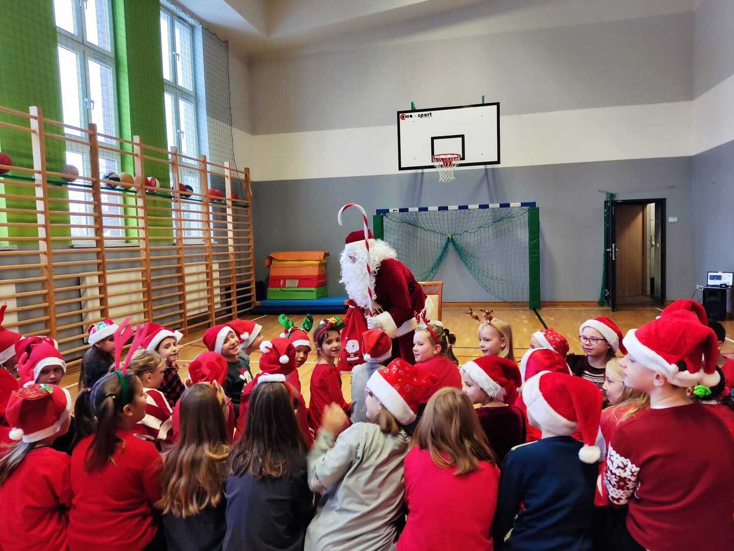 Dzisiaj 6 grudnia w naszej szkole odbyły się Mikołajki. Wszystkie dzieci z klas 1-3 z niecierpliwością oczekiwały wizyty Świętego Mikołaja, który przybył z workiem pełnym prezentów . Radość była ogromna.Na pożegnanie wszyscy zaśpiewali kolędy i piosenki dla Mikołaja.
