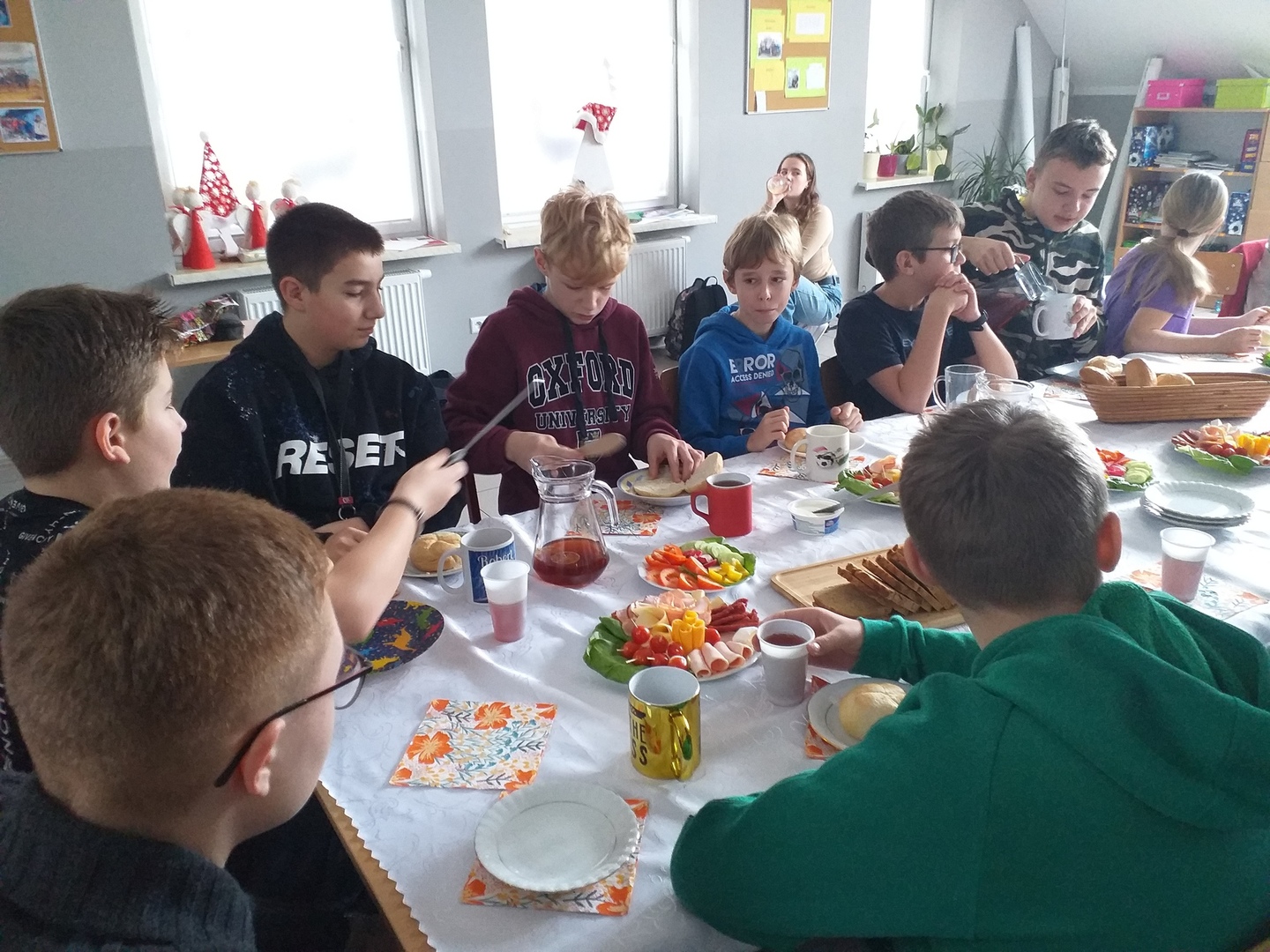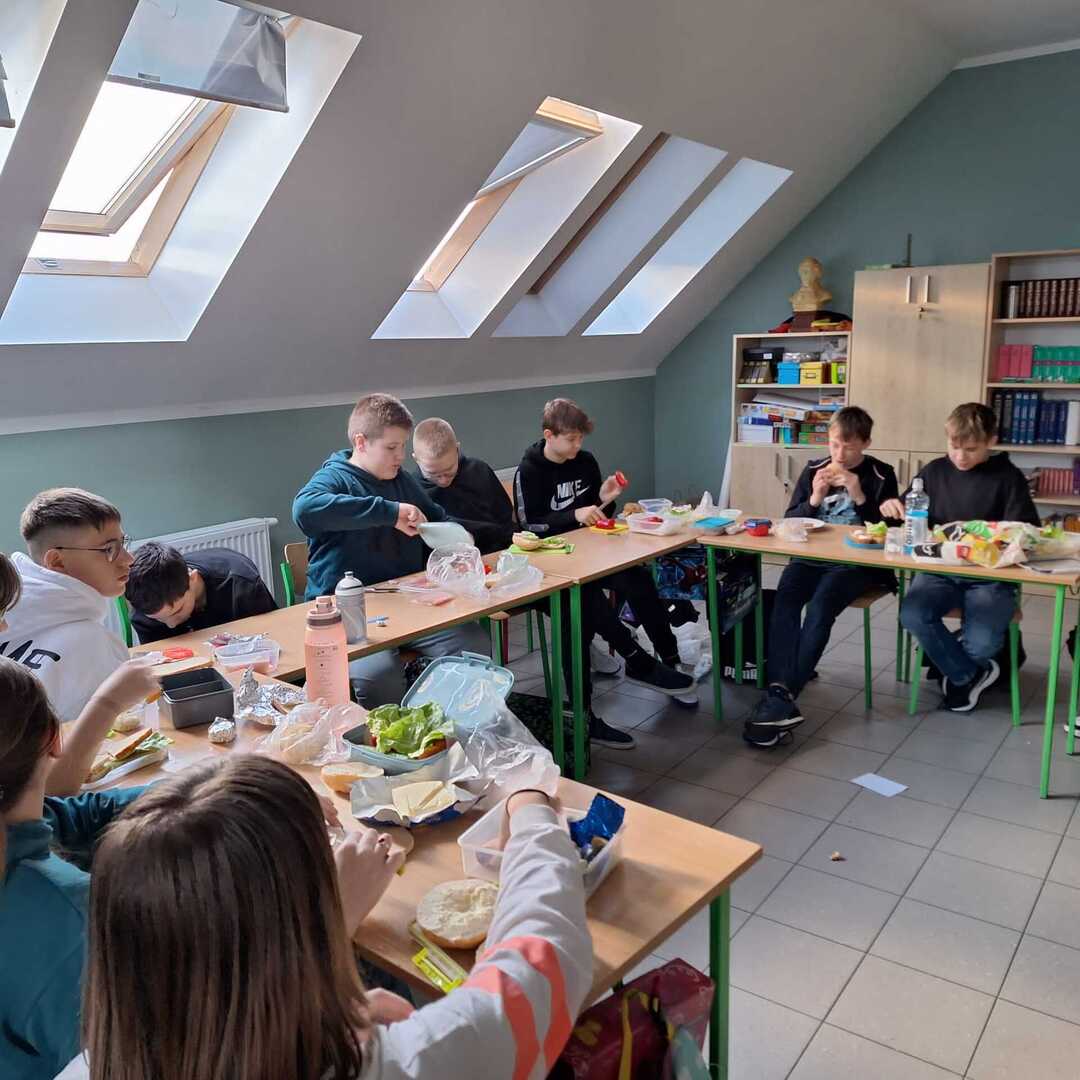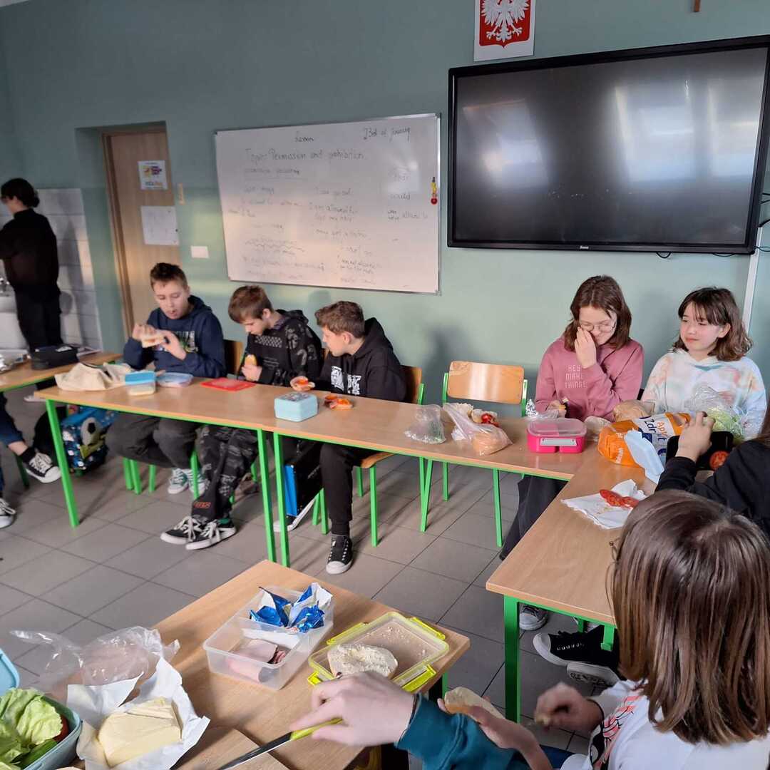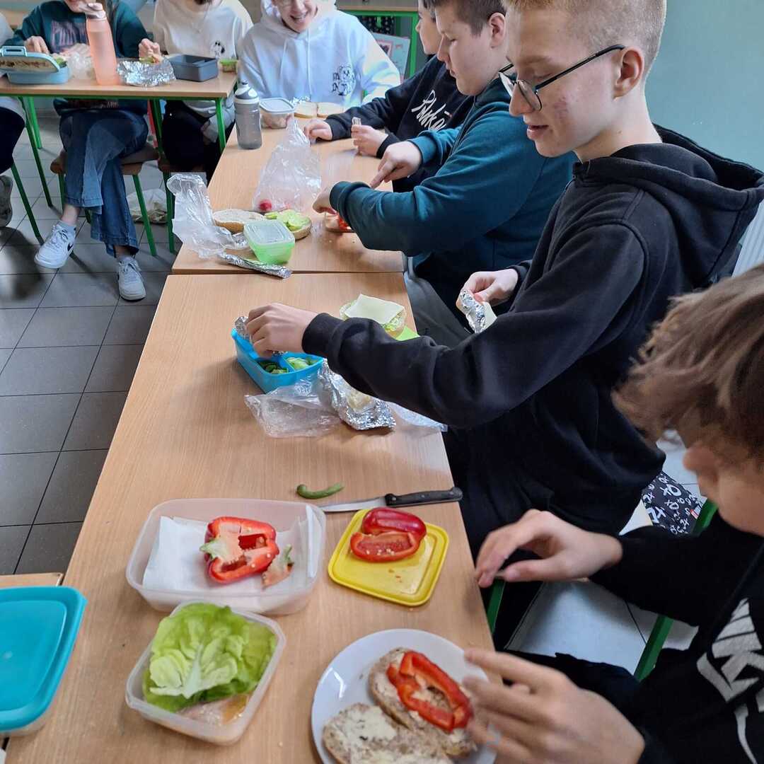 Śniadanie to najważniejszy posiłek dnia. Dzięki niemu dzieci mają energię do nauki, lepiej koncentrują się podczas lekcji i mają siłę do zabawy. To najlepszy start w nowy dzień! Co roku nasza szkoła bierze udział w ogólnopolskiej akcji "Śniadanie daje moc". Jej najważniejszym celem jest zwiększenie świadomości na temat zdrowego odżywiania i roli śniadania w diecie dzieci. W tym dniu nauczyciele wspólnie z uczniami przygotowują i wspólnie spożywają zdrowe i pyszne śniadanie.