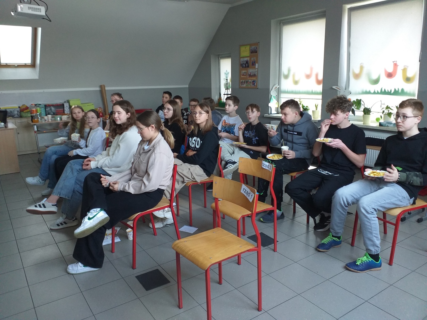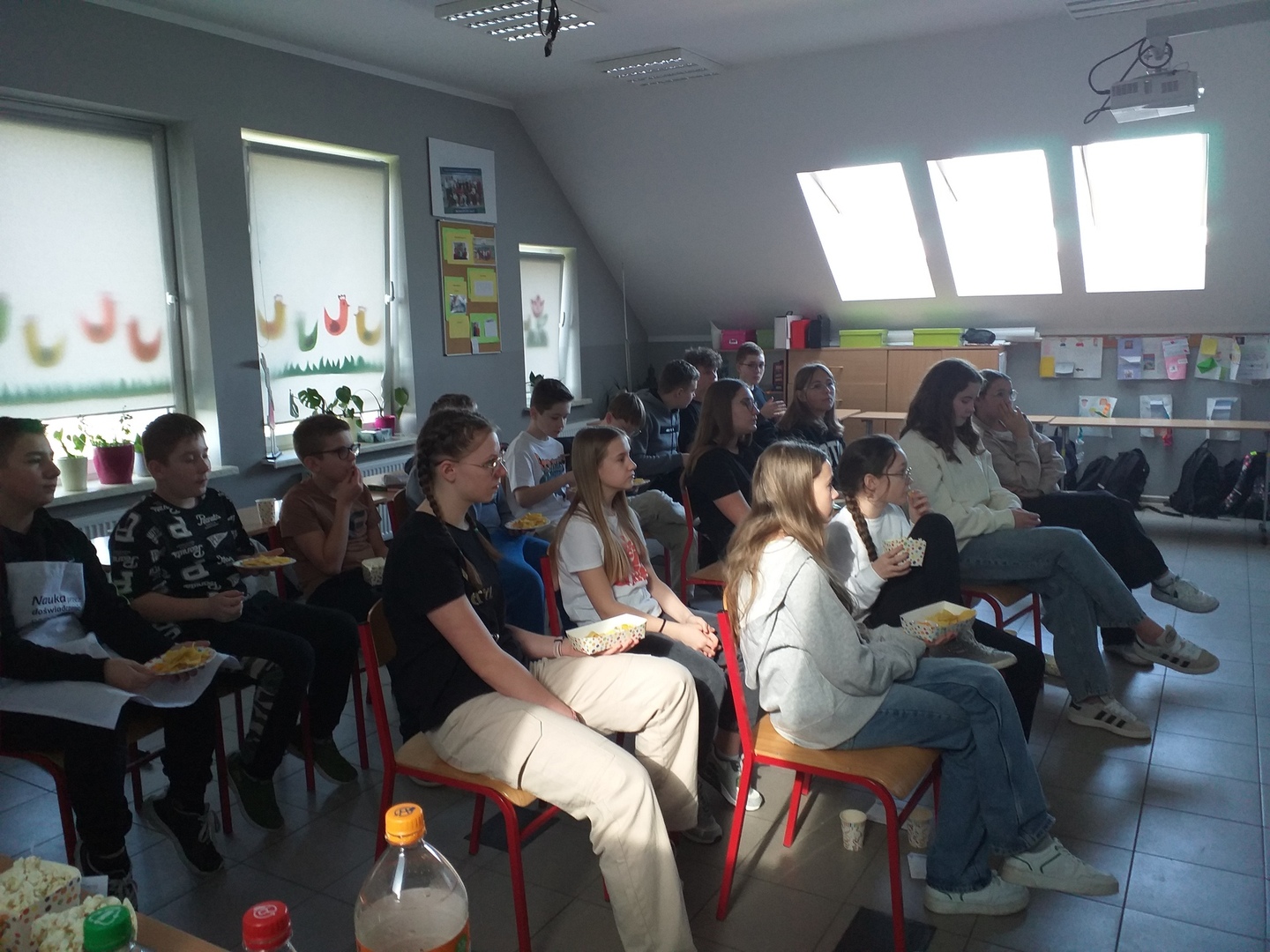 Uczniowie klasy VI juz w środę świętowali Dzień Kobiet. Z tej okazji chłopcy przygotowali dla swoich koleżanek "Klasowe Kino". Dziewczyny otrzymały bilety i dwa filmy do wyboru: "Podróż do wnętrza Zemi" oraz "Trzy kroki od siebie". Był też suto zastawiony bufet, w którym można było zamówić u "profesjonalnego" kucharza wszystko to, co w prawdziwym kinie czyli popcorn, nachosy z sosem, precle, paluszki, gumy oraz napoje gazowane. Cała klasa miło spędziła czas.