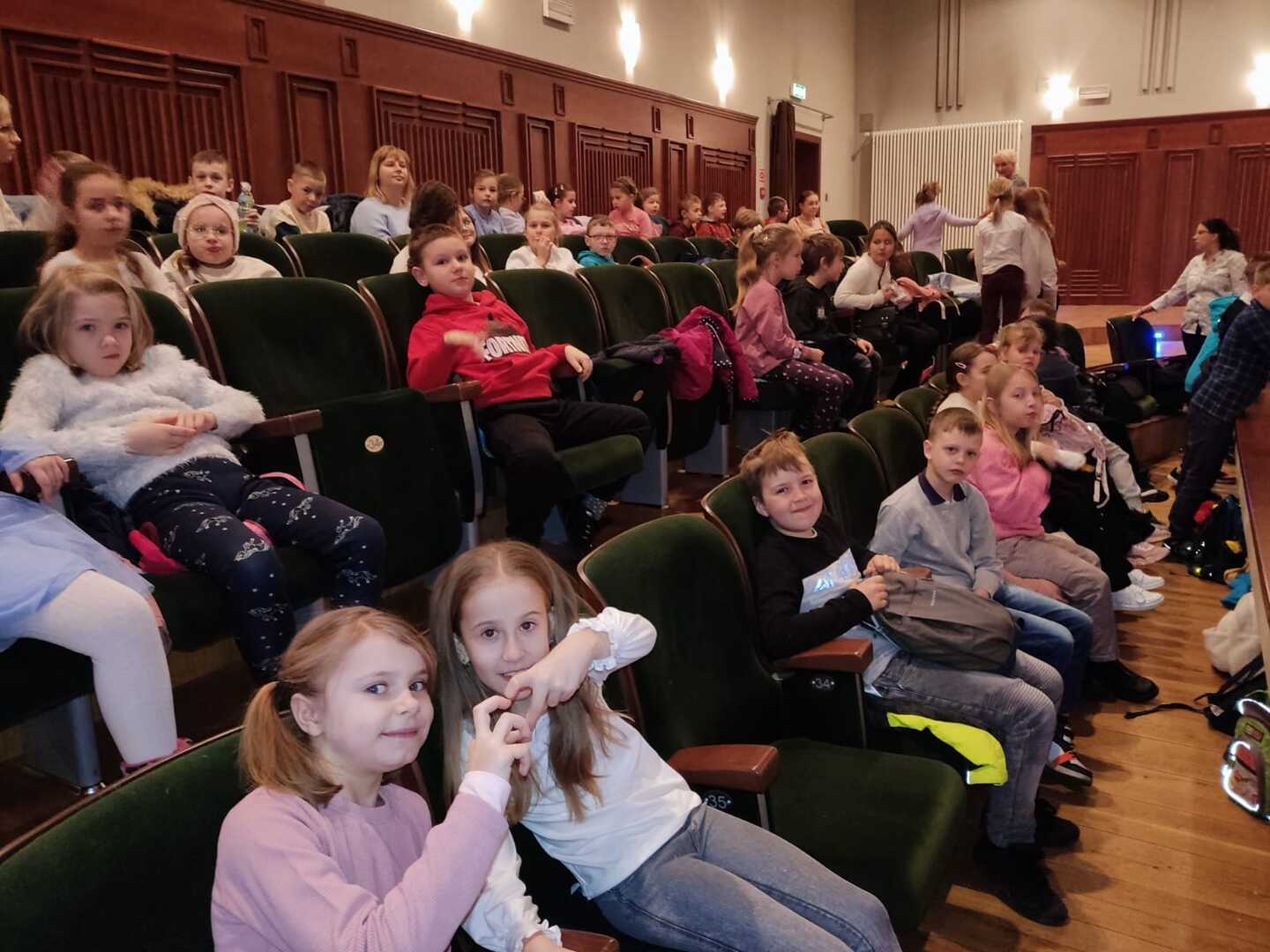 „Roszpunki”. Celem wyjazdu był kontakt uczniów z sztuką, podniesienie kompetencji kulturalnych związanych z zachowaniem w teatrze oraz wyzwalanie pozytywnych emocji i uczuć związanych z rolą małego widza. Uczniowie z niecierpliwością czekali na rozpoczęcie spektaklu, a następnie mieli okazję zobaczyć ciekawą scenografię, grę aktorską i efekty świetlne i muzykę.