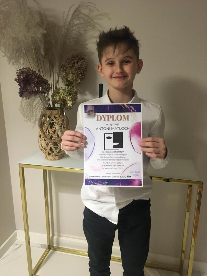 Marlena Bis i Antoni Matloch zostali jednymi z laureatów na szczeblu powiatowym i będą reprezentowali naszą szkołę podczas wojewódzkiego konkursu recytatorskiego. Każdy z uczestników spisał się fenomenalnie, godnie reprezentując naszą szkołę. Marlenie i Antkowi życzymy dalszych sukcesów.