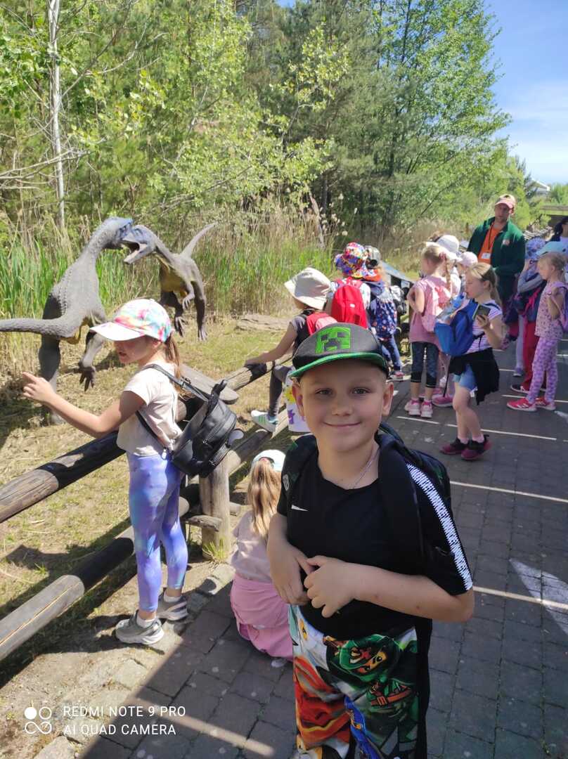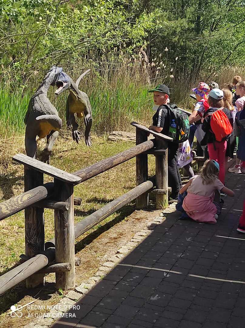 W piękny, słoneczny dzień 13 maja uczniowie klas I-II wyruszyli na wycieczkę do największego w Europie Parku Dinozaurów w Krasiejowie. Zwiedzanie tego niezwykłego miejsca rozpoczęliśmy od Multimedialnego Tunelu Czasu, gdzie podziwialiśmy sceny przedstawiające kształtowanie się Ziemi, rozwój i wymieranie wielu gatunków zwierząt. Następnie uczestnicy wycieczki wyruszyli na spacer wraz z przewodnikiem ścieżką edukacyjną. Uczniowie oglądali modele różnych gatunków dinozaurów, słuchali opowieści o ich życiu i zwyczajach. Ostatnim etapem było Oceanarium, w którym trójwymiarowa technika imituje głębię oceanu. Podróż w czasie zakończyła się na placu zabaw. Przez cały dzień uczestników wycieczki nie opuszczał dobry humor. Oczywiście nie zapomnieliśmy o pamiątkach, lodach i wspólnych fotografiach.
