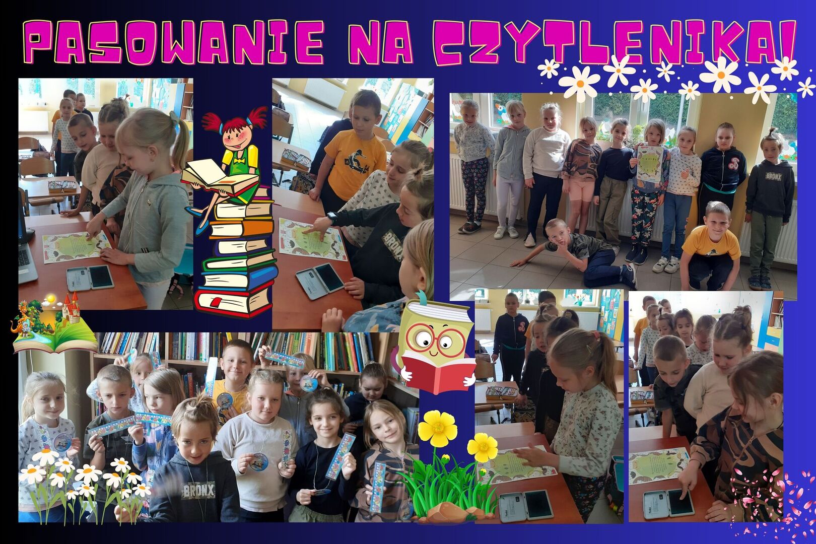 W ubiegłym tygodniu uczniowie klasy pierwszej uczestniczyli w lekcji pasowania na czytelnika. Z tej okazji pani zaprosiła dzieci do biblioteki, aby przybić paluszkową pieczątkę na przyrzeczeniu, w którym uczniowie zobowiązują się do szanowania książek i częstego korzystania ze zbiorów biblioteki. W tym dniu rozmawialiśmy też o tym, jak należy zachowywać się w bibliotece i jak postępować z książkami, aby służyły nam w bibliotece jak najdłużej. Na pamiątkę dzieci otrzymały zakładki i medale oraz wysłuchały piosenek o książkach. Życzymy sobie, by klasa pierwsza często odwiedzała bibliotekę nie tylko szkolną!