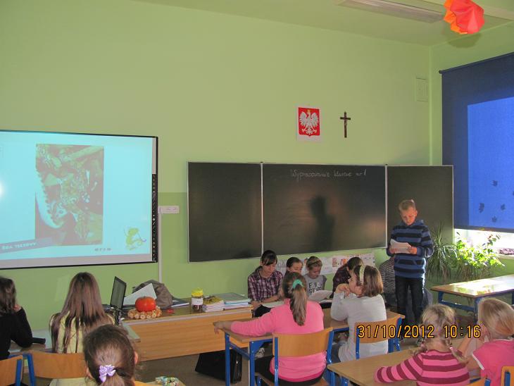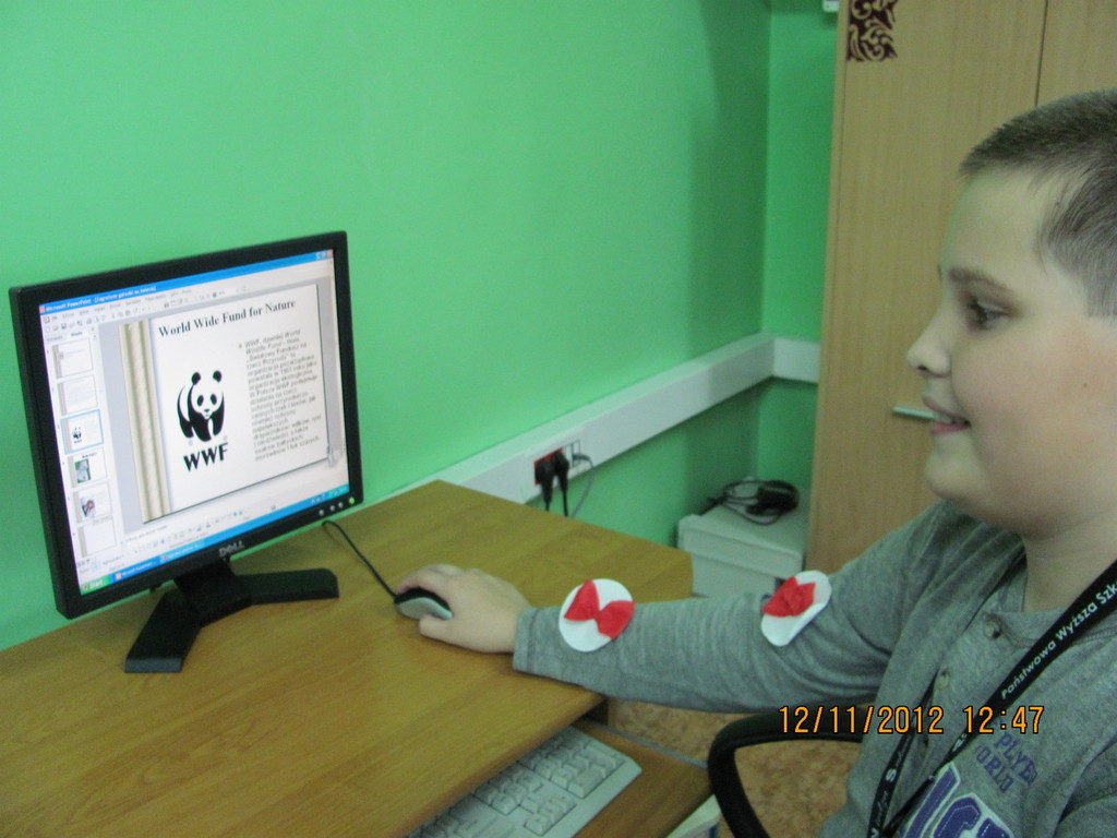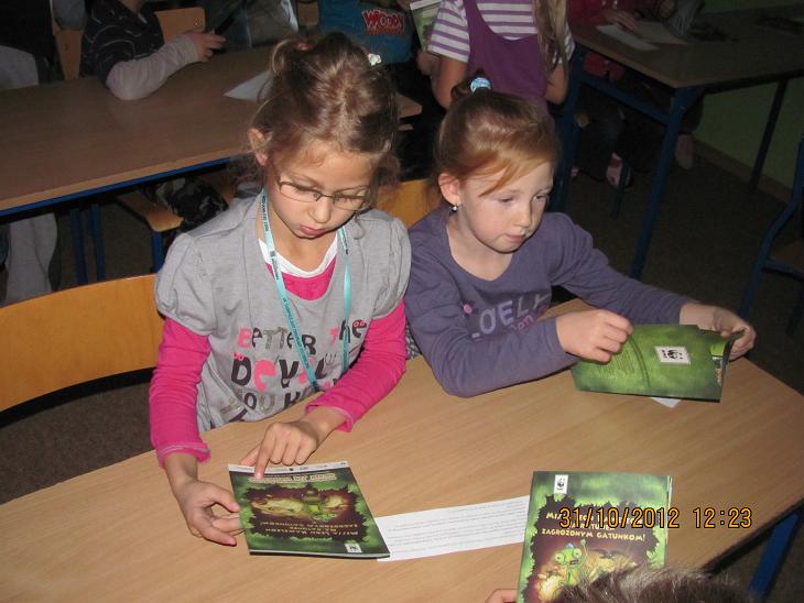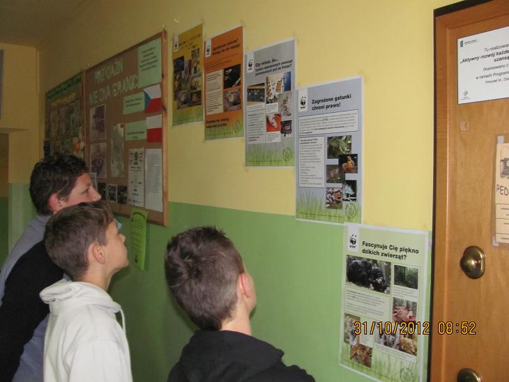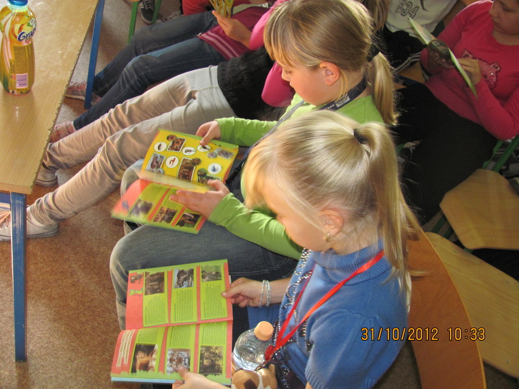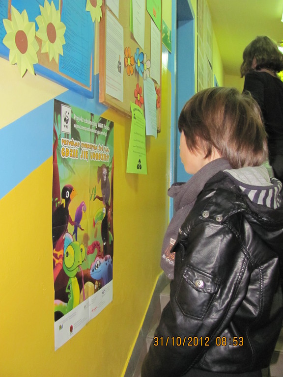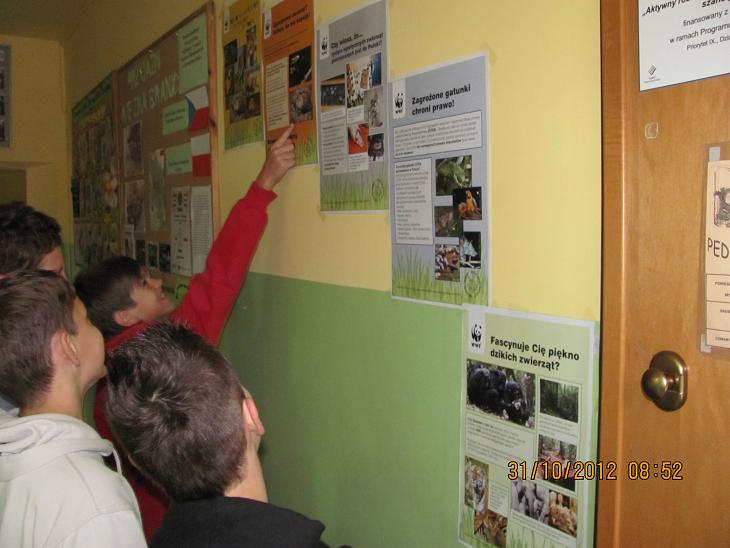 W środę (31.10.12r.) członkowie samorządu uczniowskiego przeprowadzili dla uczniów prelekcje w ramach ogólnopolskiego projektu edukacyjnego dla szkół podstawowych- „Pozwólmy zwierzętom żyć tam, gdzie się urodziły”zorganizowanego przez Fundację WWF i dofinansowanego ze środków Narodowego Funduszu Ochrony Środowiska i Gospodarki Wodnej.
