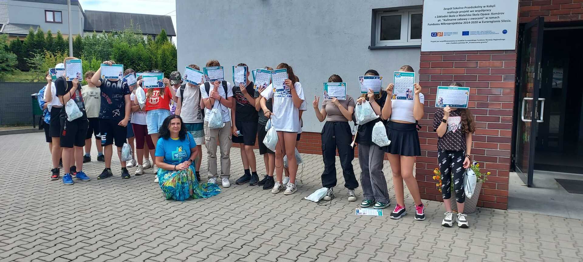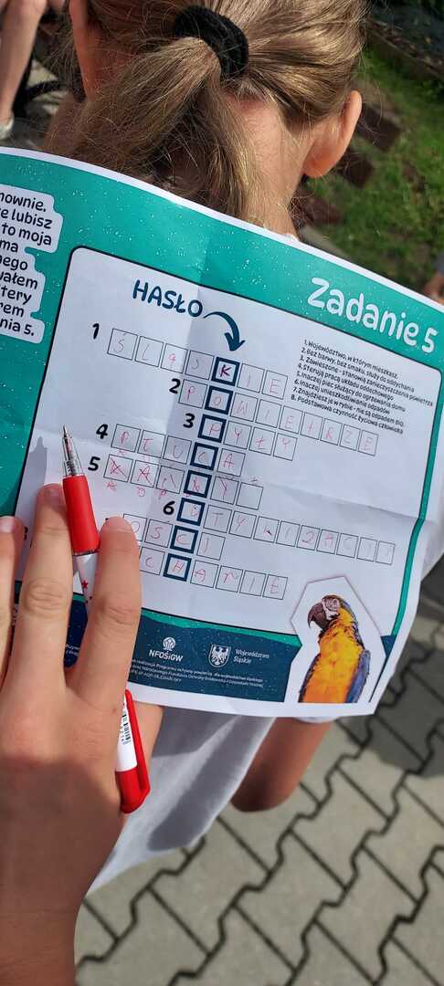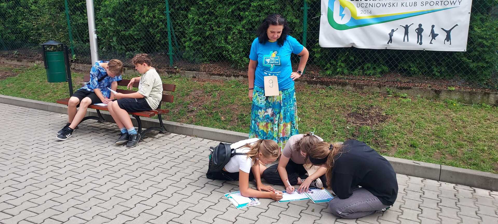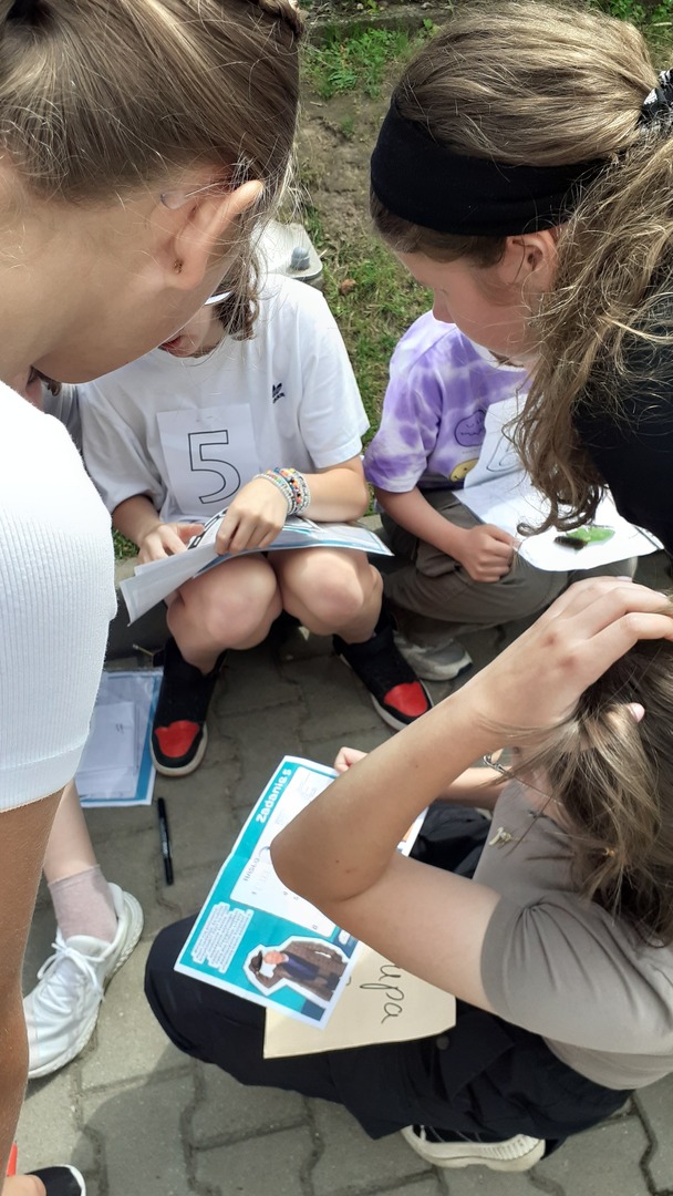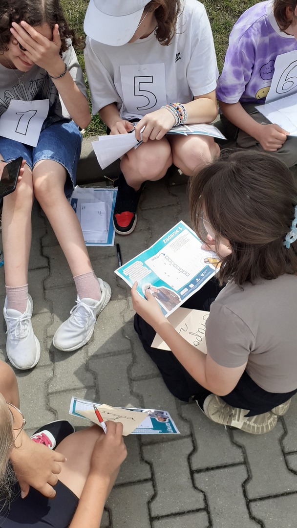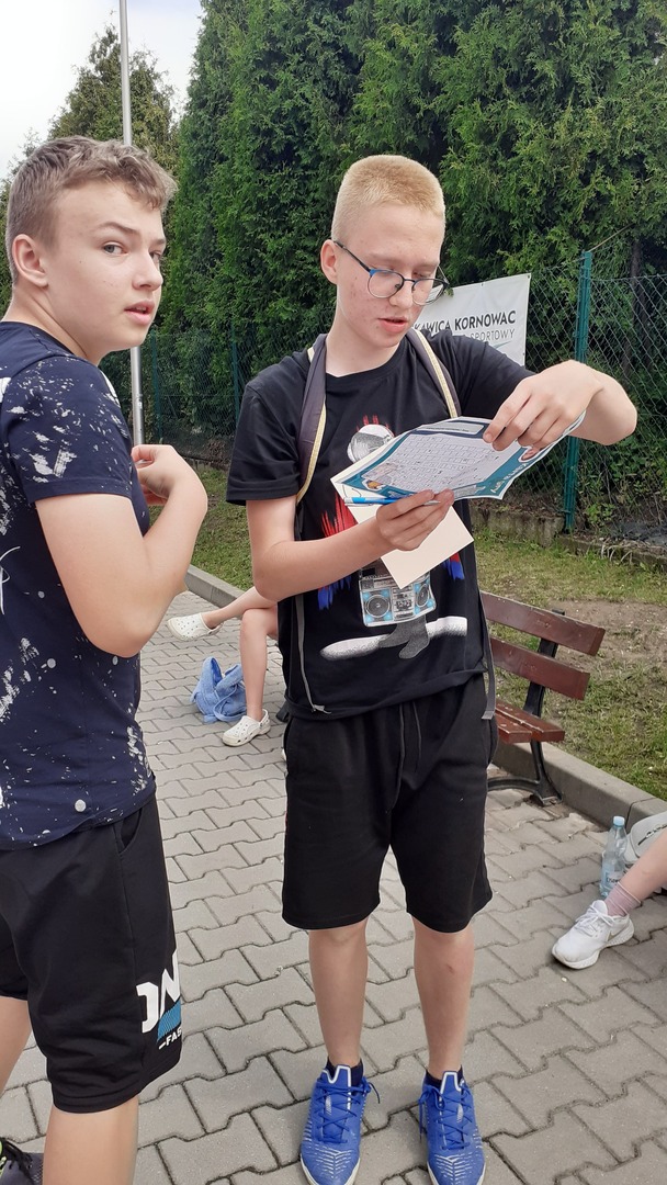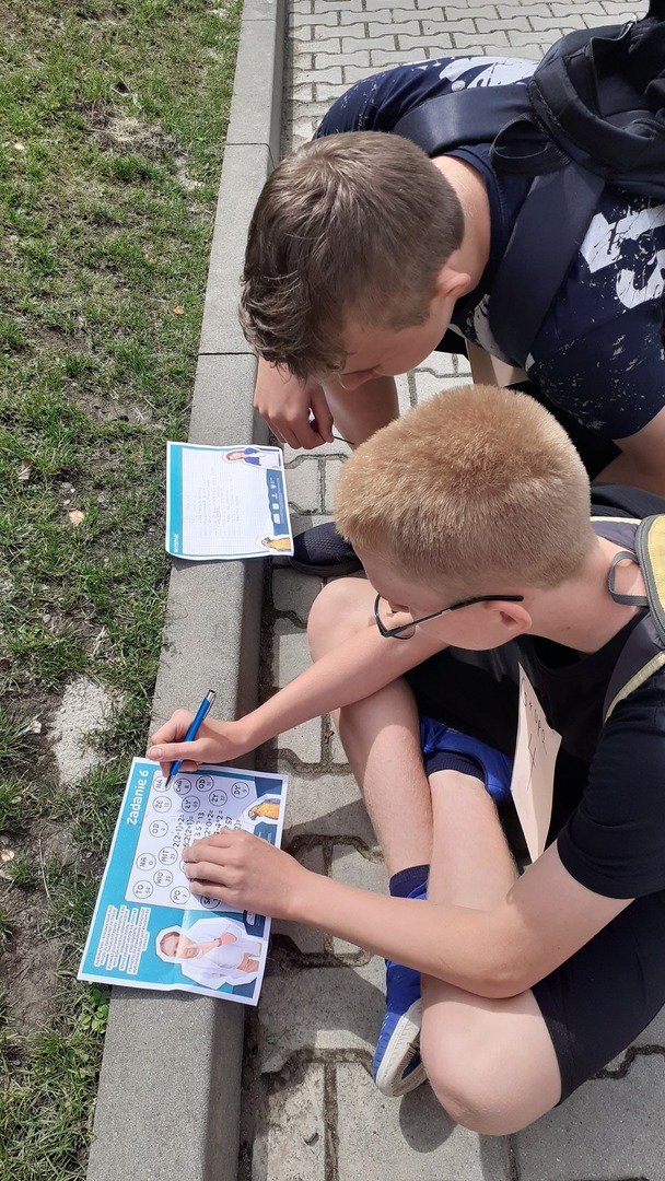 Dzień przed zakończeniem roku szkolnego uczniowie klasy VI i VII brali udział w grze terenowej "Lufcik na tropie czystego powietrza". Grę prowadził nasz Szkolny Zespół Antysmogowy. Polegała ona na odczytywaniu wskazówek umiejscowienia zagadek na terenie budynku szkolnego i placu szkolnego, odszukaniu ich oraz rozwiązaniu. Zagadek było 9, natomiast na samym końcu z wyznaczonych liter uczniowie mieli za zadanie odgadnąć hasło główne, promujące dbanie o czystość naszego powietrza. Całość nadzorowała pani Ewa Mura - Pancerzyńska, która jest naszym eko doradcą w ramach projektu zintegrowanego LIFE: "Śląskie. Przywracamy błękit". Uczniowie rywalizowali ze sobą o pierwsze miejsce, ale wszyscy bardzo dobrze się bawili.