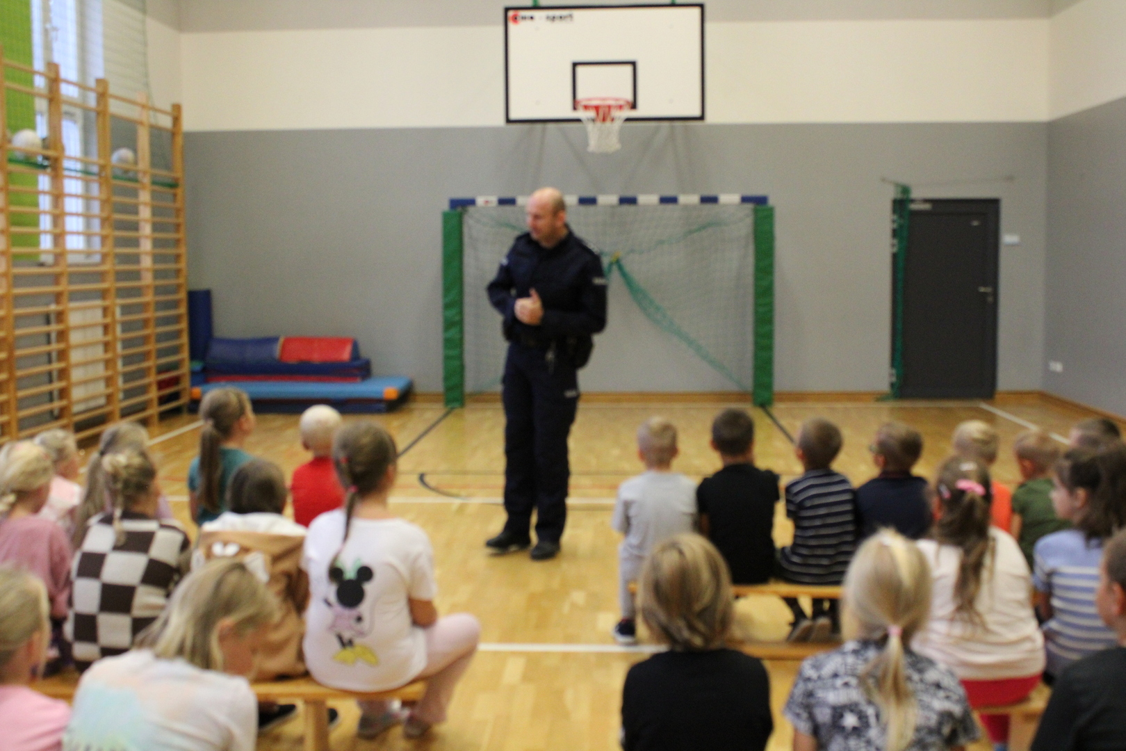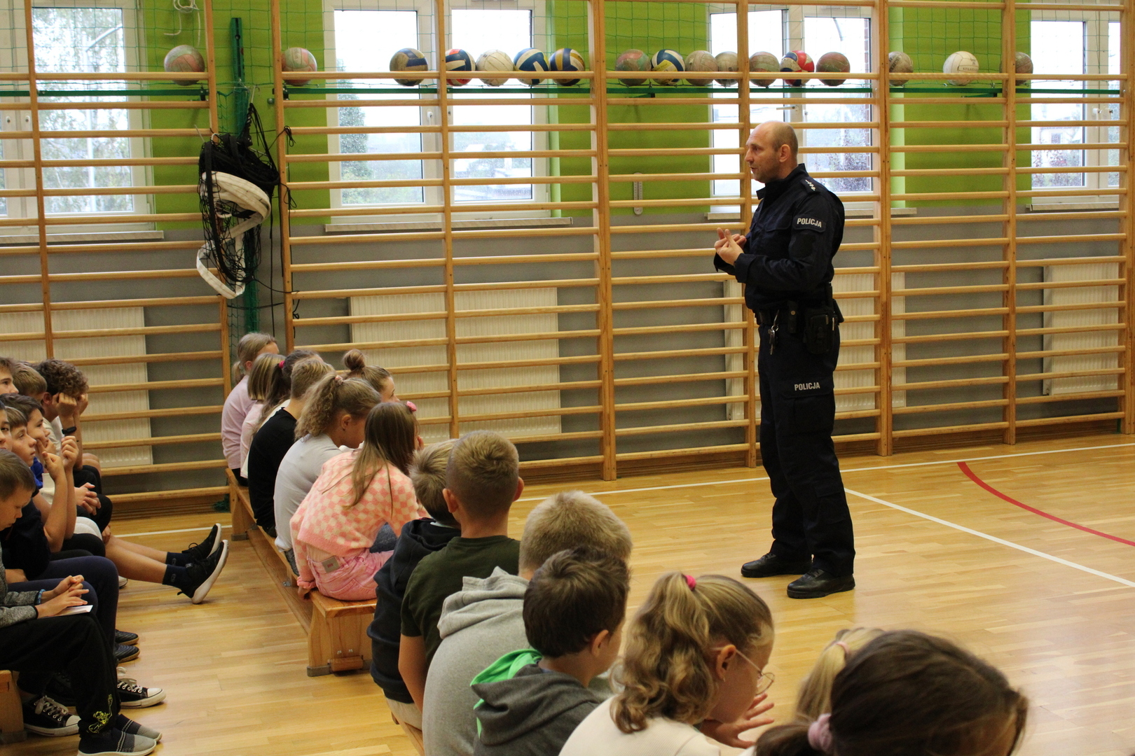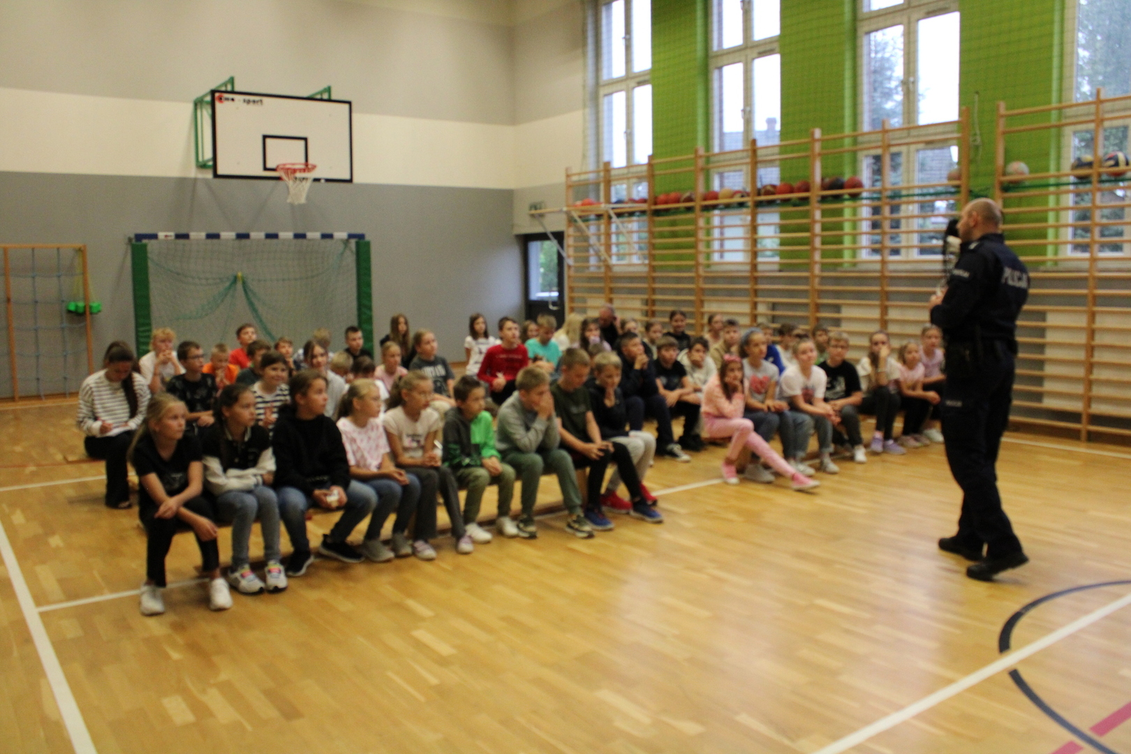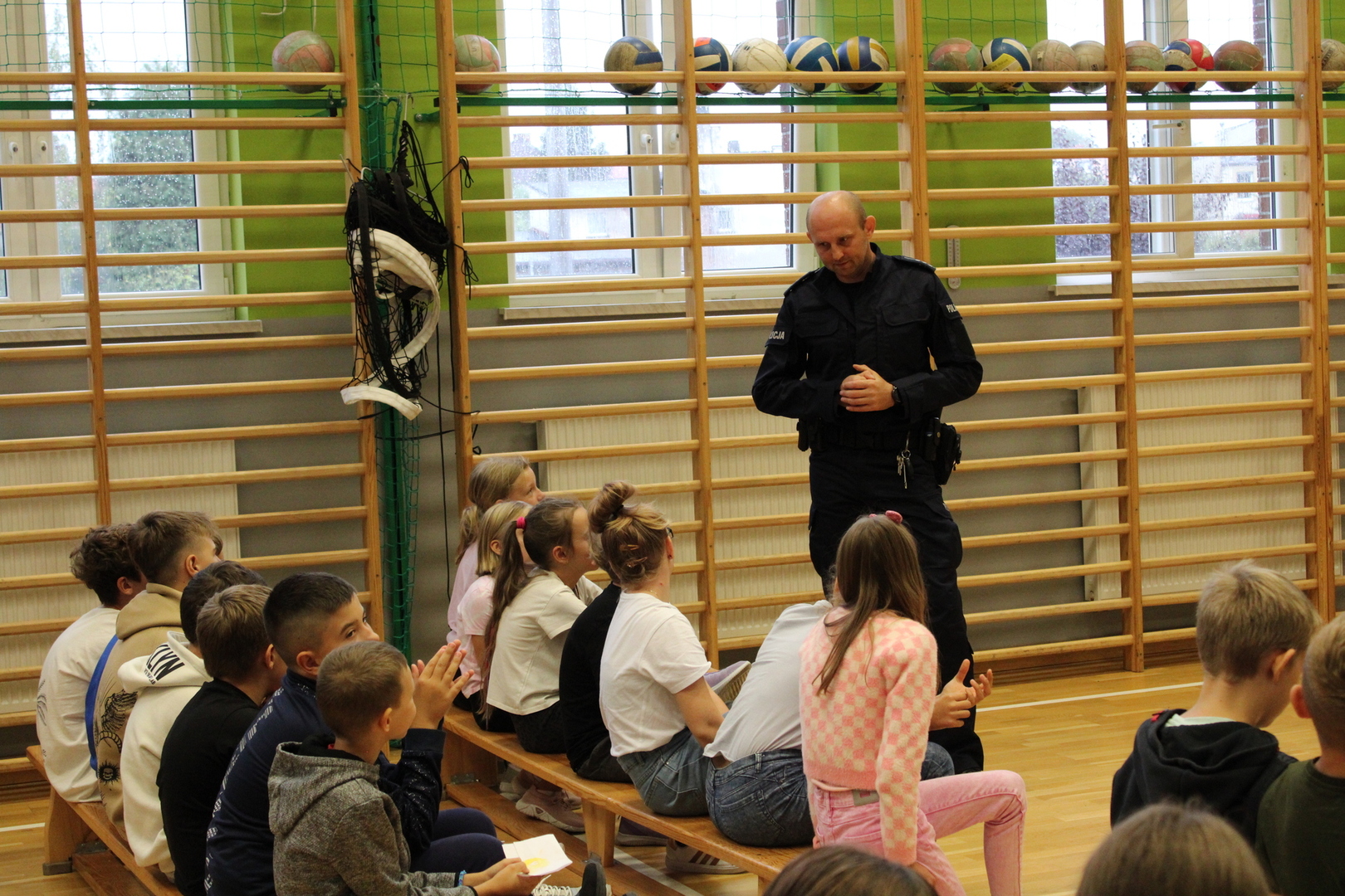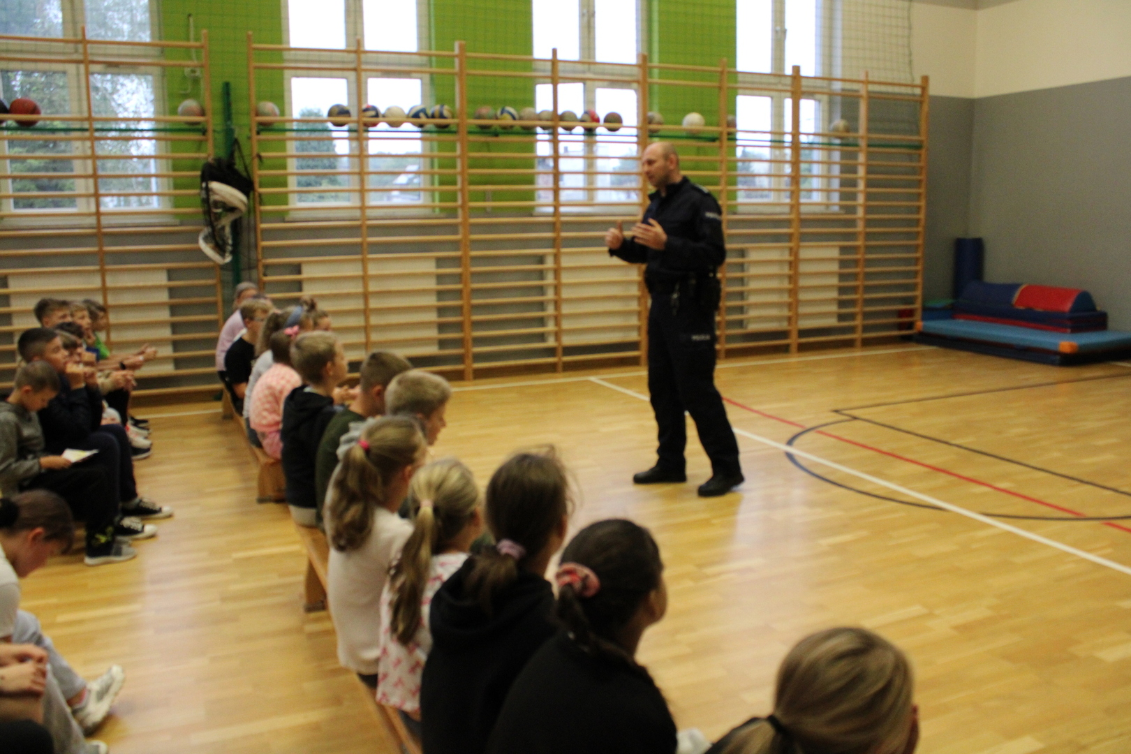 Bezpieczeństwo dzieci to priorytet każdego rodzica oraz opiekuna. Właśnie dlatego nasza szkoła regularnie organizuje spotkania edukacyjne z przedstawicielami służb mundurowych w naszej gminie. Dzisiejsze spotkanie z policjantem dotyczyło zasad bezpieczeństwa w drodze do szkoły jak również ze szkoły do domu. Kolejne ważne tematy poruszane to zachowania bezpieczeństwa na przystankach autobusowych, noszenie odblasków, bezpiecznej jazdy na rowerze oraz hulajnodze elektrycznej jak również unikanie rozmów z