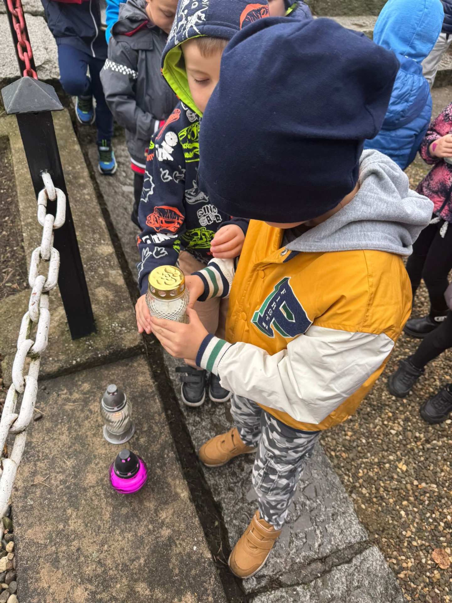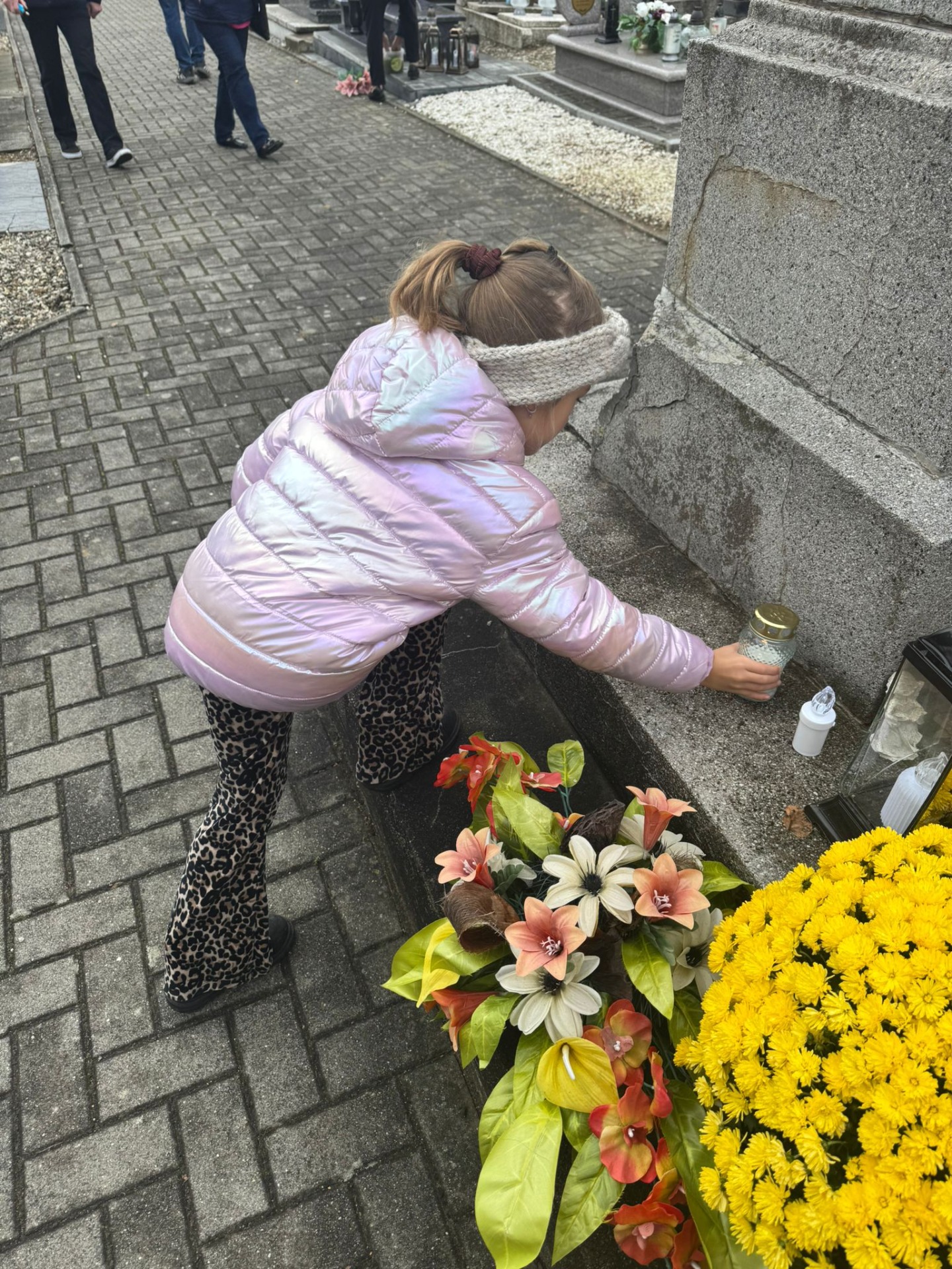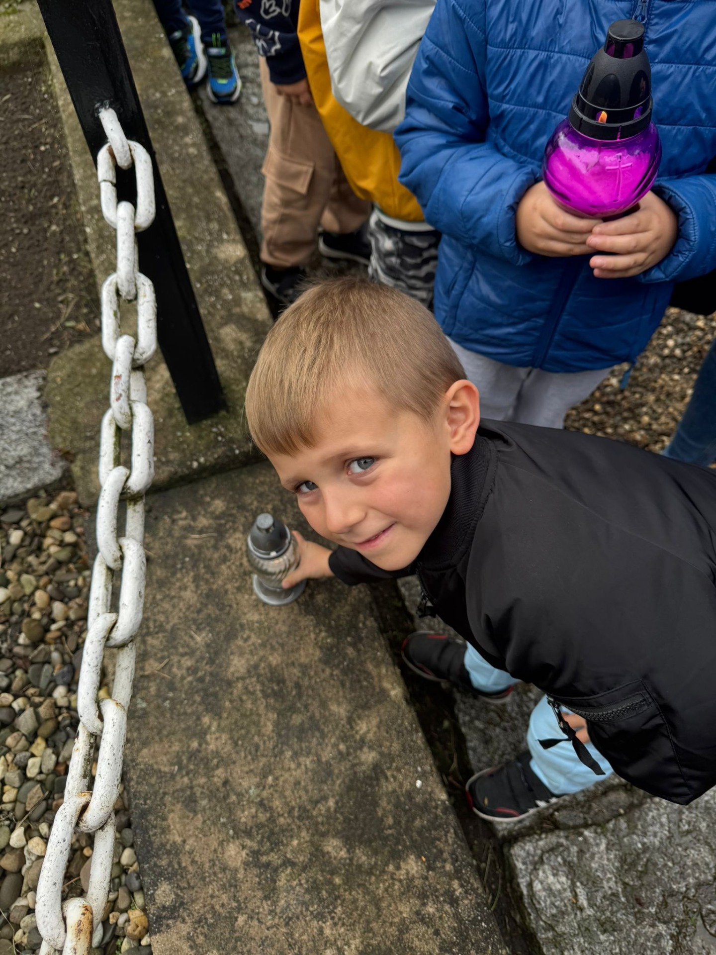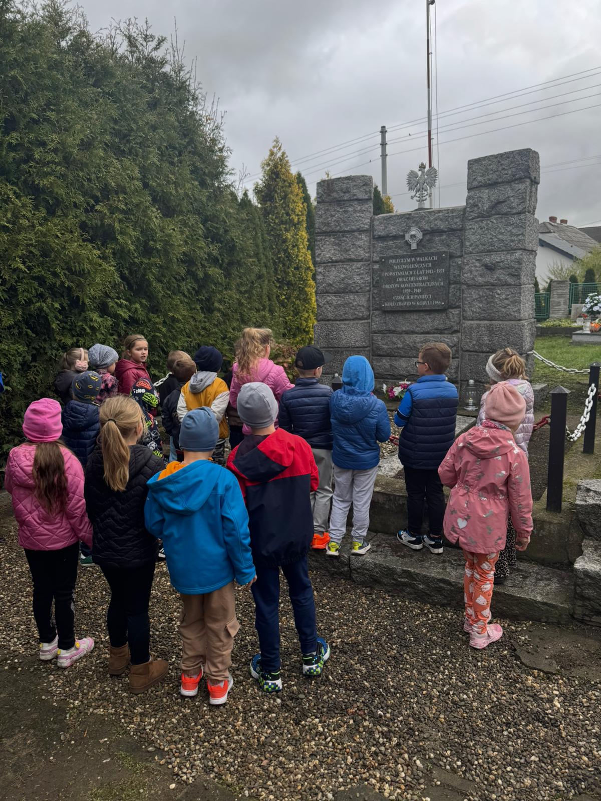 W czwartek 31 października uczniowie klasy pierwszej udali się pobliski cmentarz oraz obejście kościoła celem uczczenia pamięci zmarłych żołnierzy. W czasie wycieczki dzieci poznały tradycje, zwyczaje związane ze świętem zmarłych w naszej kulturze i religii. Zrozumiały też jak należy zachowywać się na cmentarzu, by nie zakłócać spokoju osób odwiedzających to miejsce. To była bardzo ważna lekcja wychowania rodzinnego, obywatelskiego i patriotycznego, która pozostanie dzieciom w pamięci.