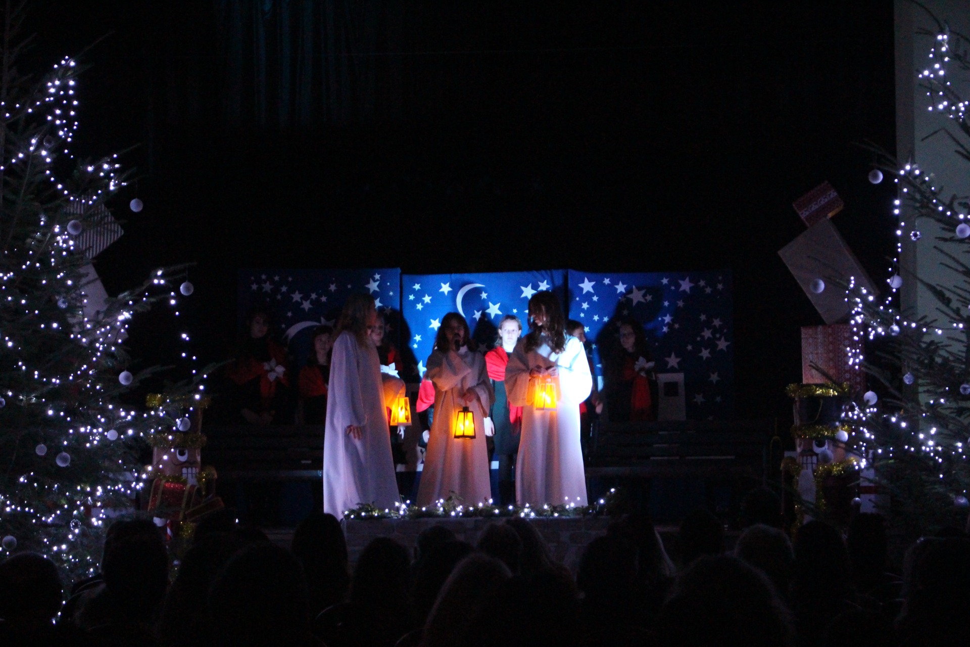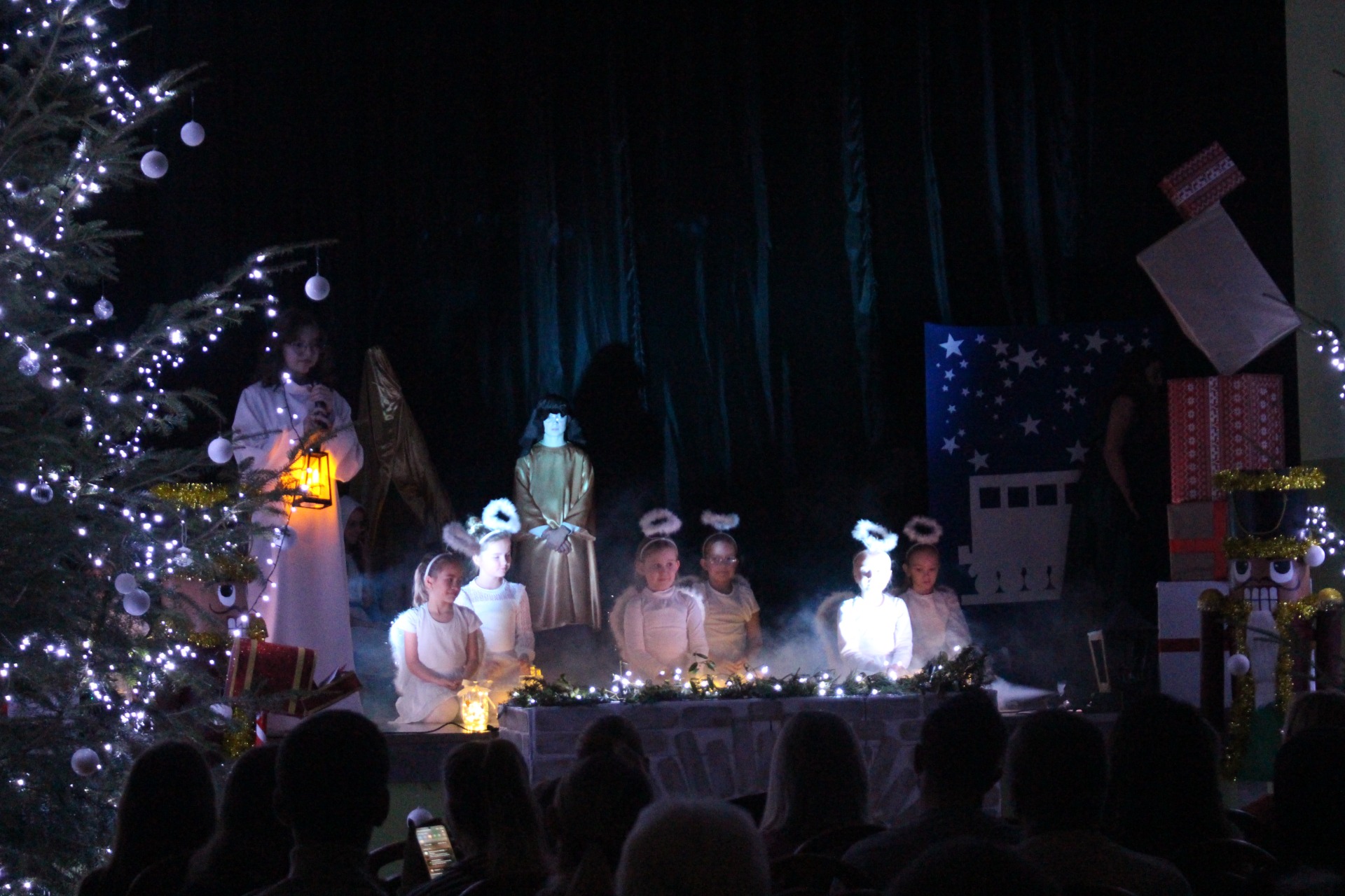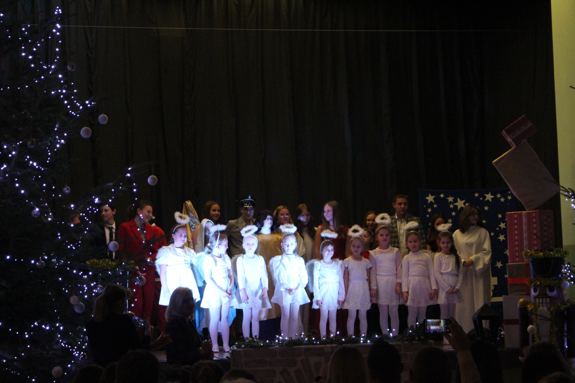 Tradycją naszej szkoły jest, że na jasełka zapraszamy lokalną społeczność, rodziców, dziadków, przyjaciół szkoły. W tym roku miało to miejsce 9 grudnia. Przybyli goście z wielkim zainteresowaniem obejrzeli występ szkolnych artystów. Kiedy artystyczna część dobiegła końca występujący na scenie otrzymali gromkie brawa, które były uznaniem za piękne wykonanie przedstawienia. Po występie głos zabrała Pani Dyrektor Joanna Kolarczyk, która podziękowała uczniom za występ i złożyła wszystkim zgromadzonym bożonarodzeniowe życzenia.