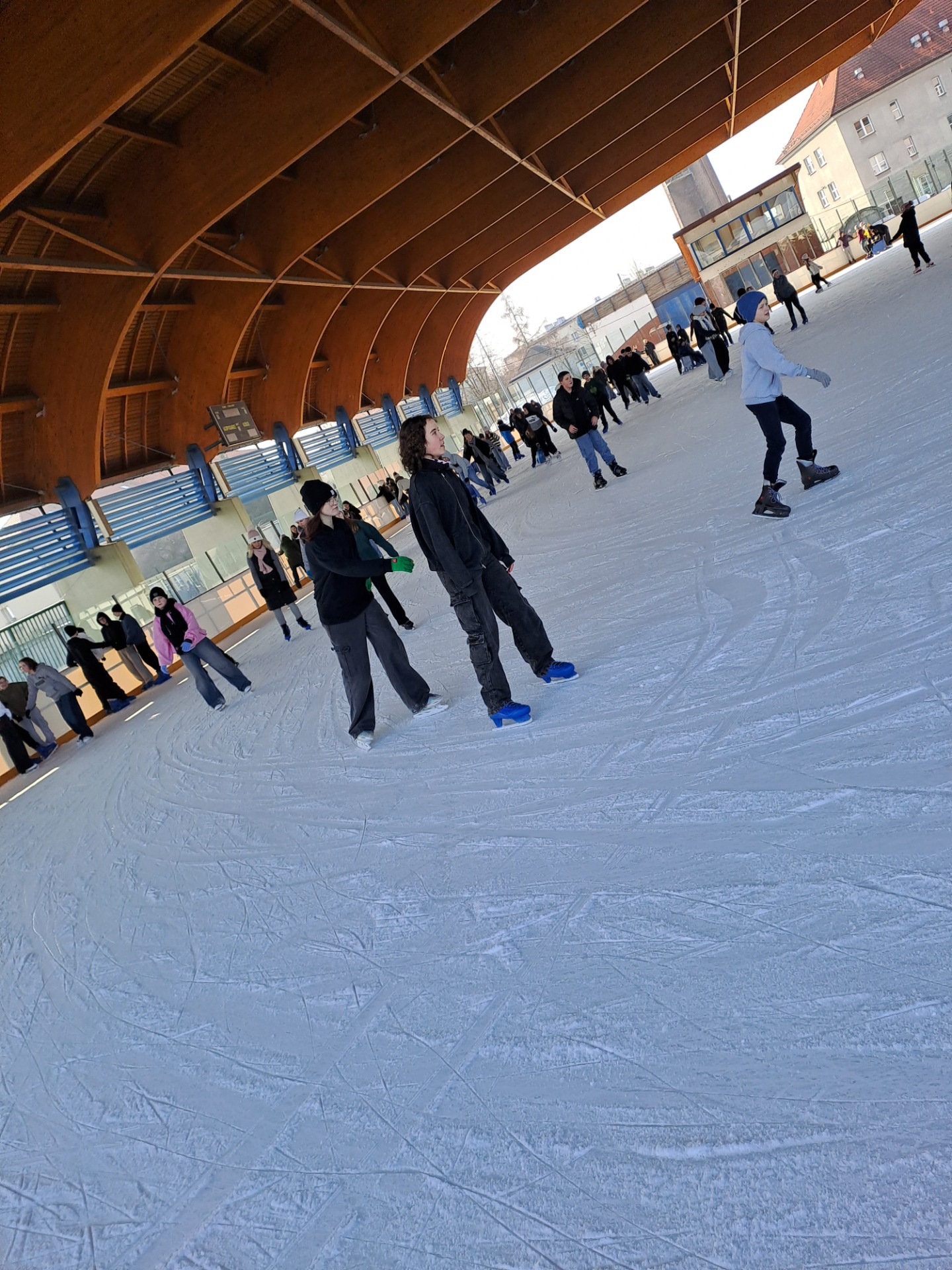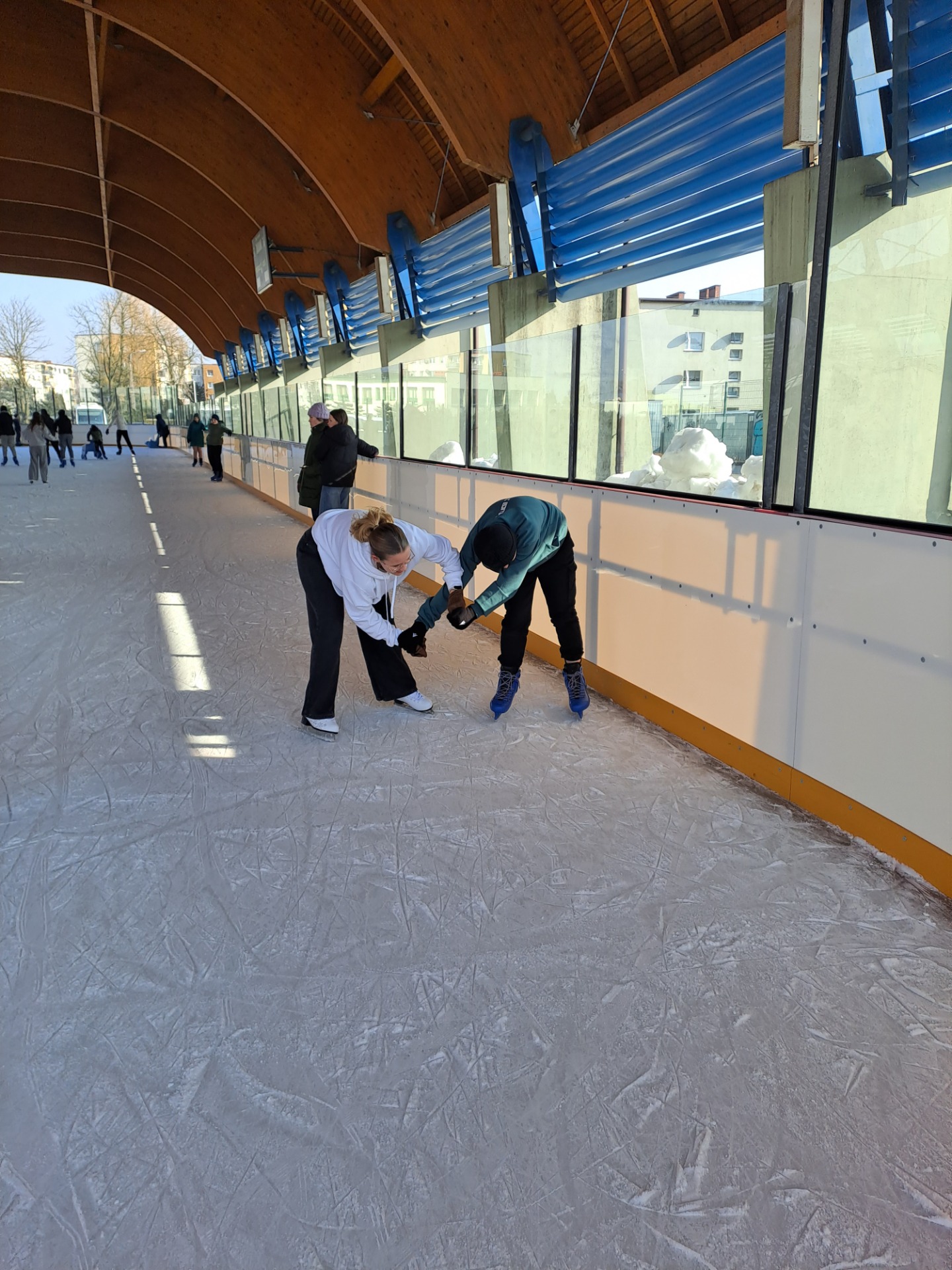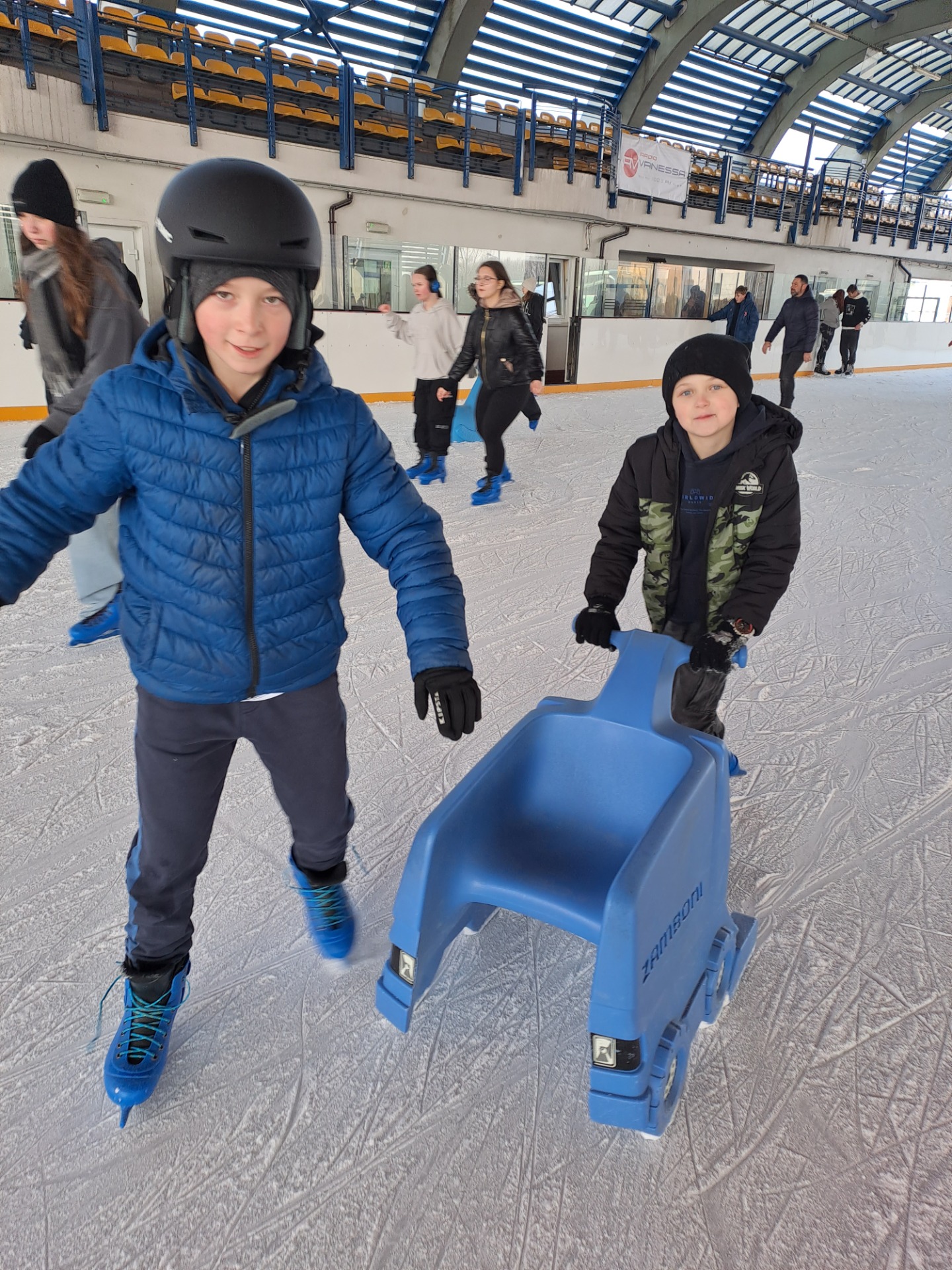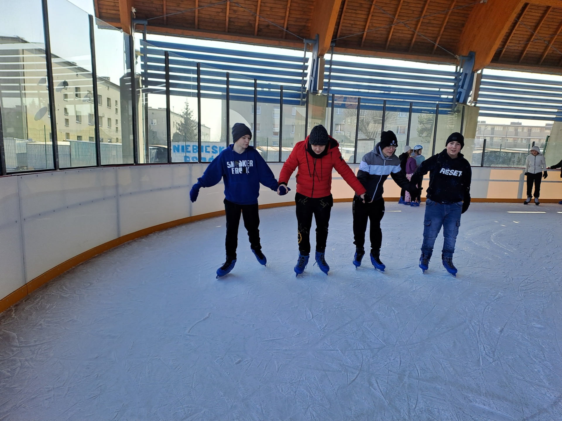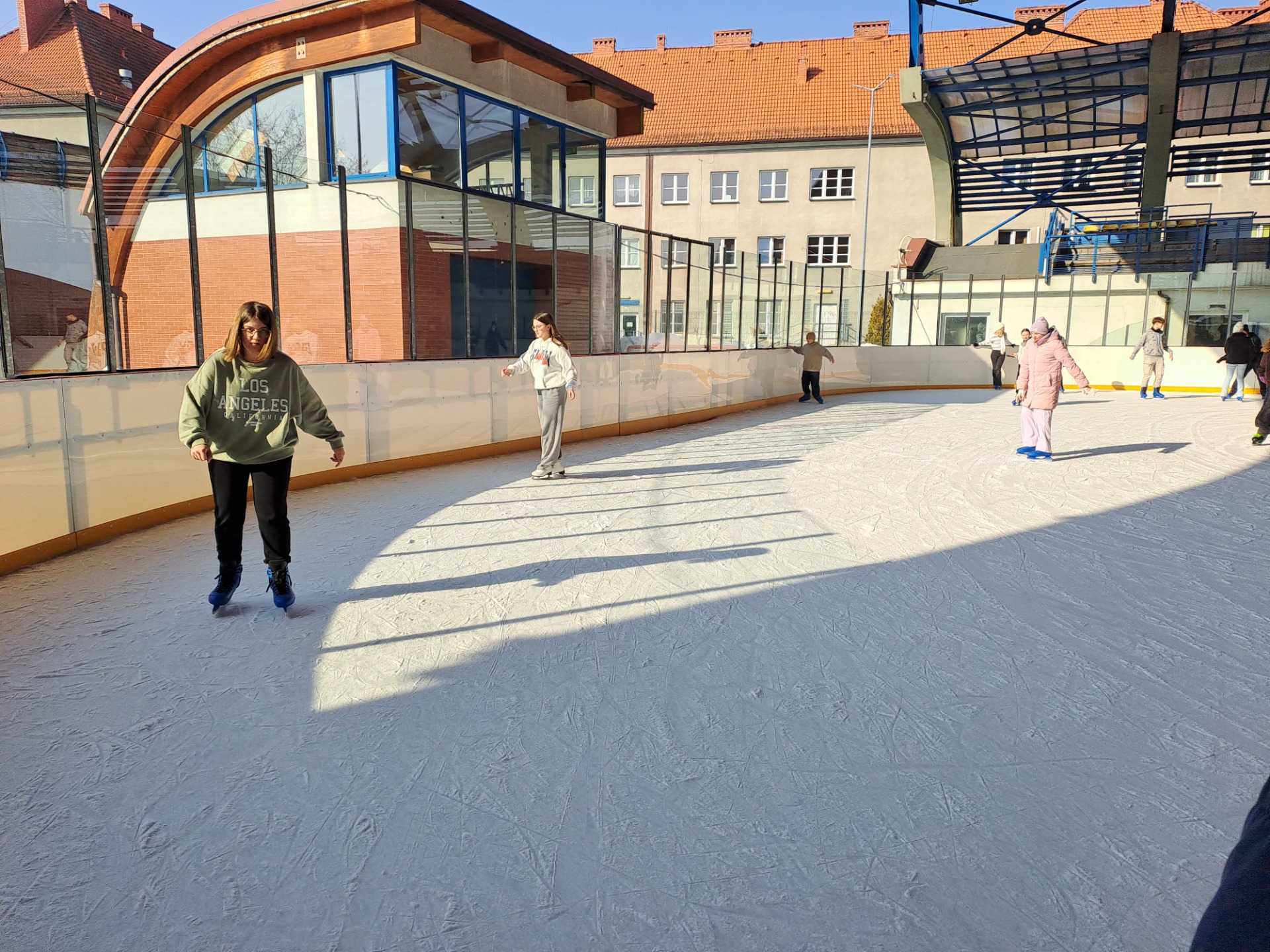 Dla większości uczniów nie był to pierwszy wyjazd ale byli i tacy, którzy po raz pierwszy zmierzyli się z lodową taflą lodowiska. Nie obyło się oczywiście, bez drobnych upadków ale entuzjazm jaki towarzyszył uczniom podczas jazdy łagodził drobne potknięcia. Nowicjuszom w nauce jazdy na łyżwach oprócz opiekunów pomagały zaprzyjaźnione „pingwiny”,i koledzy z klasy.