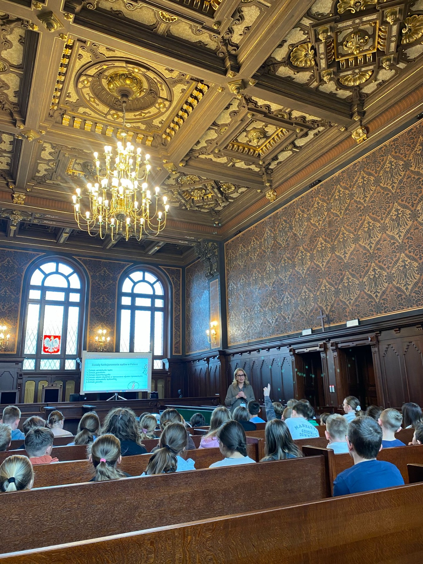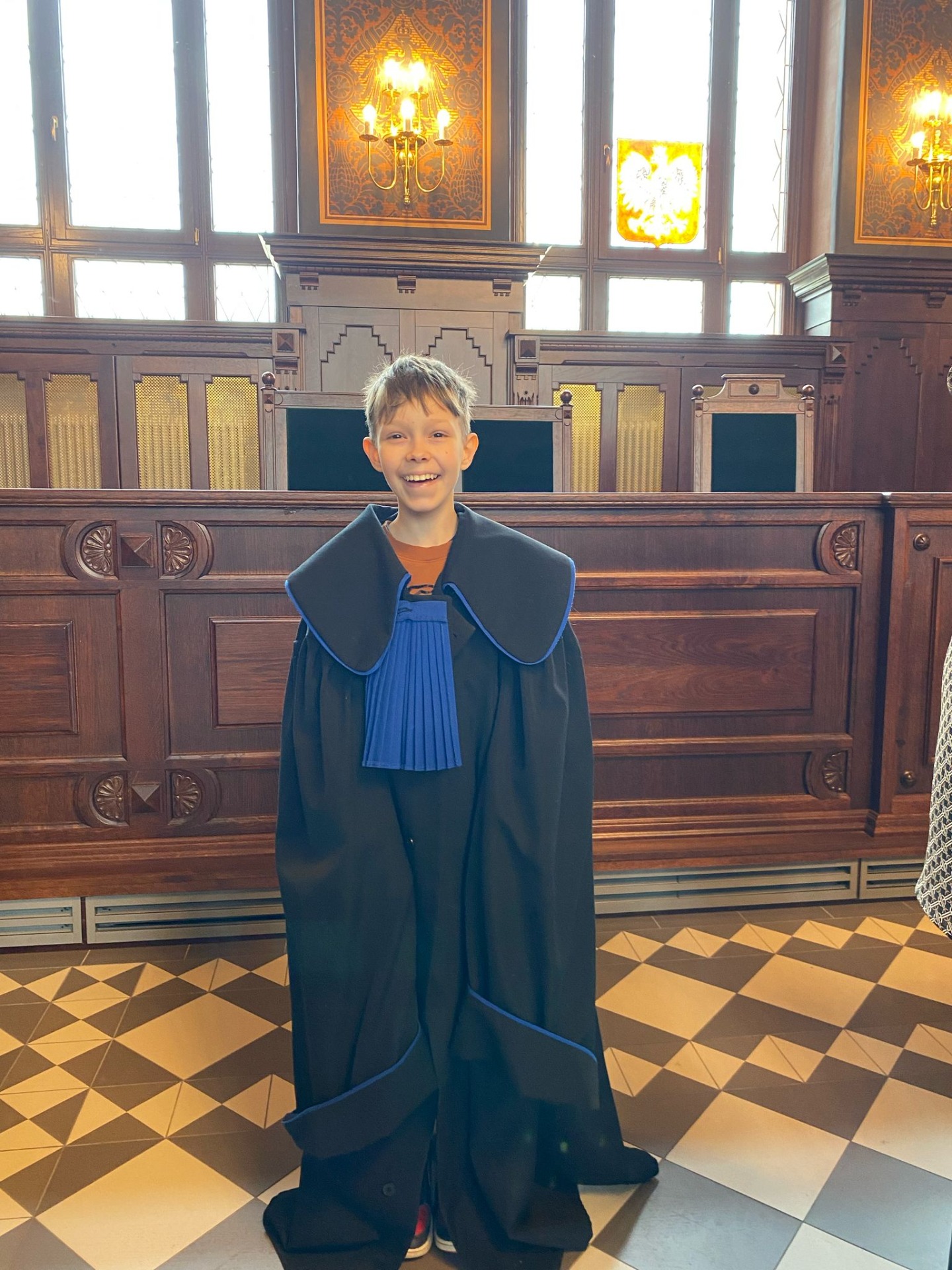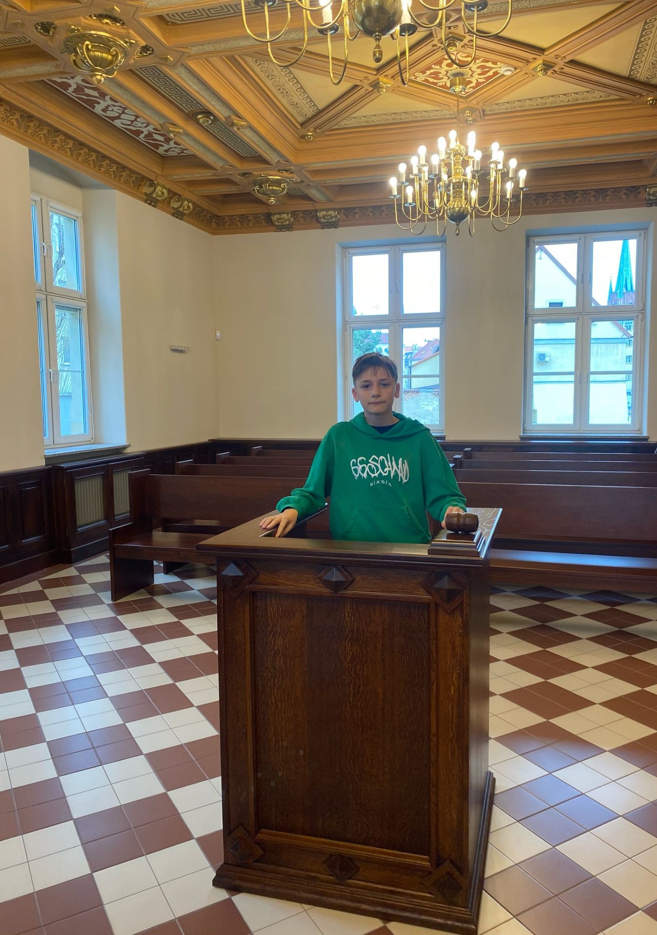 pozwoliło im poczuć atmosferę miejsca, w którym zapadają ważne decyzje prawne. Uczniowie mieli także okazję poczuć się jak prawdziwi sędziowie, mierząc togi i łańcuch