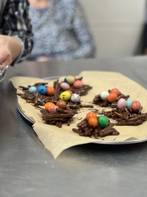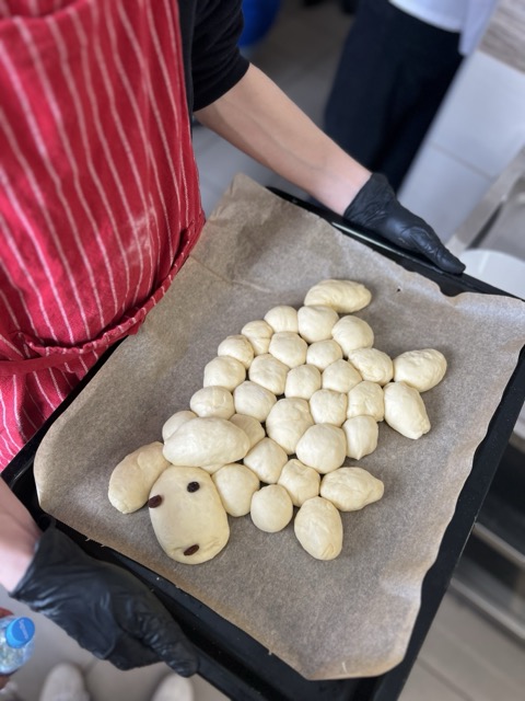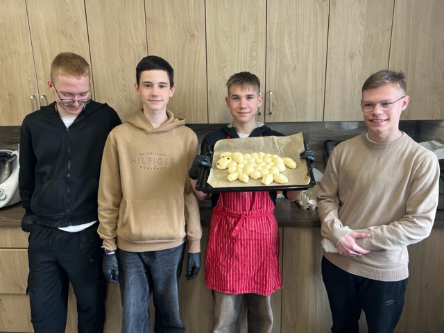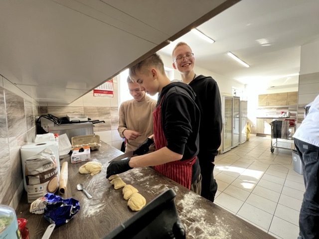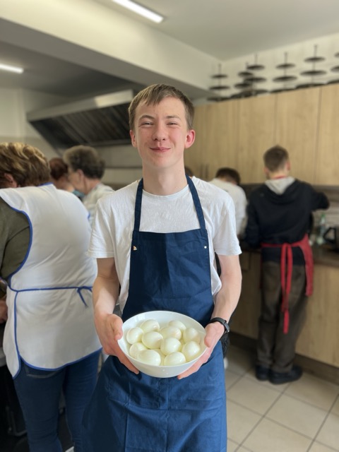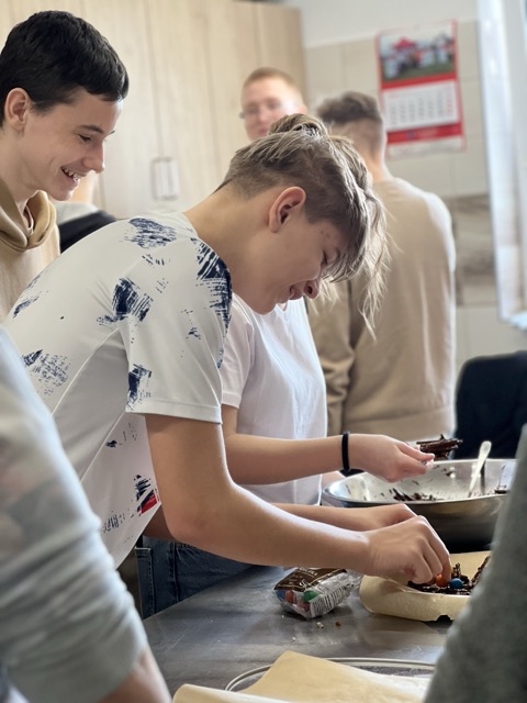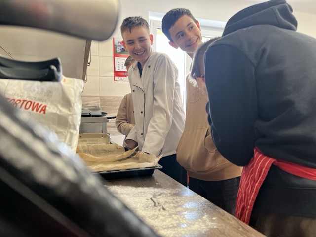 W ramach wolontariatu na rzecz Klubu Seniora, prowadzonego przez Stowarzyszenie im. św. Jana Pawła II – Pomoc Potrzebującym – Rybnicki Bank Drugiej Ręki, 26.03 odbyły się wielkanocne warsztaty kulinarne. W wydarzeniu uczestniczyło 8 uczniów klasy VIII, którzy wspólnie z seniorami przygotowywali potrawy świąteczne. Na stołach pojawił się aromatyczny barszcz biały, trójkolorowy chlebek-wieniec, słodki baranek z ciasta drożdżowego, delikatne słodkie gniazdka oraz jajka po portugalsku.