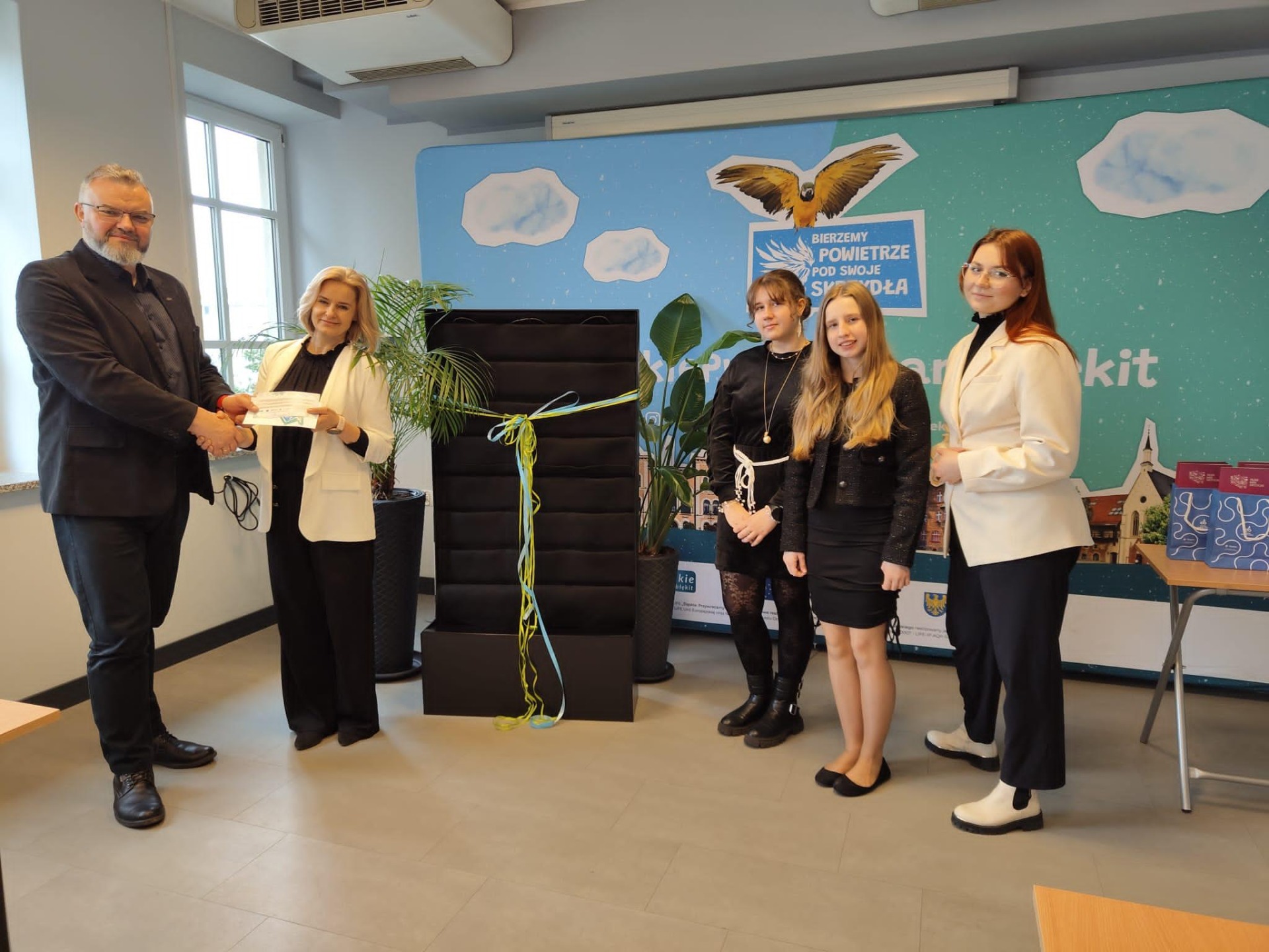 Uczennice naszej szkoły miały zaszczyt odebrać nagrodę w ramach współpracy na rzecz działań proekologicznych. Nagroda ta, to nowoczesna ścianka na żywe rośliny, która stanie się symbolem naszego zaangażowania w ochronę środowiska. Dodatkowo, otrzymaliśmy bon o wartości 800 zł, przeznaczony na zakup roślin do zagospodarowania tej ścianki, co umożliwi nam stworzenie niepowtarzalnego, zielonego kącika w naszej szkole.