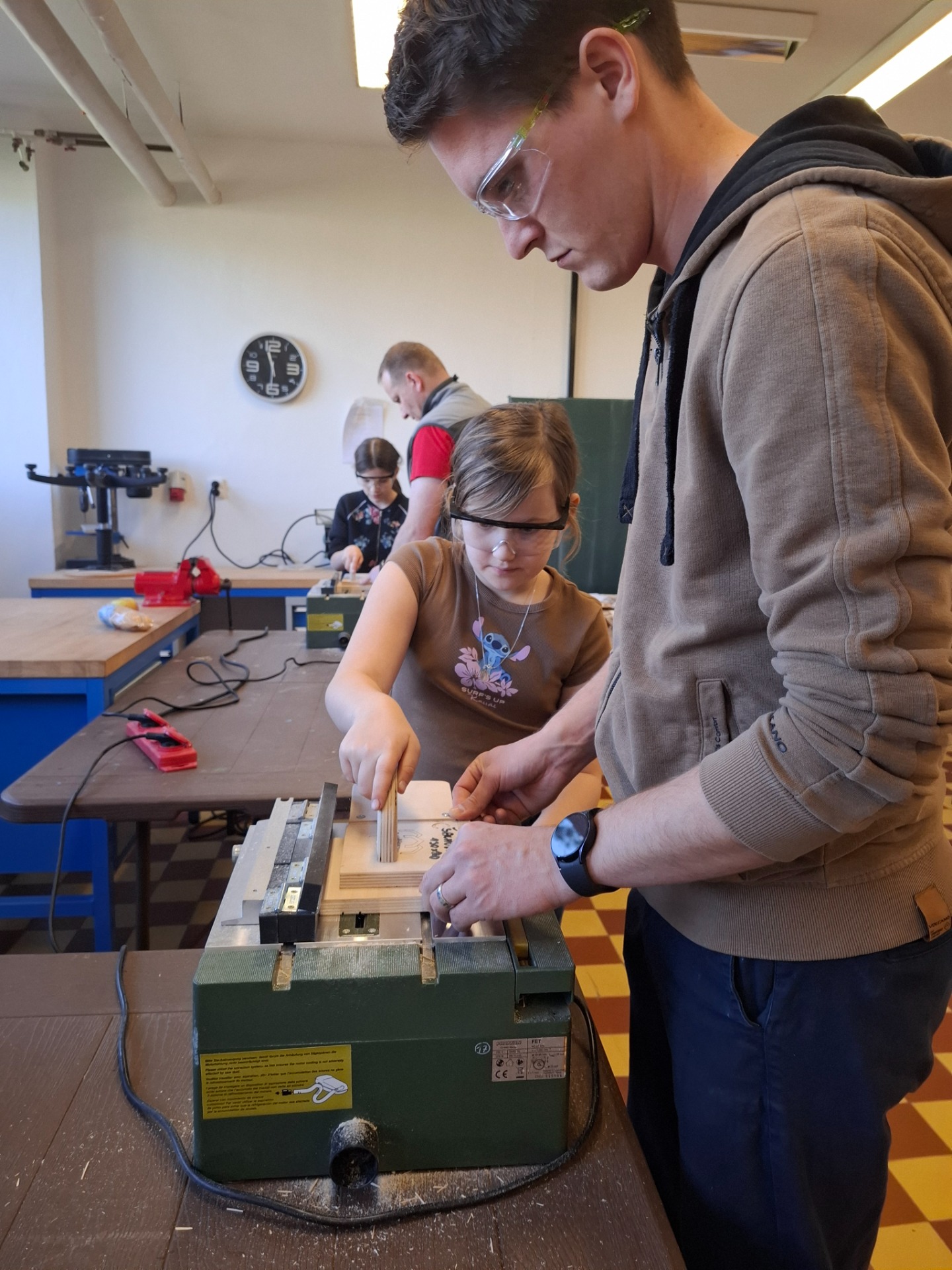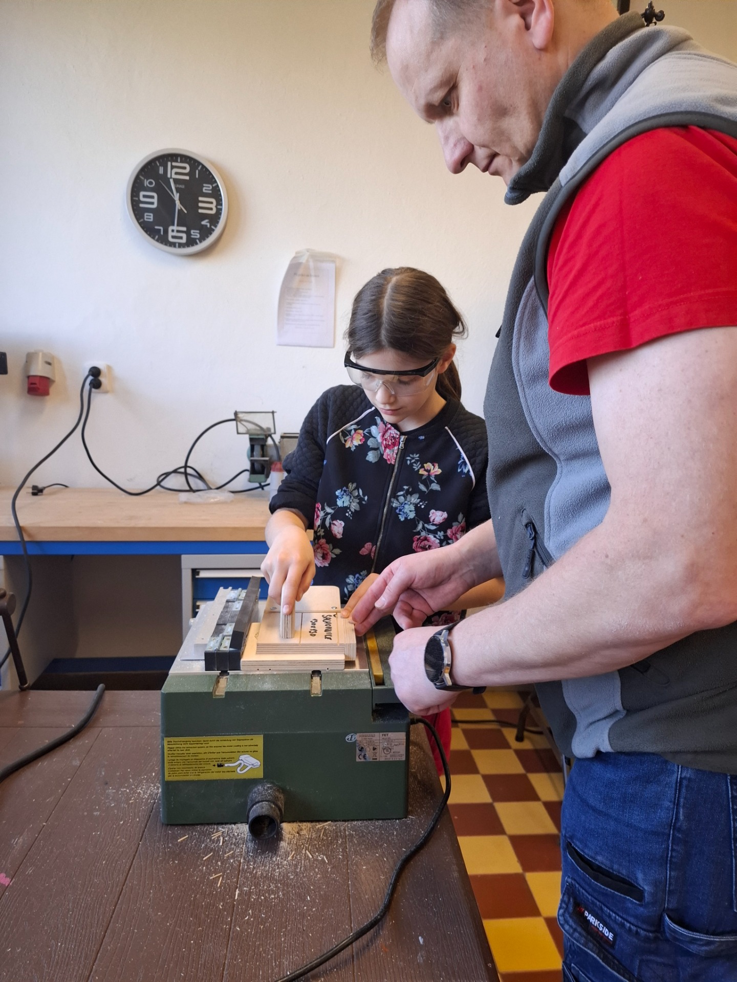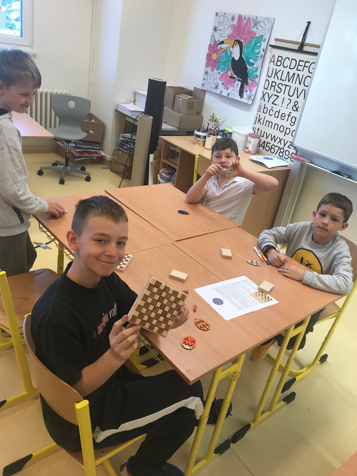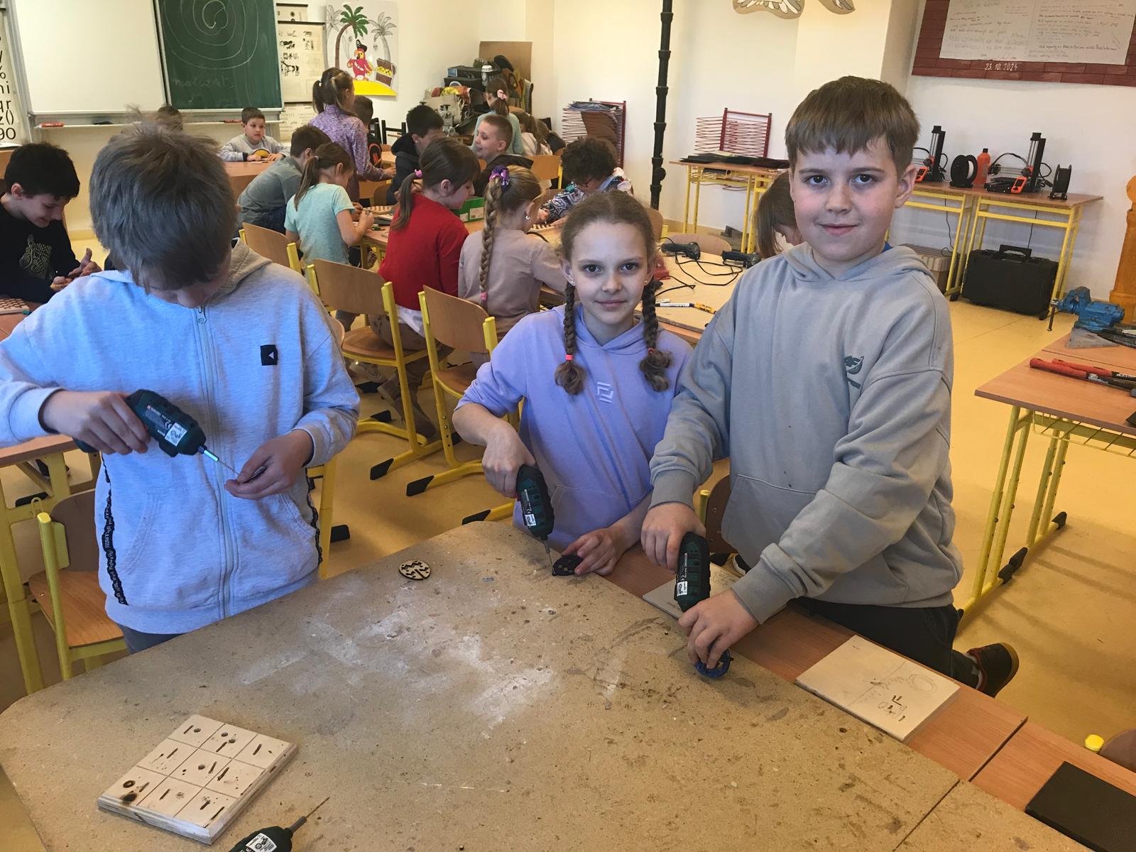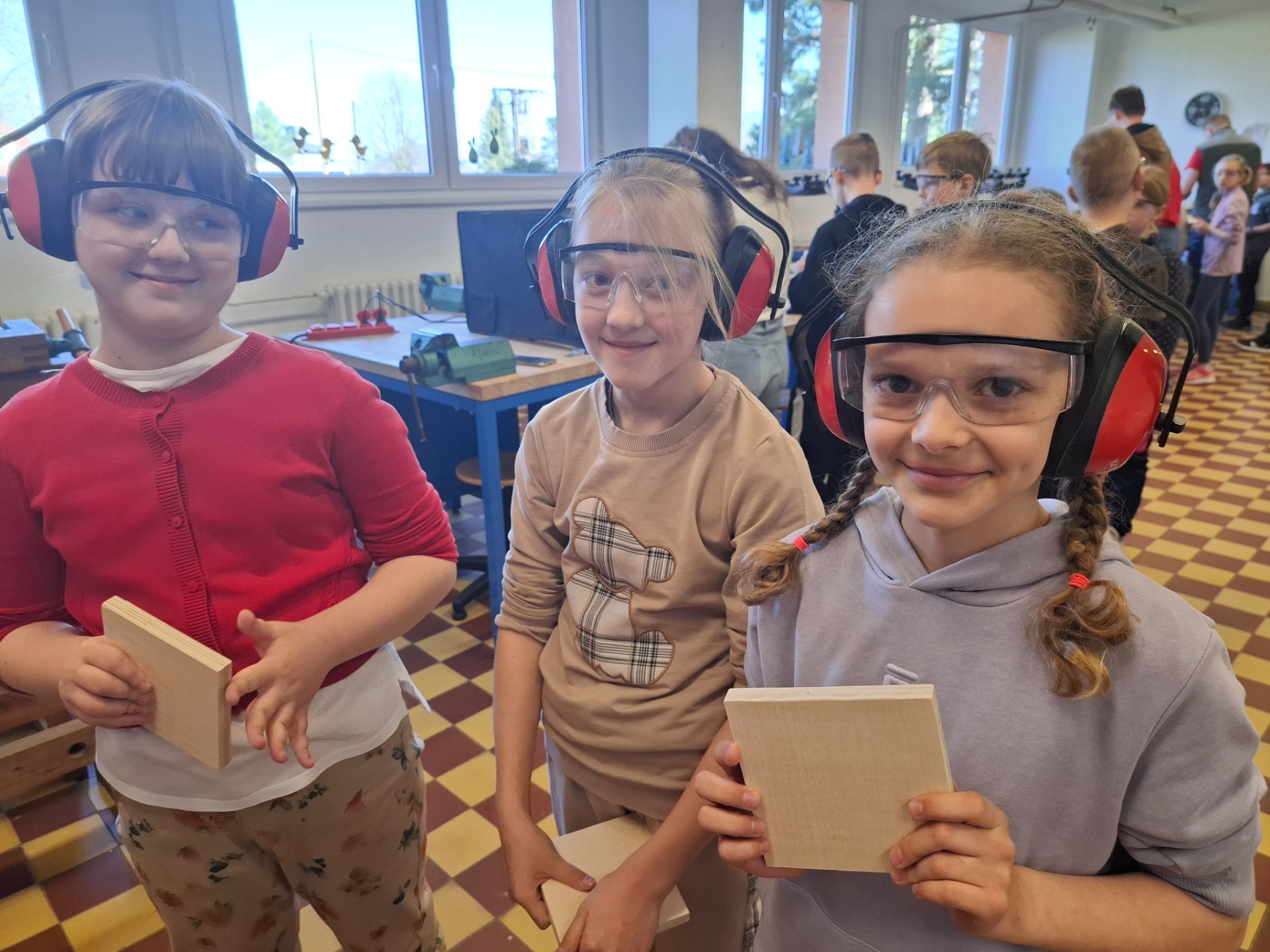 W piątek 4 kwietnia uczniowie klas III i IV wraz z opiekunami udali sie do naszej partnerskiej szkoły w Komarovie na pierwsze działanie projektu współpracy transgranicznej "Tworzymy, poznajemy, badamy i uprawiamy sport w szkole podstawowej i przedszkolu“. W ramach tego działania uczniowie własnoręcznie wykonali drewnianą planszę do gry warcaby, pionki oraz etui. Mieli okazję pracować z piłami elektrycznymi, pilarkami, laserowymi wypalarkami, maszynami oraz wszelkiego rodzaju narządziami do obróbki materiału i drewna. Każdy uczeń wrócił do domu z własnoręcznie wykonaną grą i upominkami, które otrzymaliśmy od kolegów i koleżanek z Komarova. Miłym akcentem spotkania był również poczęstunek na słodko i słono.