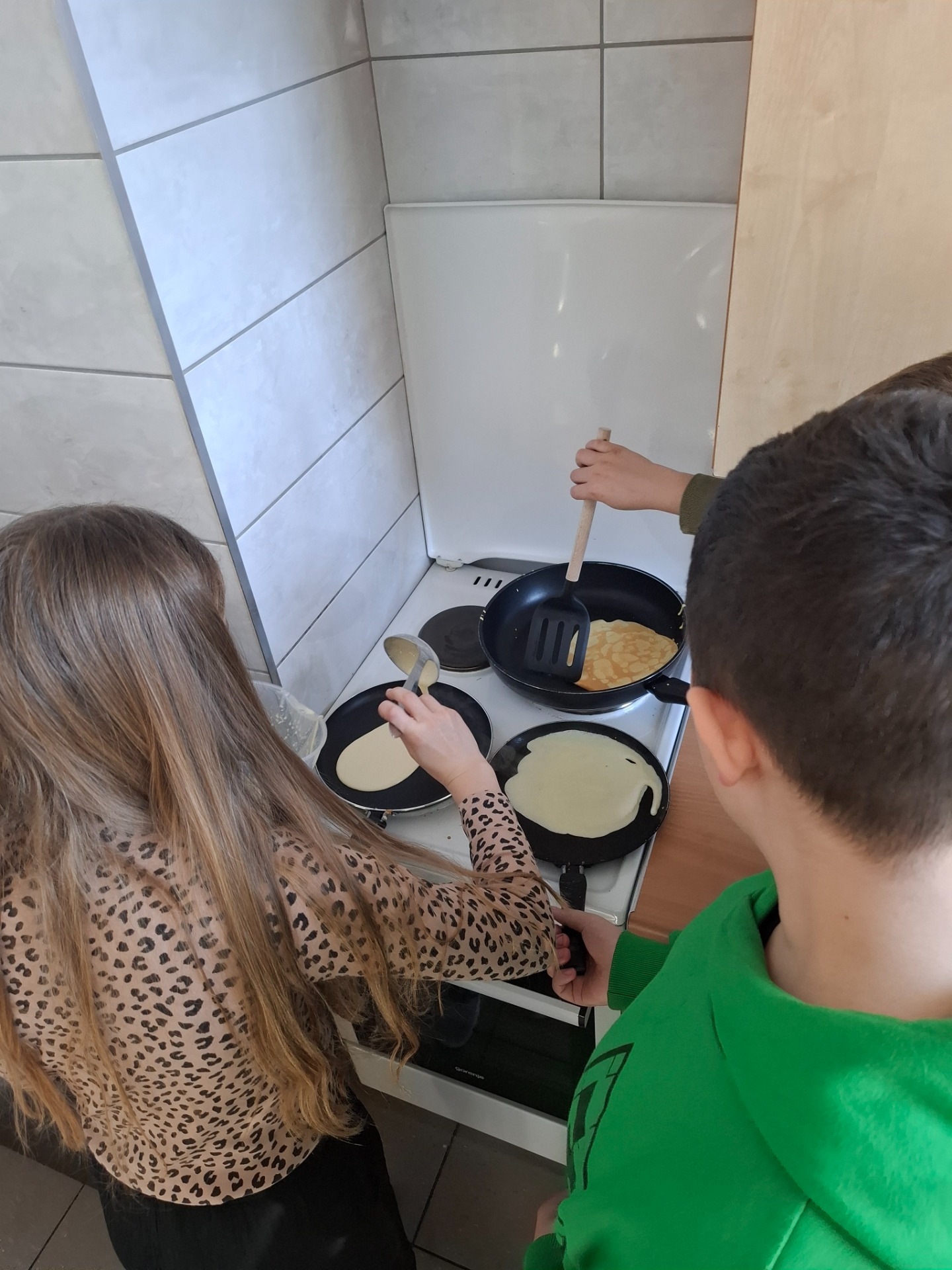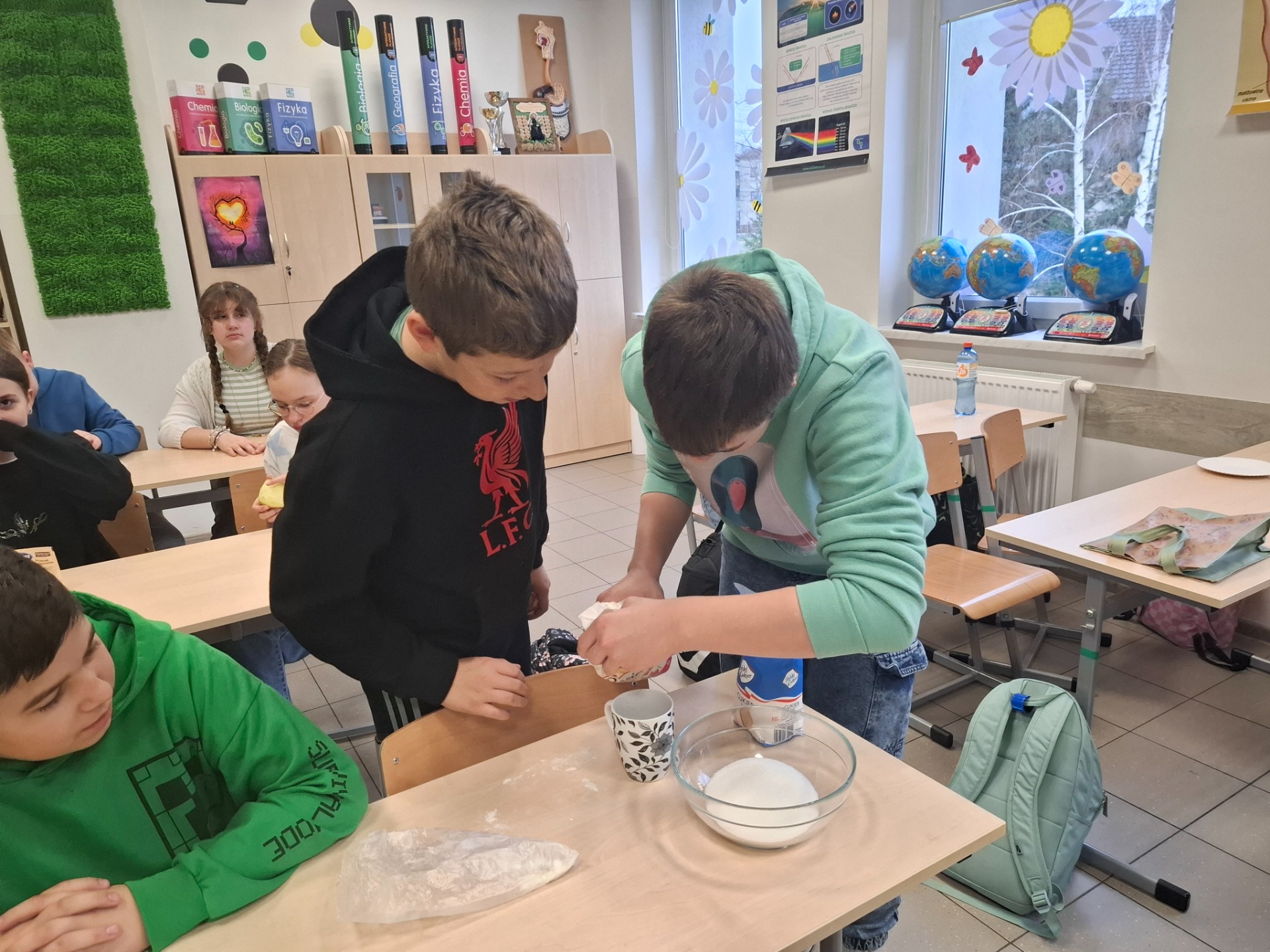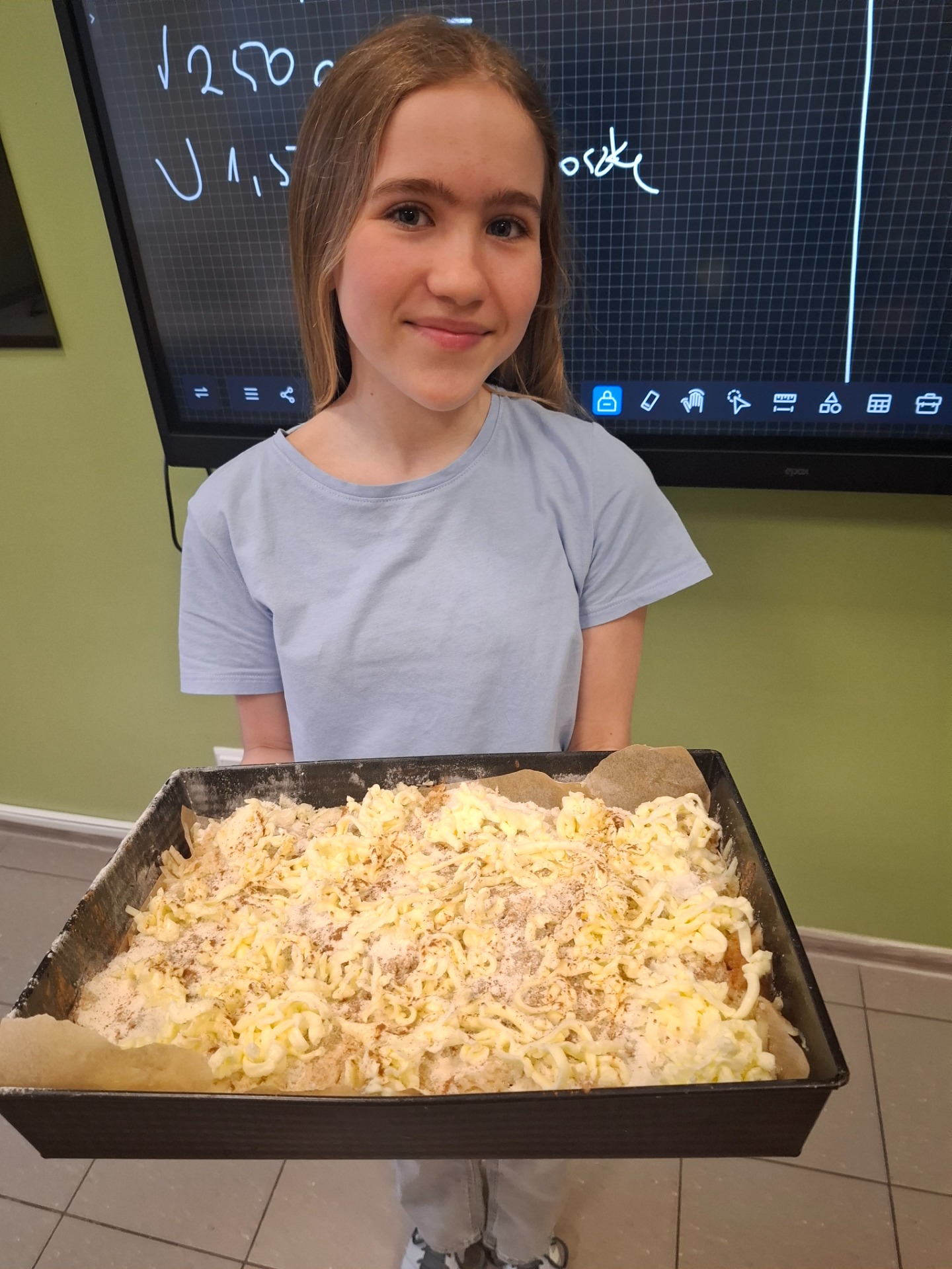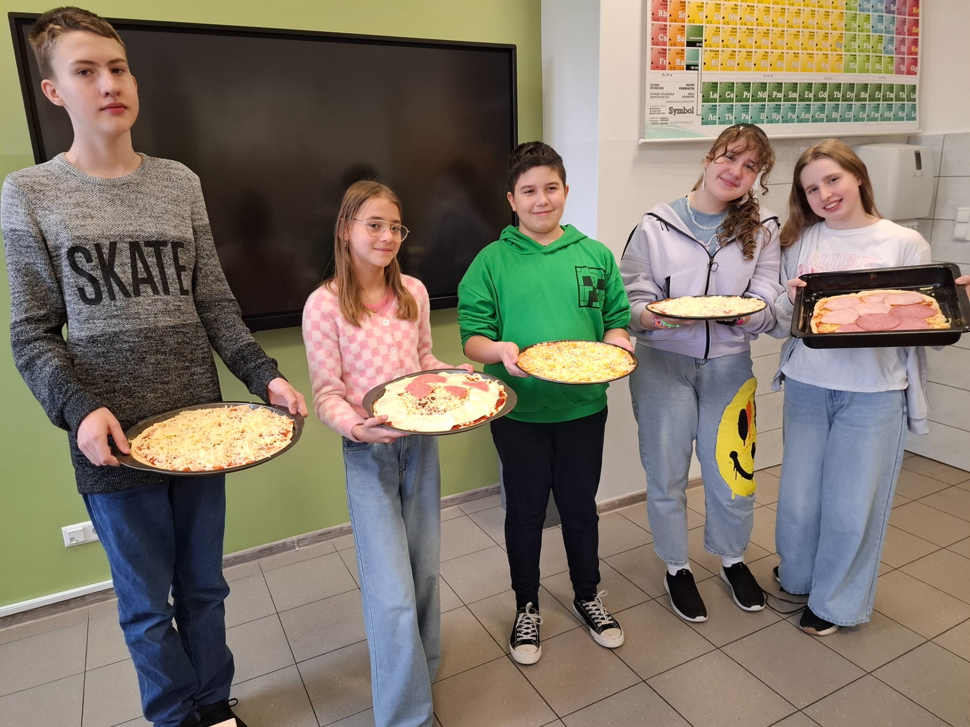 Czy pizza może być zdrowa? Oczywiście, jeżeli tylko przygotujesz ją z zdrowych, naturalnych składników. Przekonali sie o tym uczniowie klasy VI, którzy w ostatnich dwóch miesiącach przygotowywali zdrowe słodki i słone potrawy; były naleśniki, placki ziemniaczane na kilka sposobów, była też domowa pizza i szarlotki z lodami ( jedna wg przepisu Magdy, a druga wg przepisu Marty). Uczniowie chętnie uczestniczyli w zajęciach, ucząc sie jednocześnie bezpiecznego i higienicznego posługiwania narzędzaimi kuchennymi.